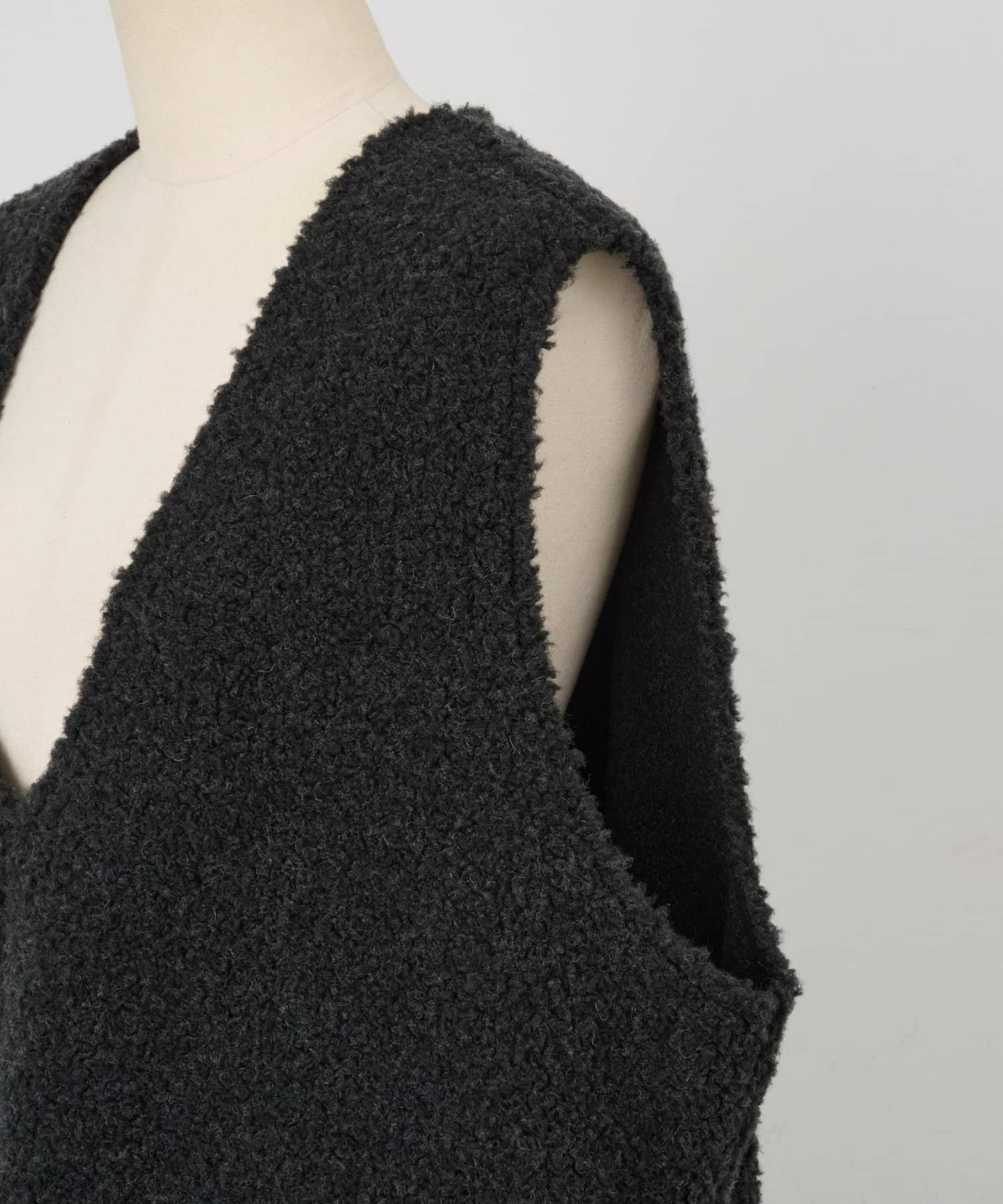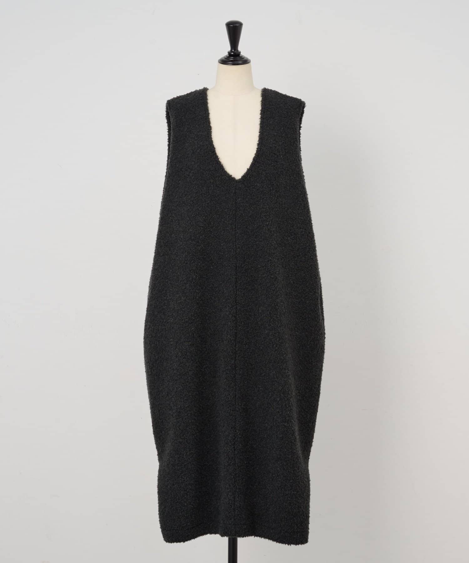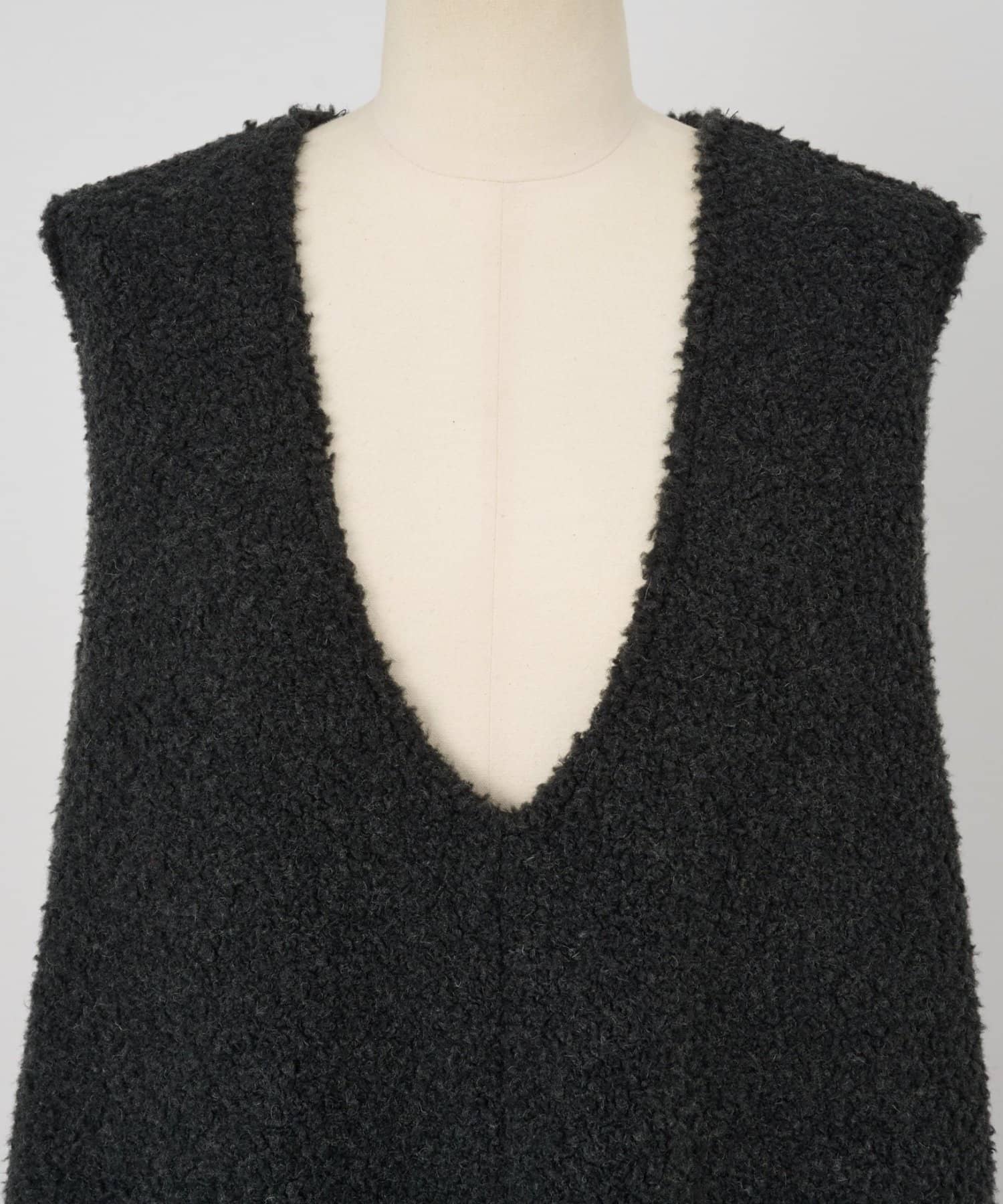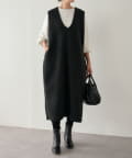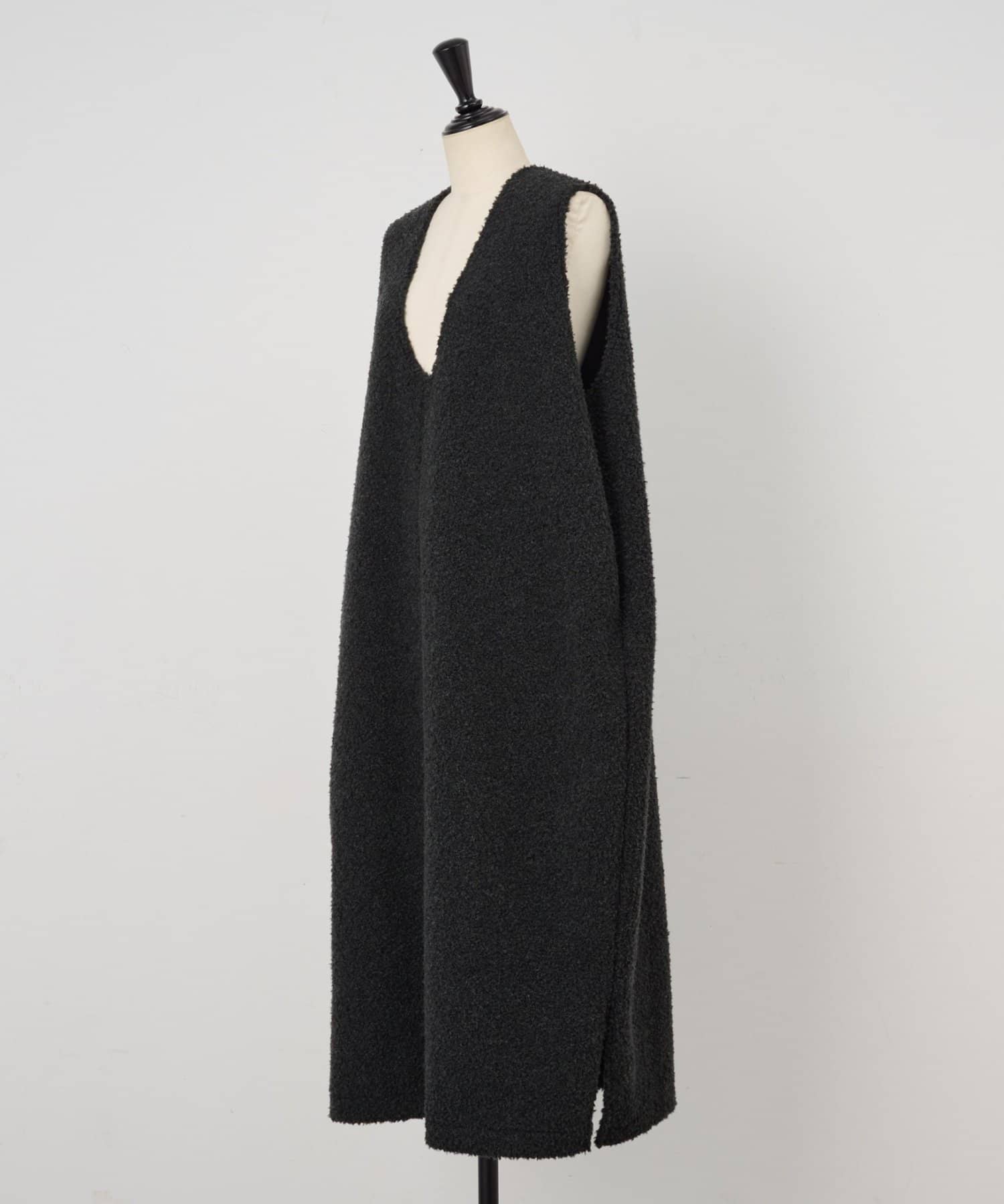 シンプルなVネックのジャンパースカートも、素材をボアにするだけで一気に季節感をまとえます。