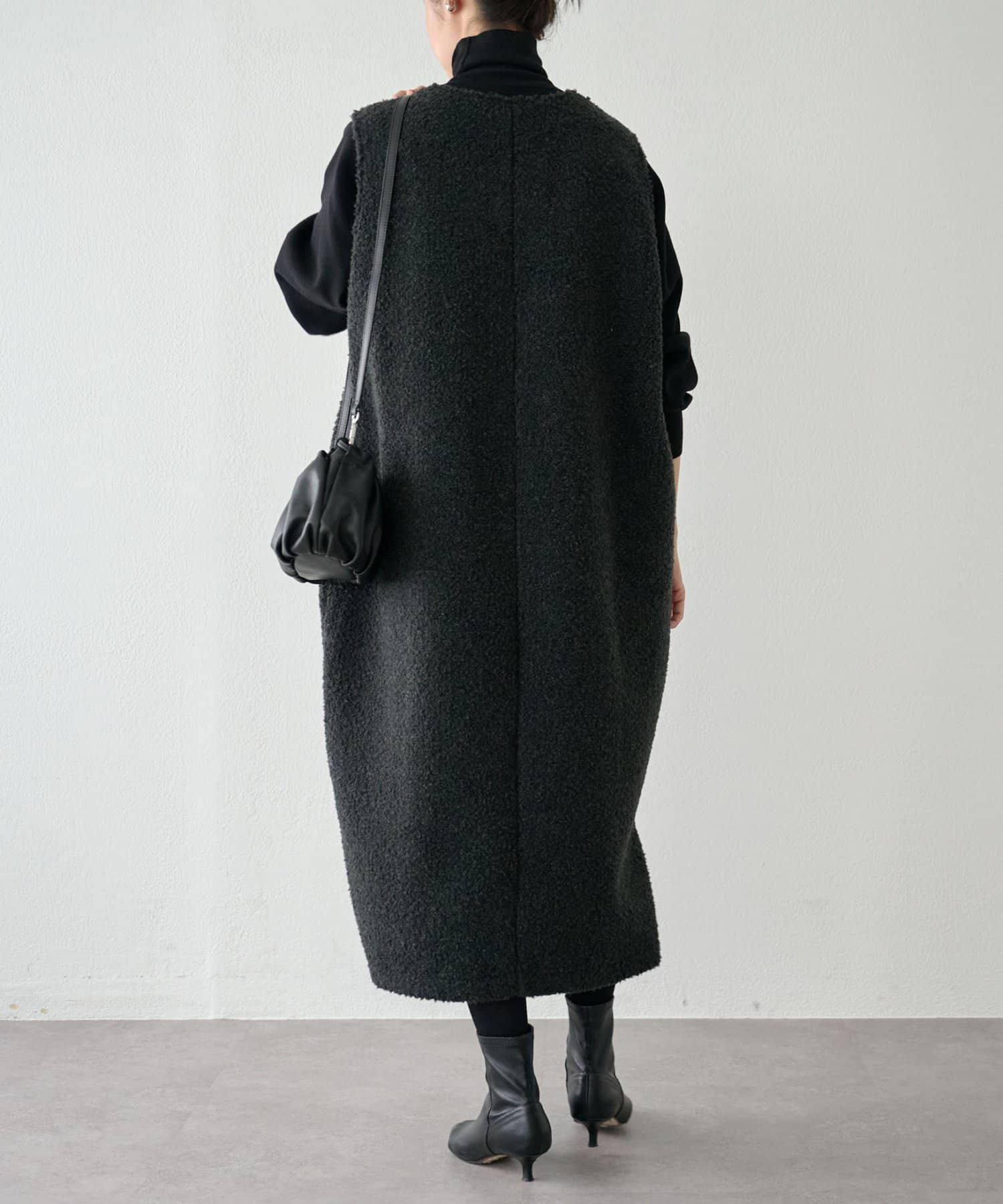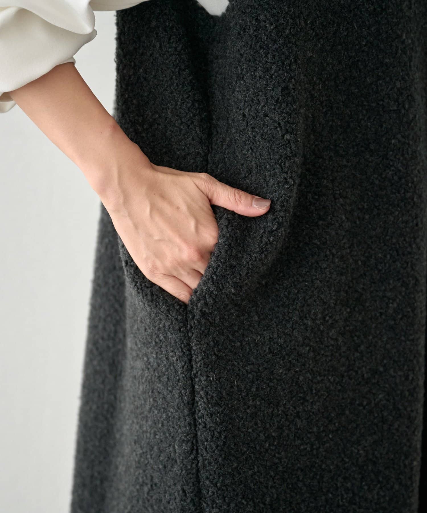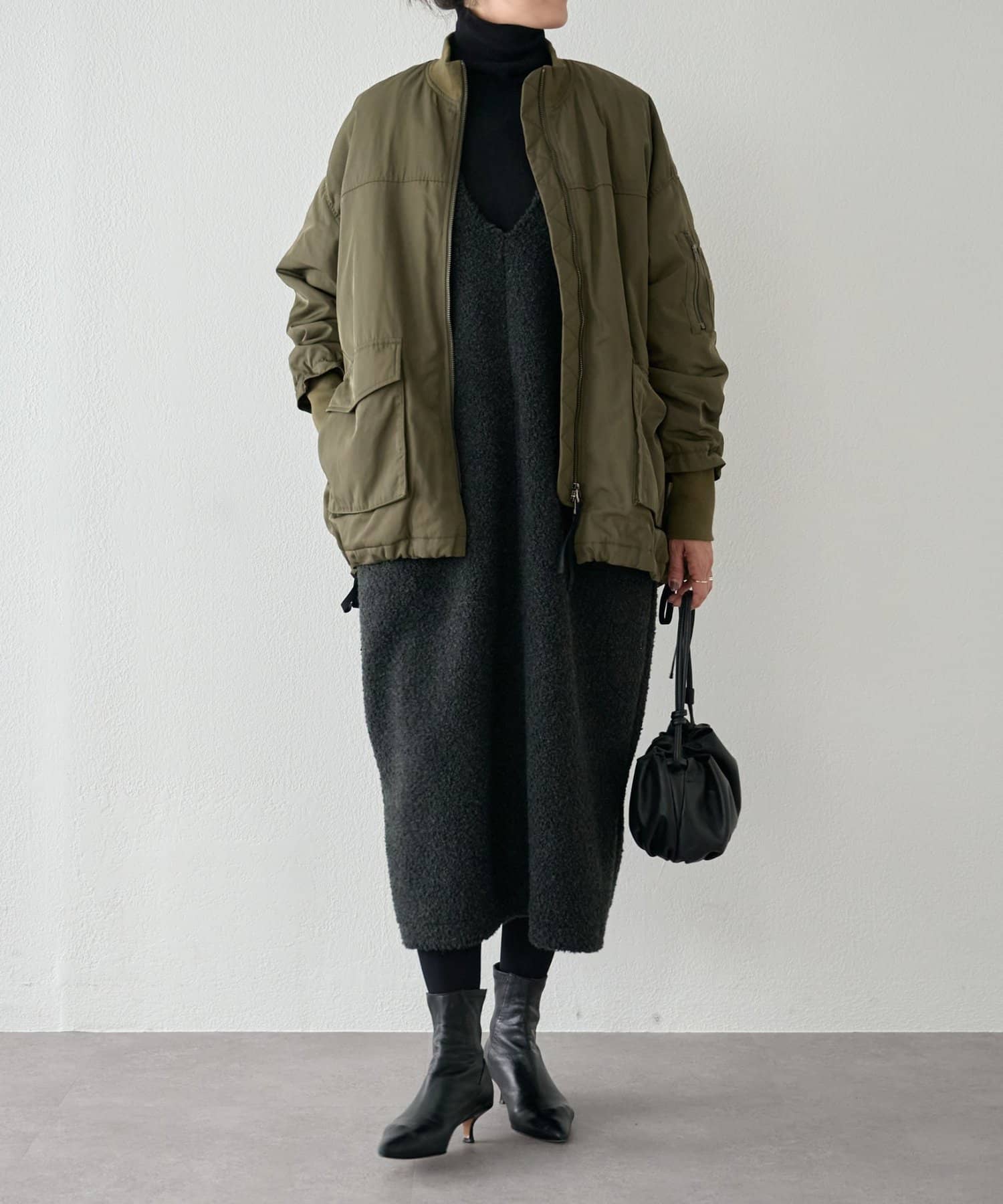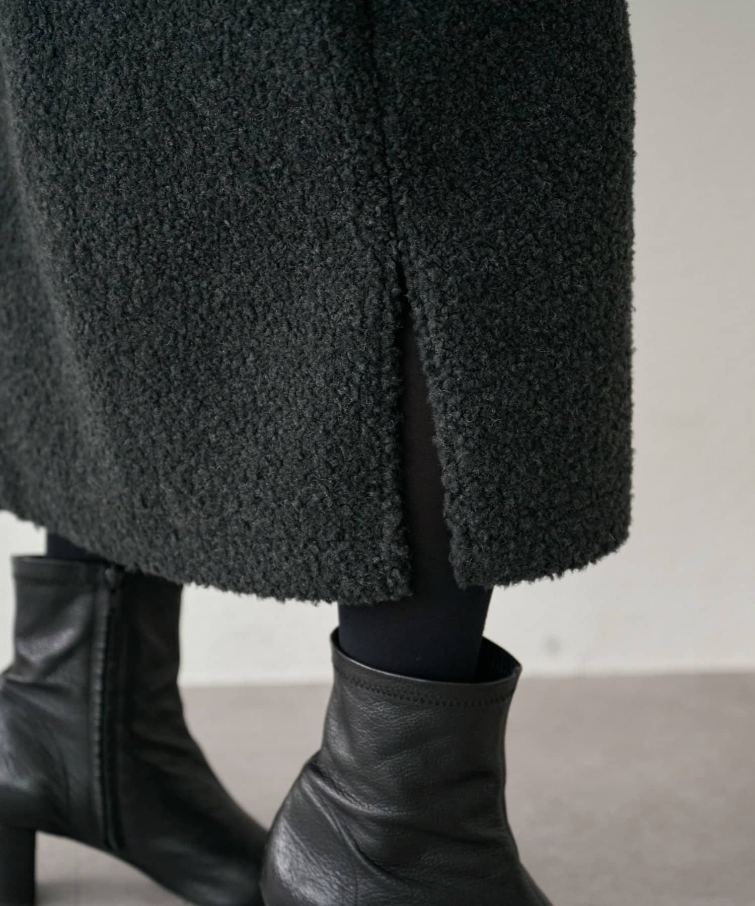 裾のボリュームを抑えて広がらないシルエットなので、厚手のボア素材でも着ぶくれせず着て頂けて◎。