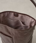 マチがしっかりついた収納力のあるトートは、A4ノートが入るサイズ感で、薄手のA4ファイルならマグネットボタンも閉じられます。