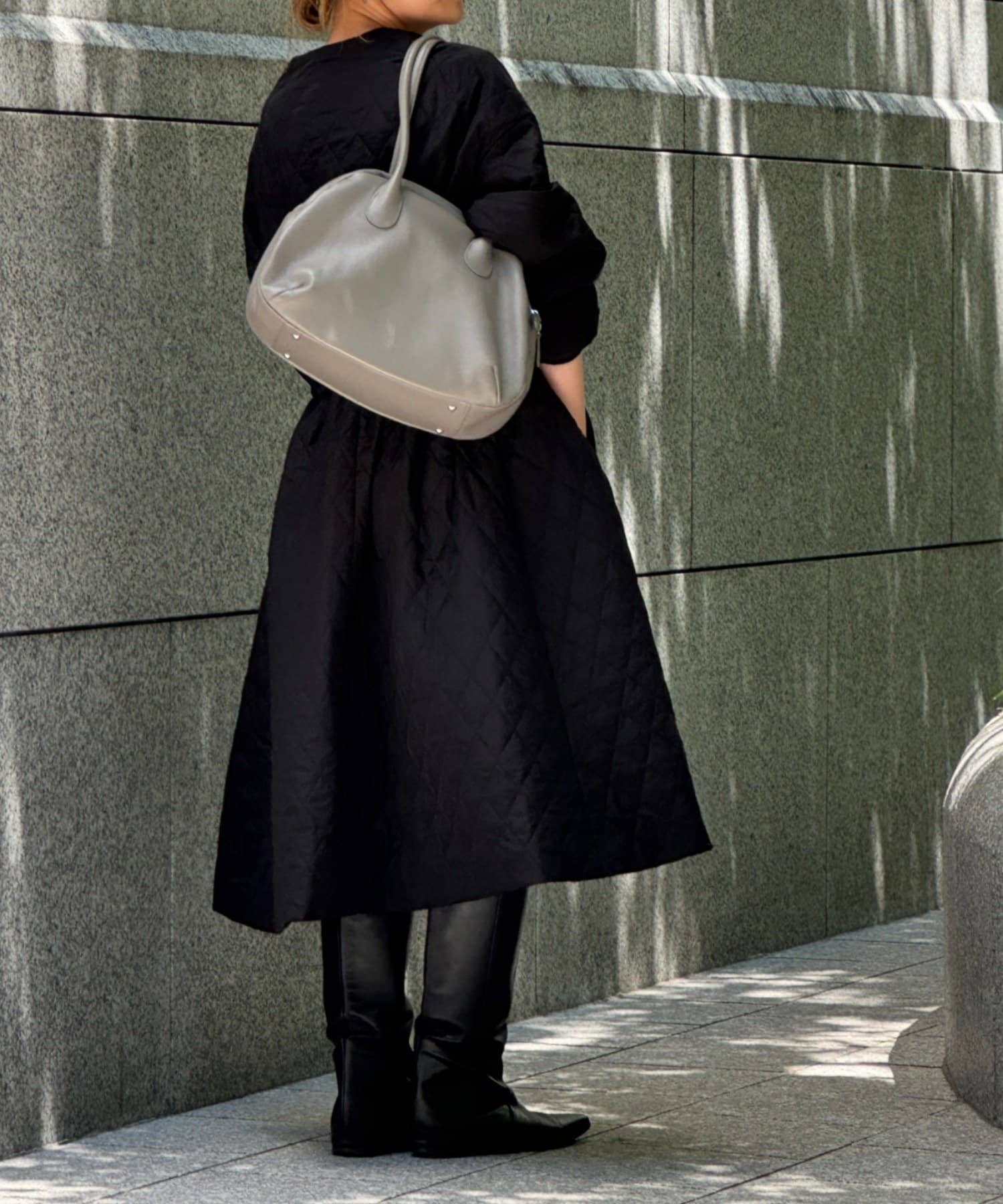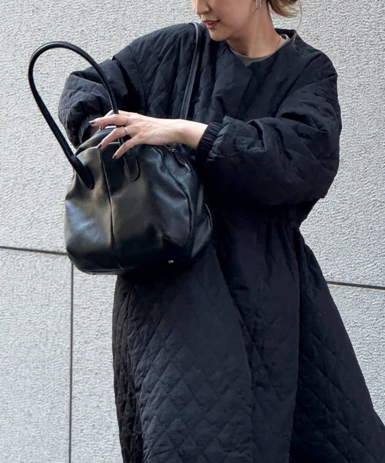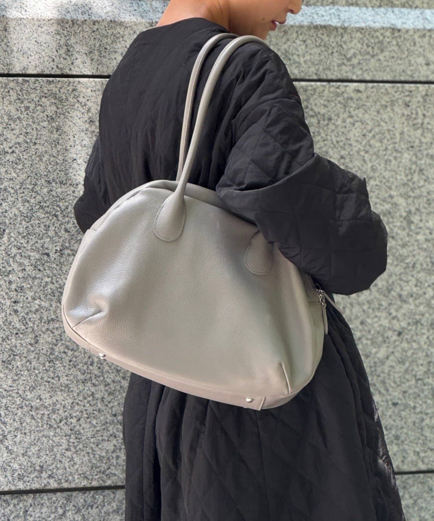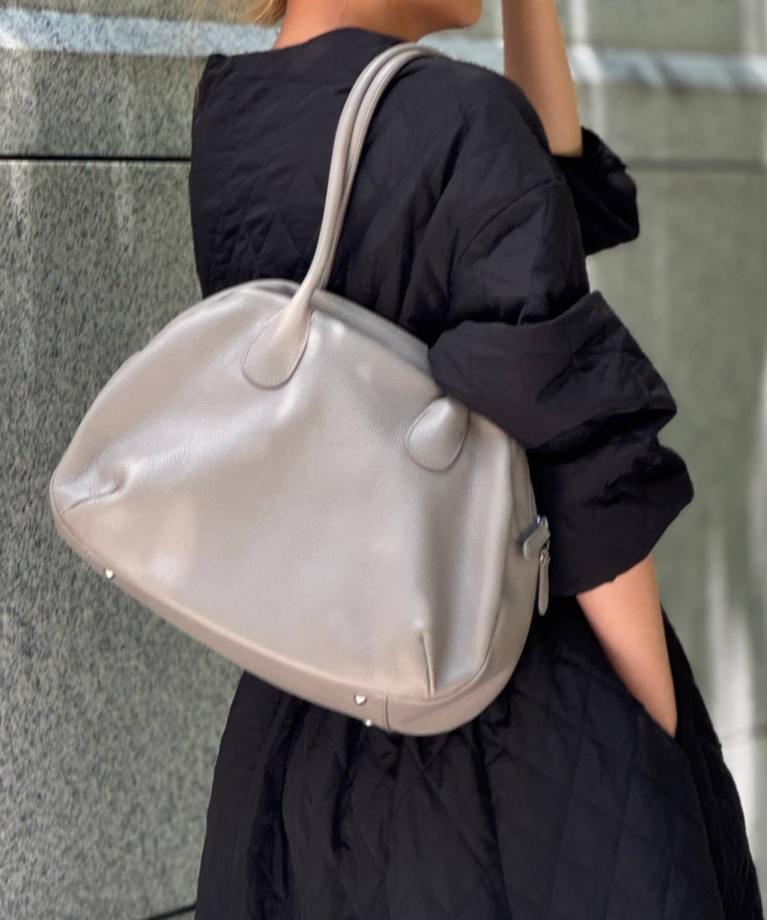 ラウンドミニボストンバッグの丸みのある柔らかなフォルムはそのままに、ひと回り大きなサイズと長めの持ち手で肩掛けもできる仕様になりました。