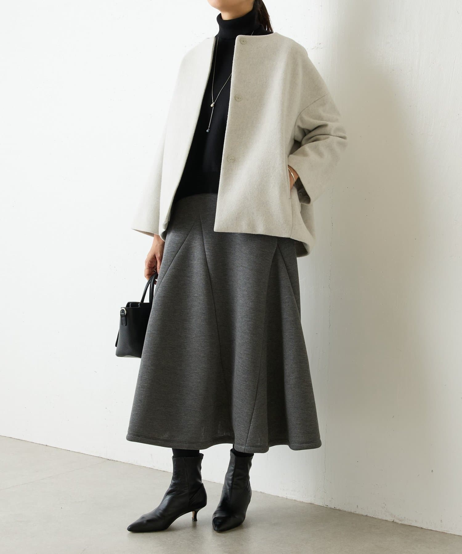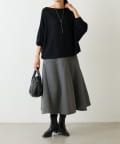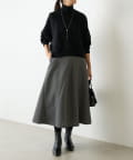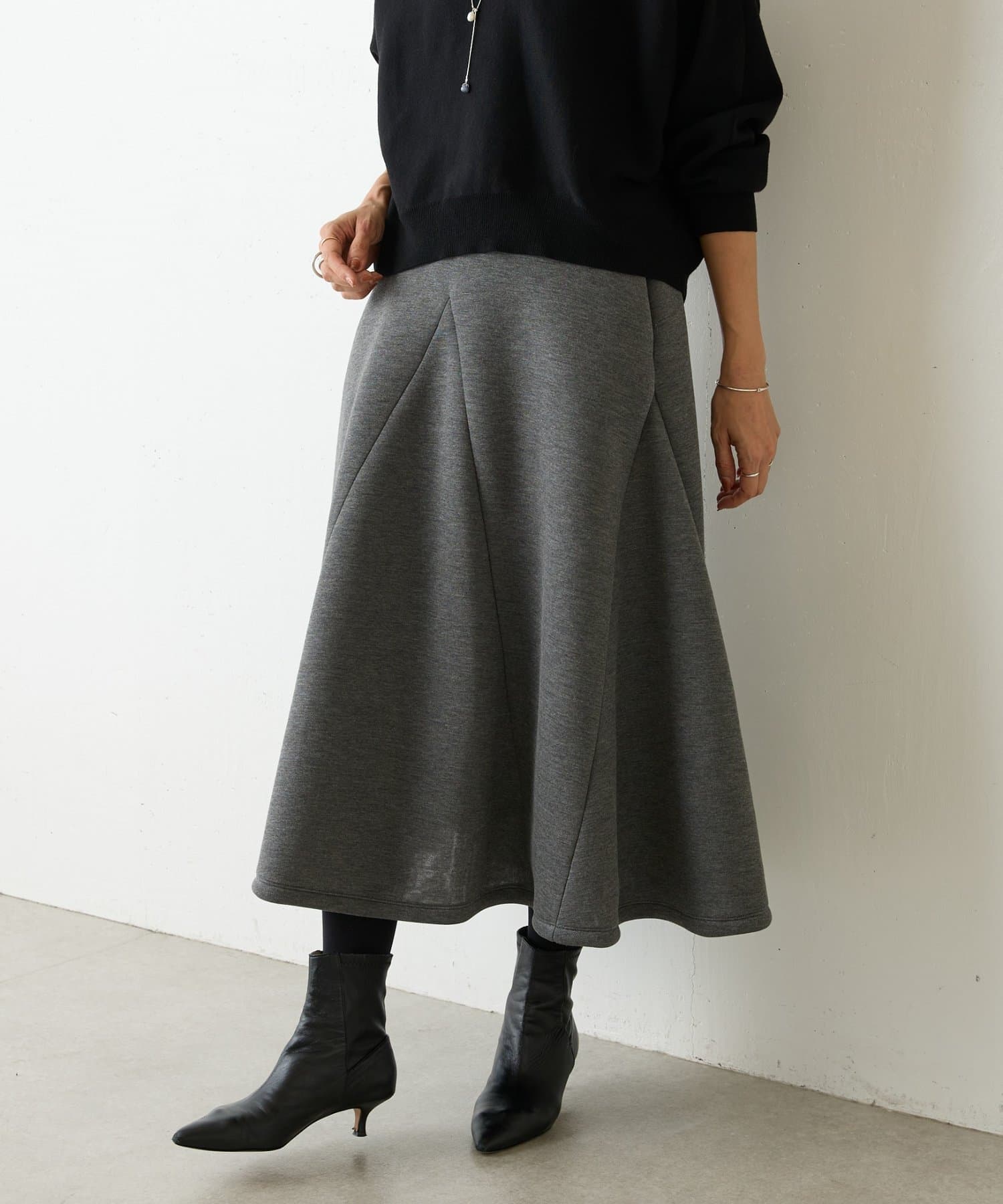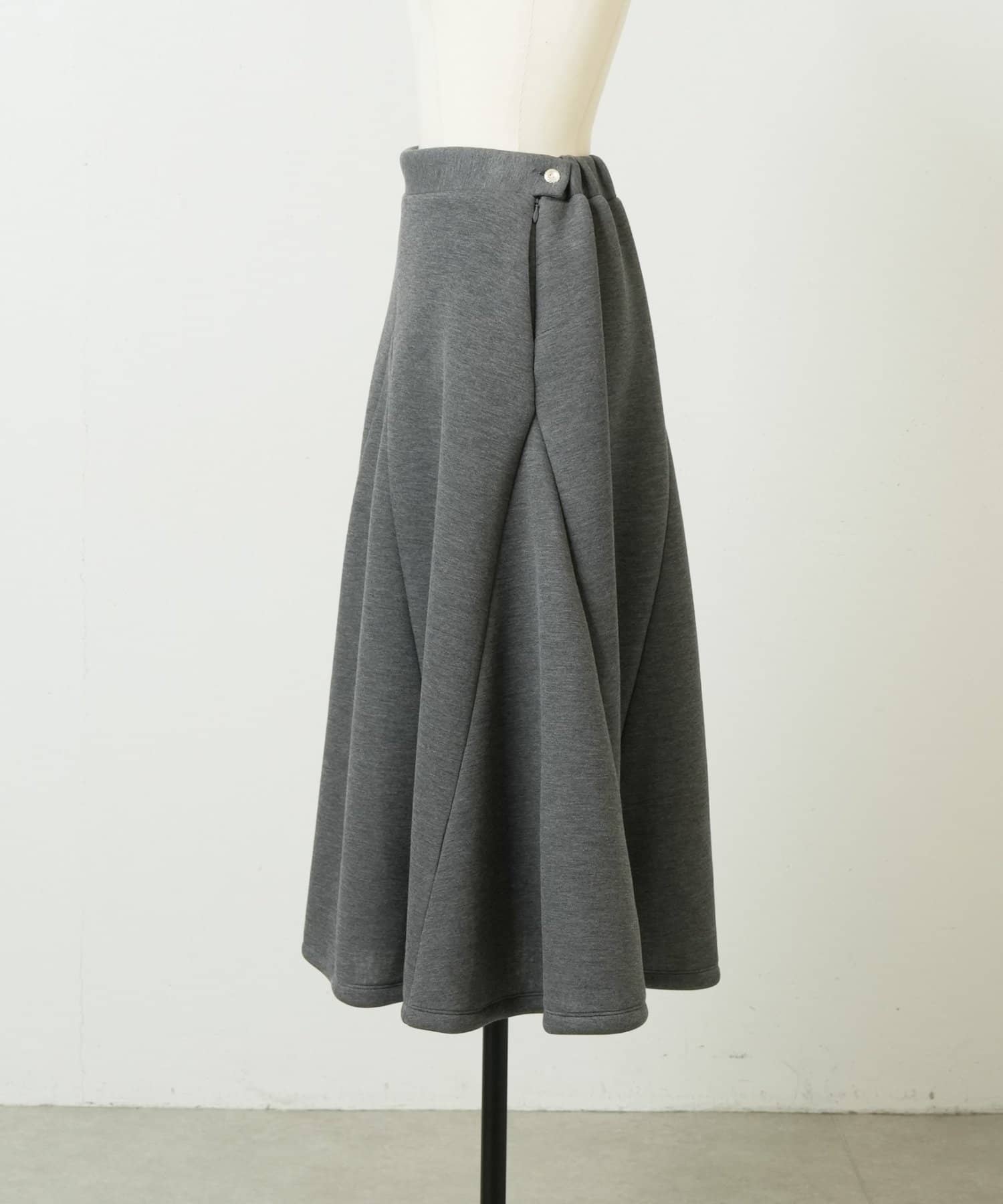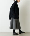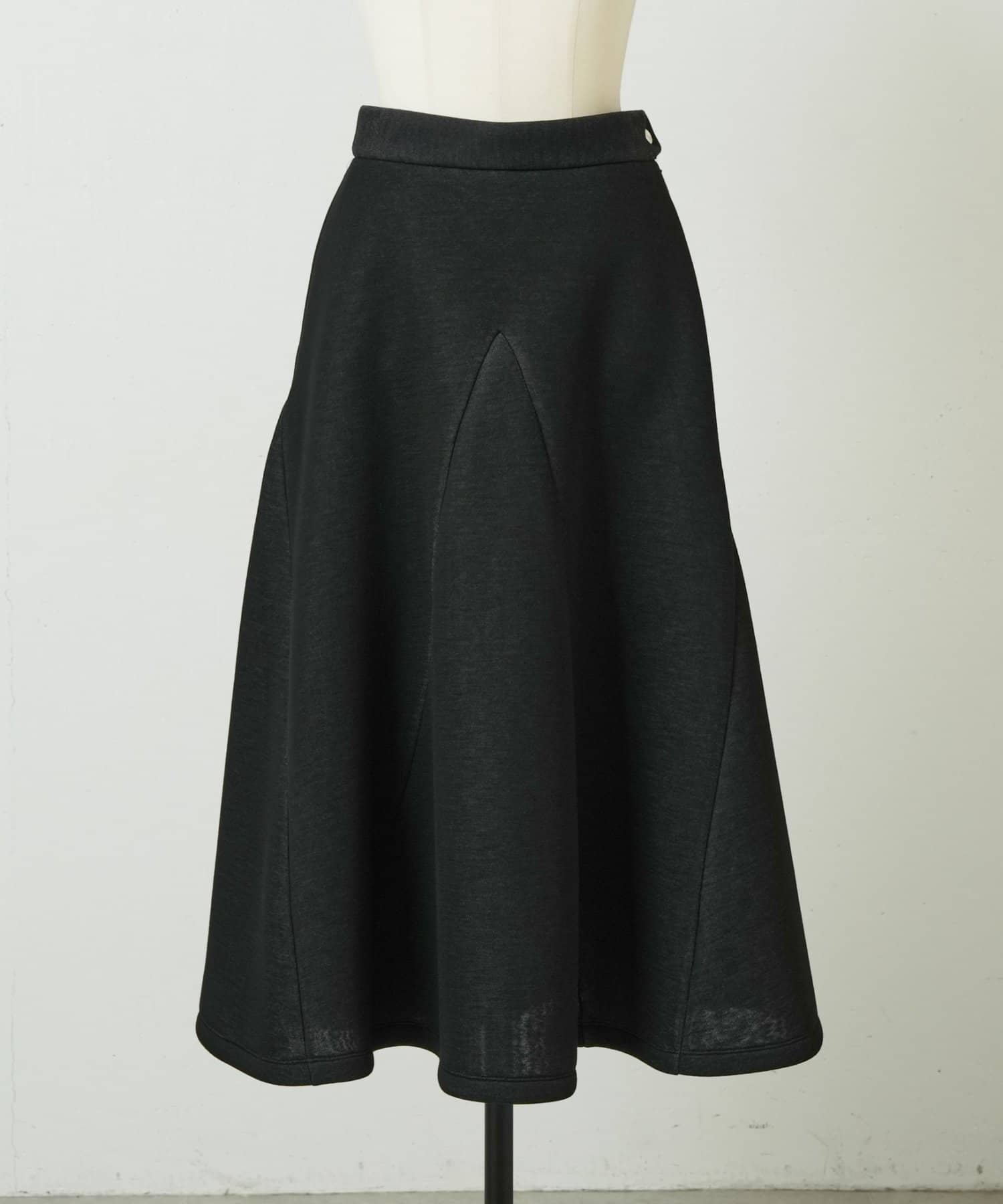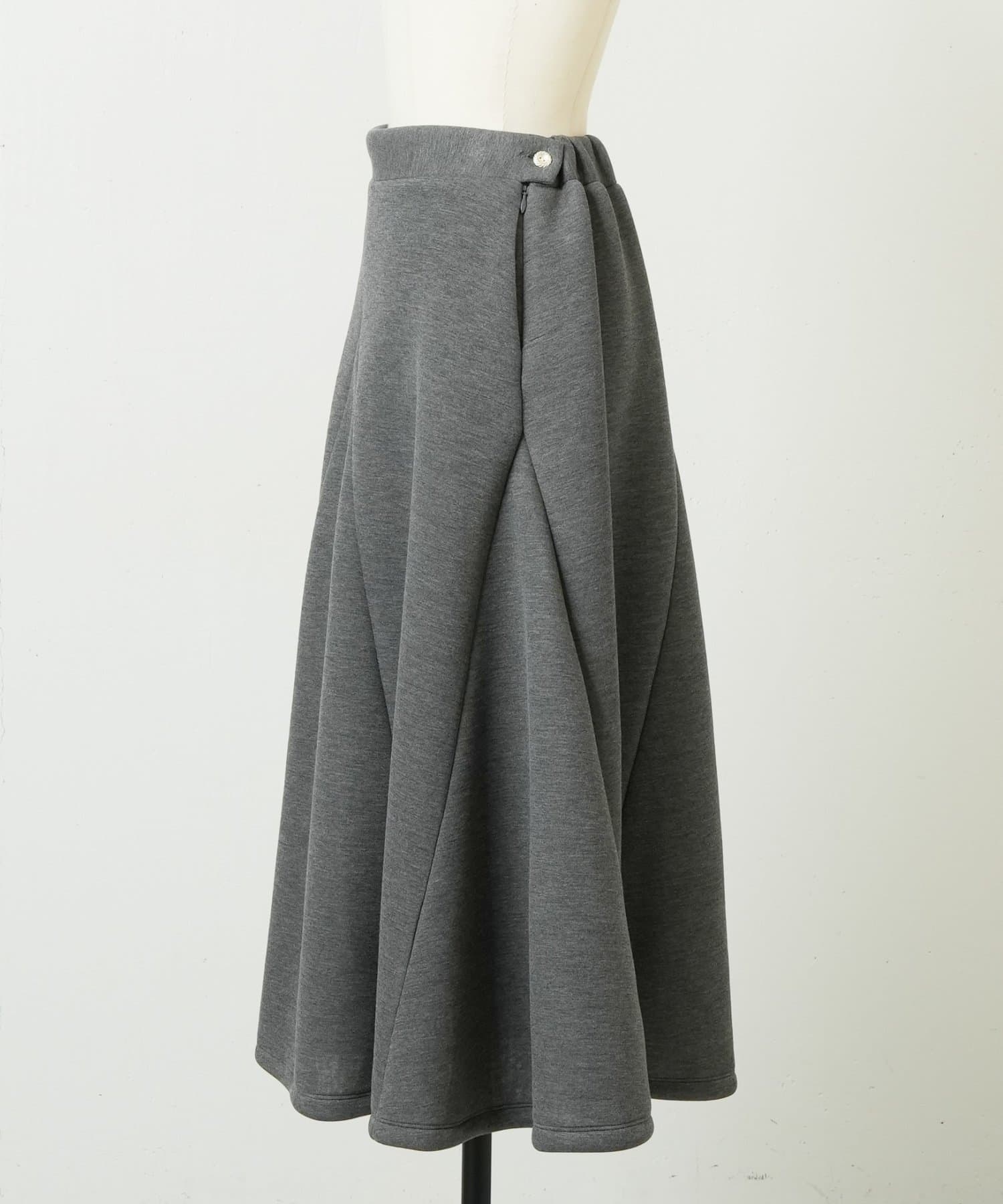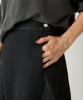 大胆なカッティングと素材感が魅力のミドル丈スカート。