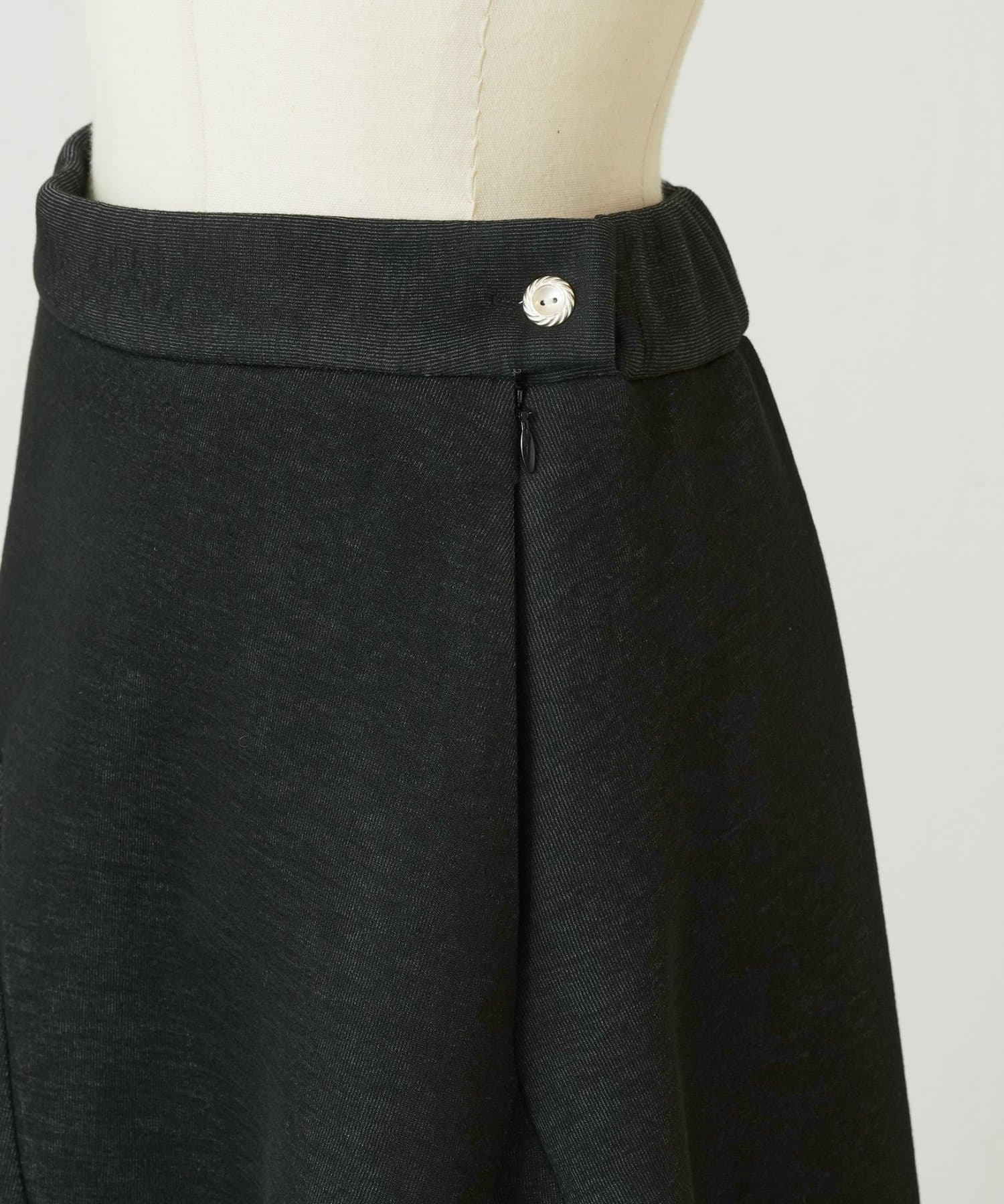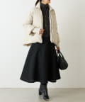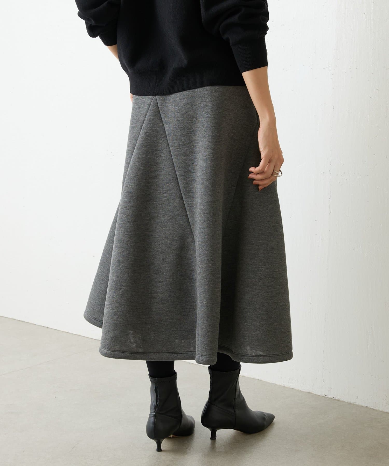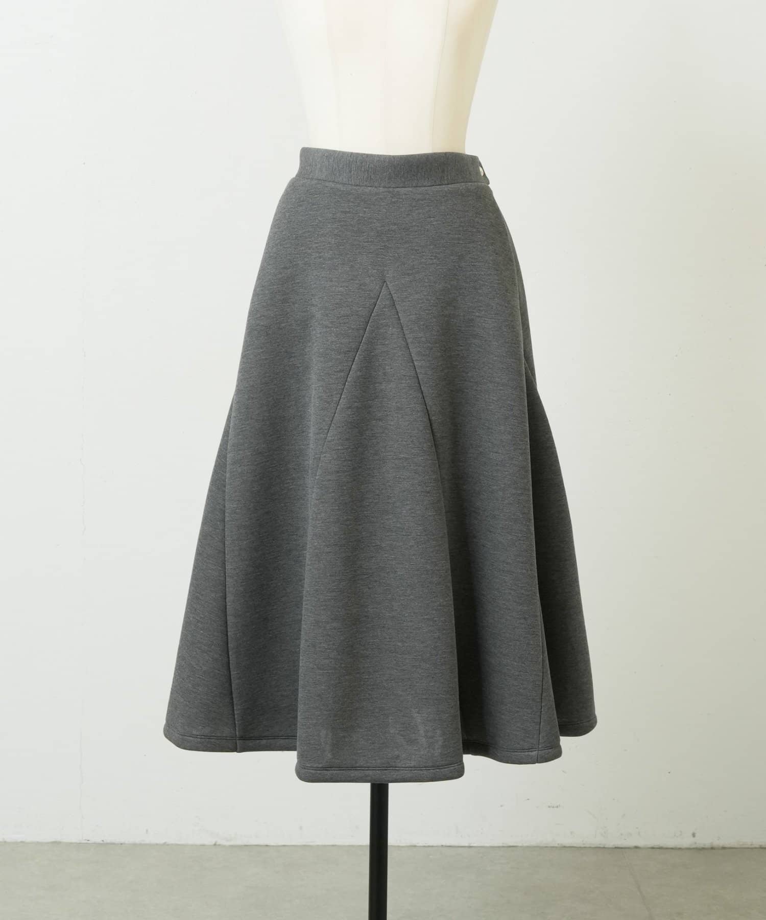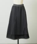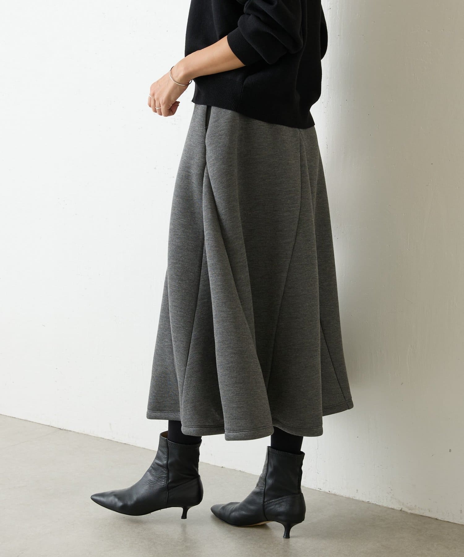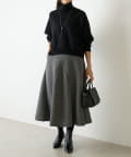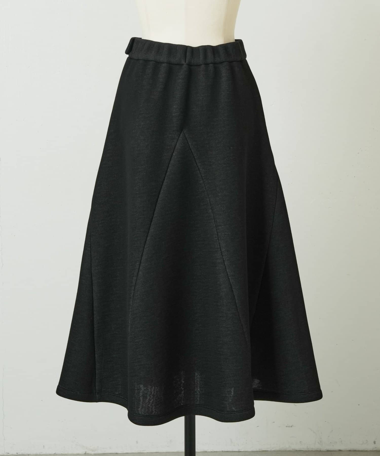 大胆なカッティングと素材感が魅力のミドル丈スカート。