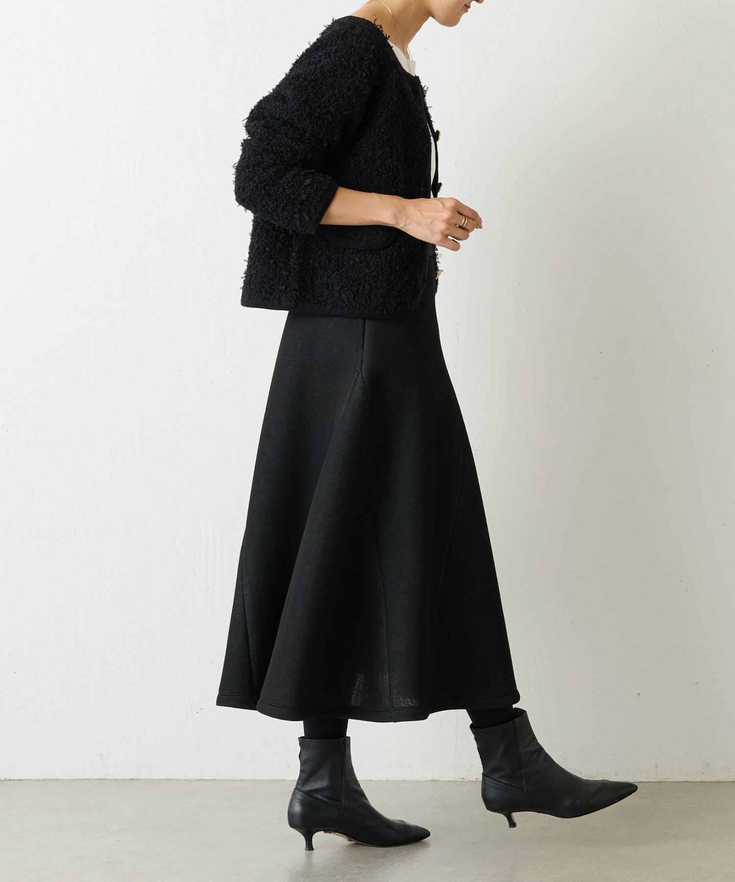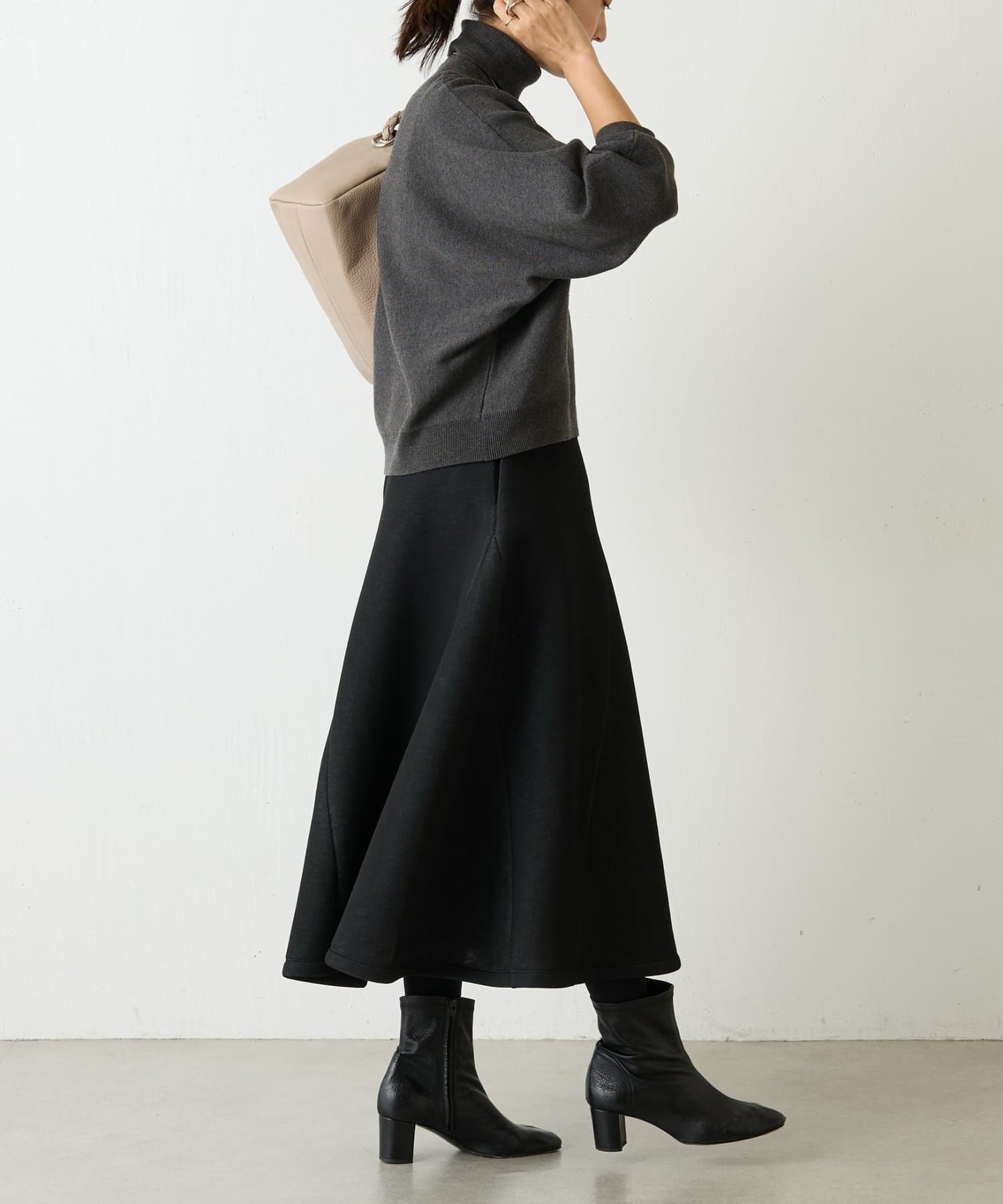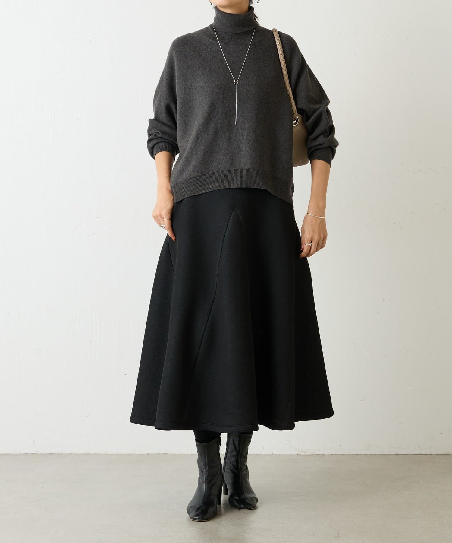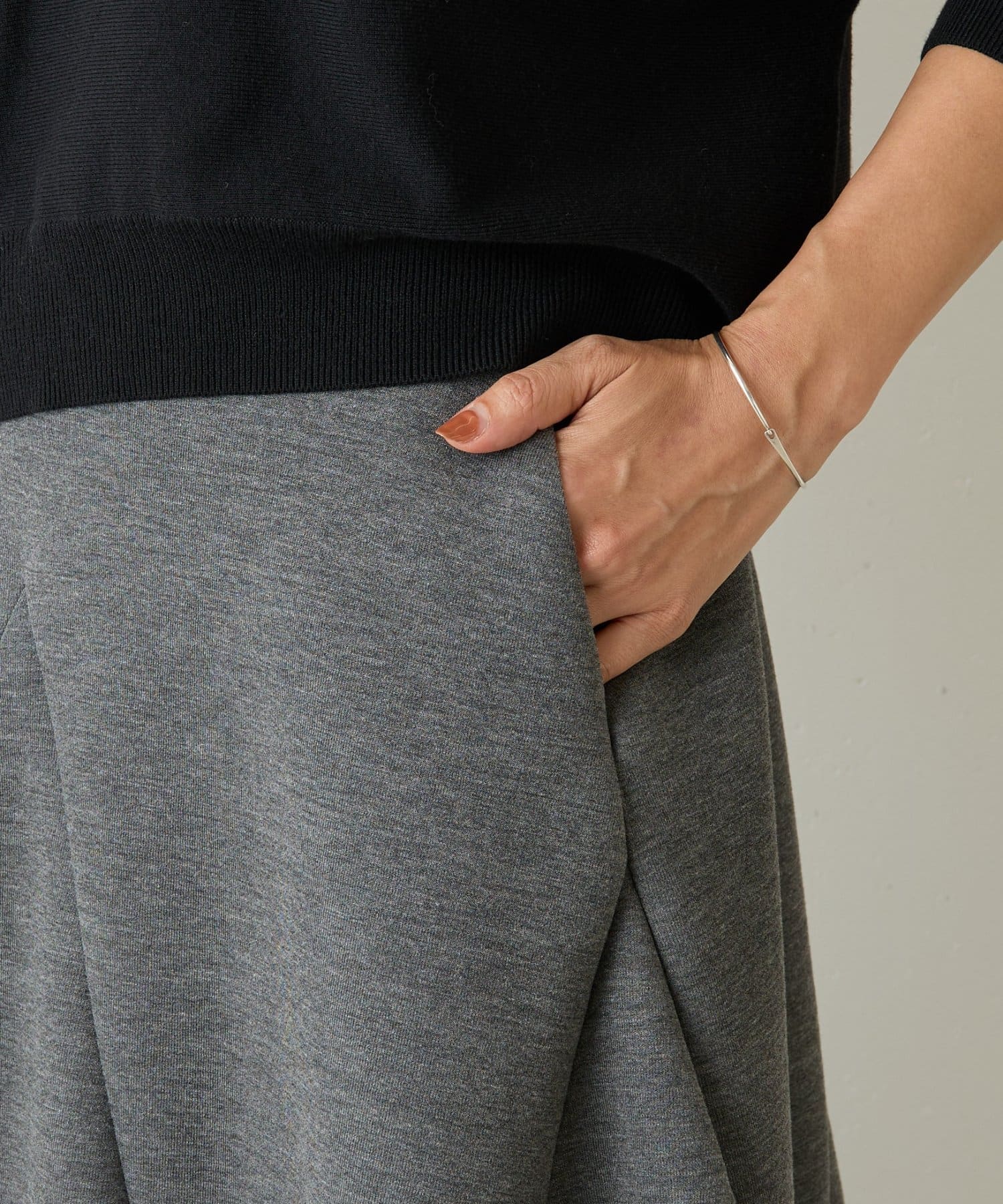 裏地がついているので、透け感は気にならず、裾が足に纏わりつかないのでシルエットが綺麗にみえるのも嬉しいポイント。