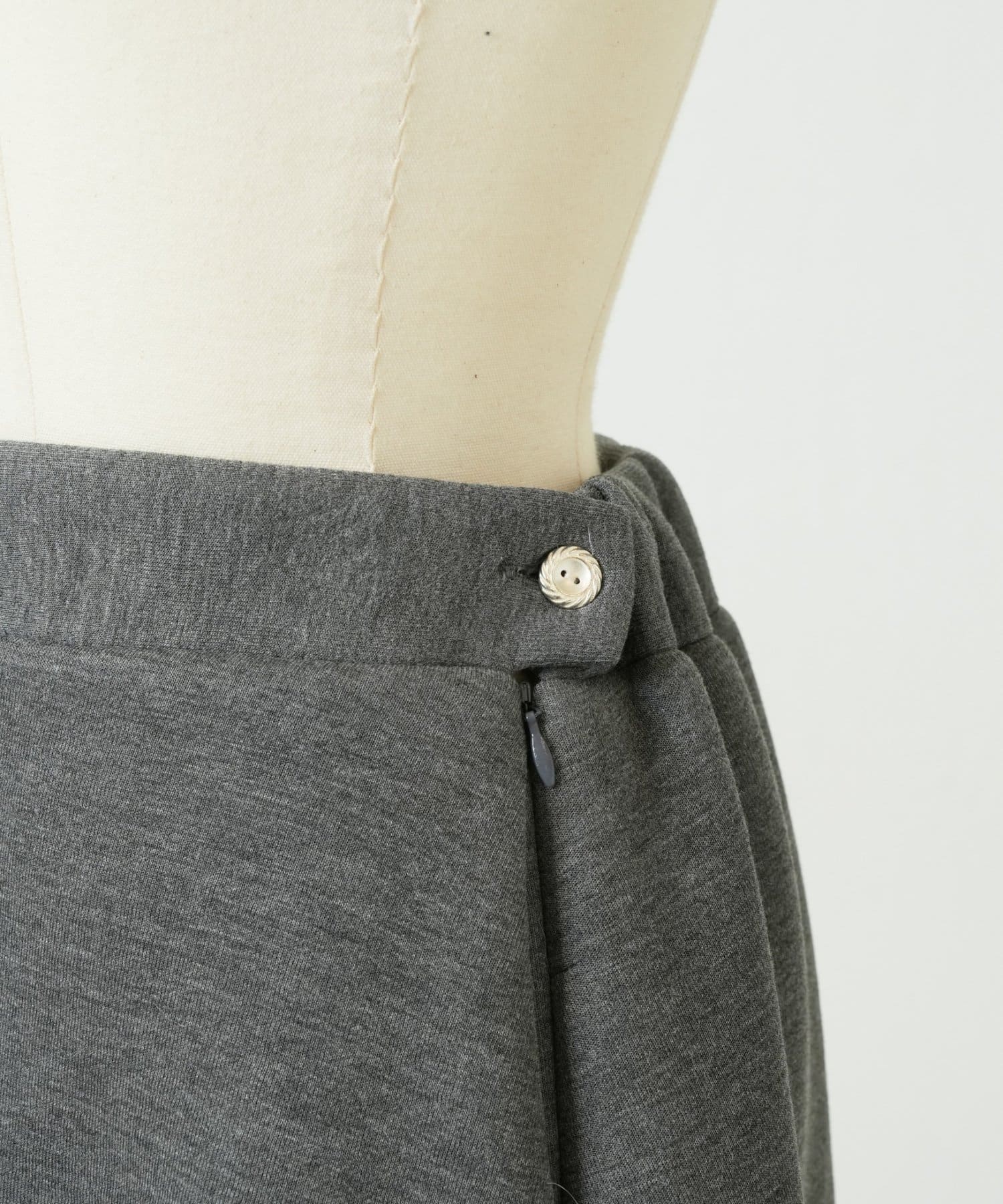 後ろウエスト部分のみゴム入りで、トップスの裾をインしてもすっきり見えます。