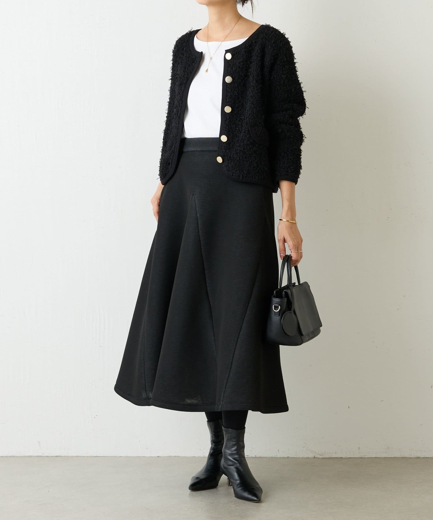 足元が重くならないようなカジュアルな雰囲気に仕立てています。