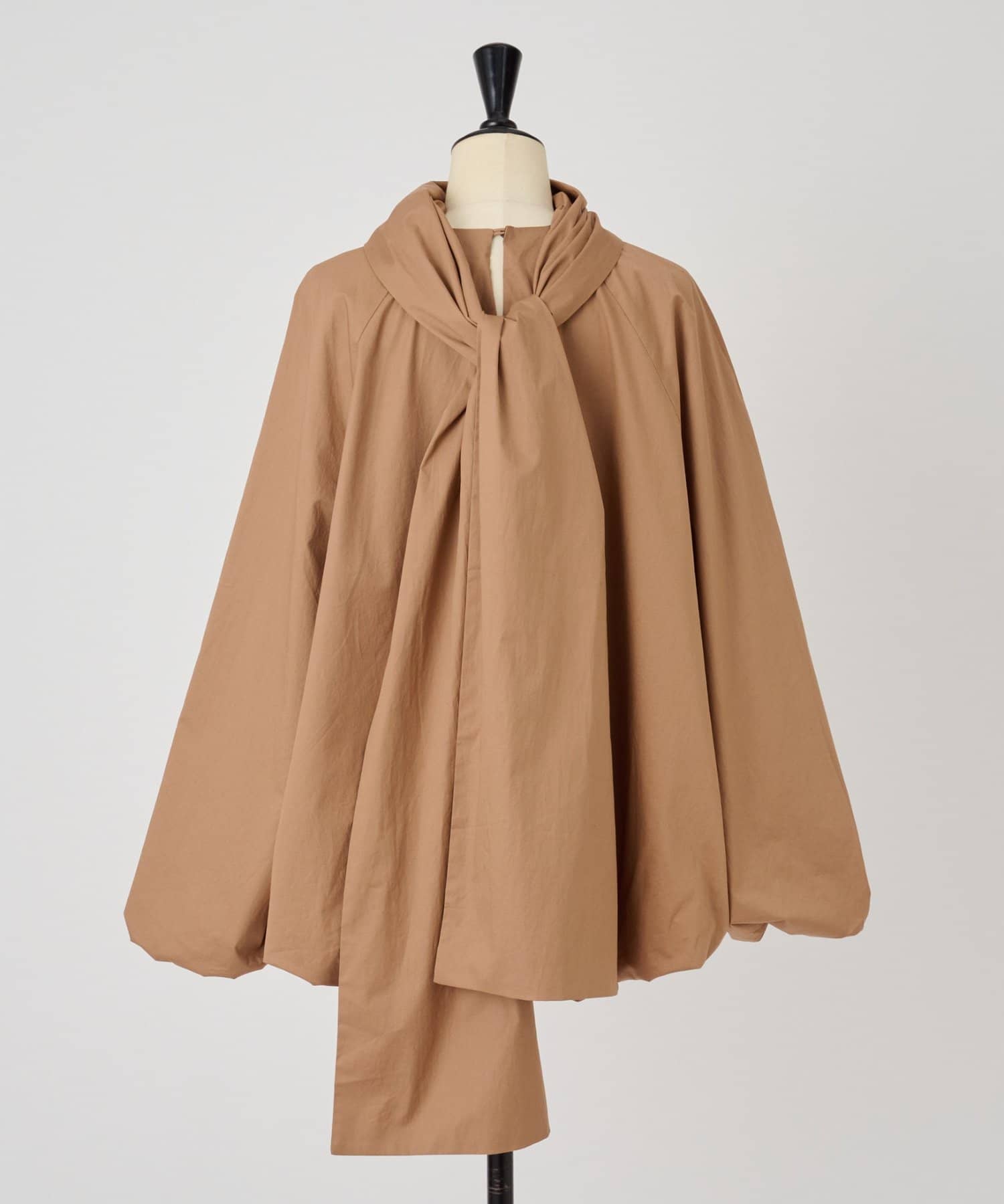 身頃や袖には裏地を施し、袖口や裾まわりにたっぷりとギャザーを寄せ、ふんわりとしたシルエットに仕立てています。