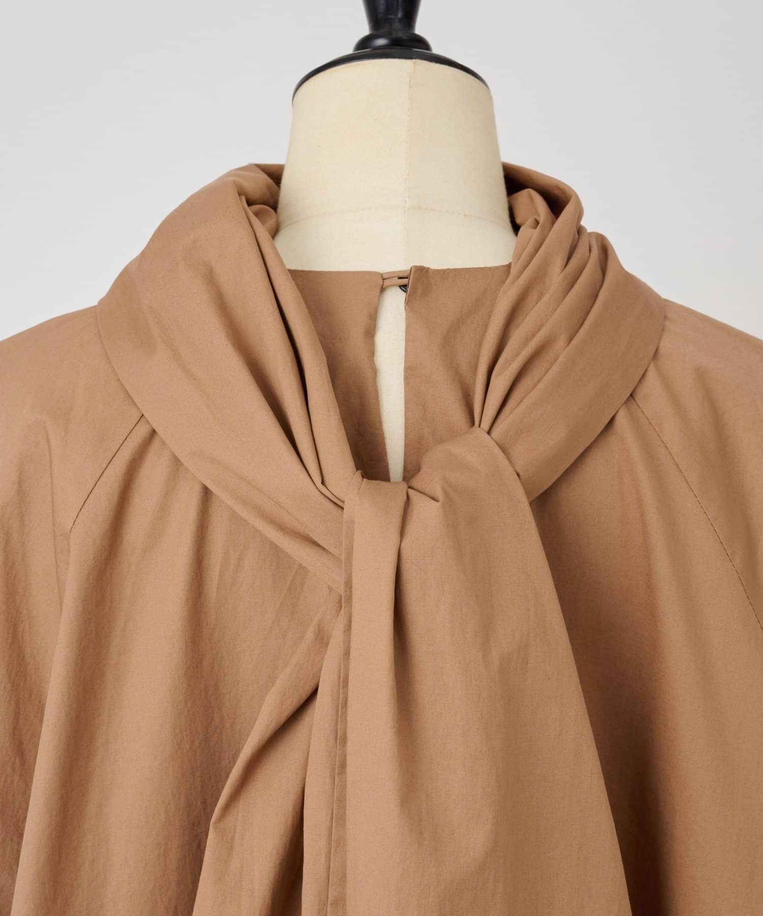衿元にはストールのような幅広の生地が縫い付けられており、ボウタイのように結んだり、