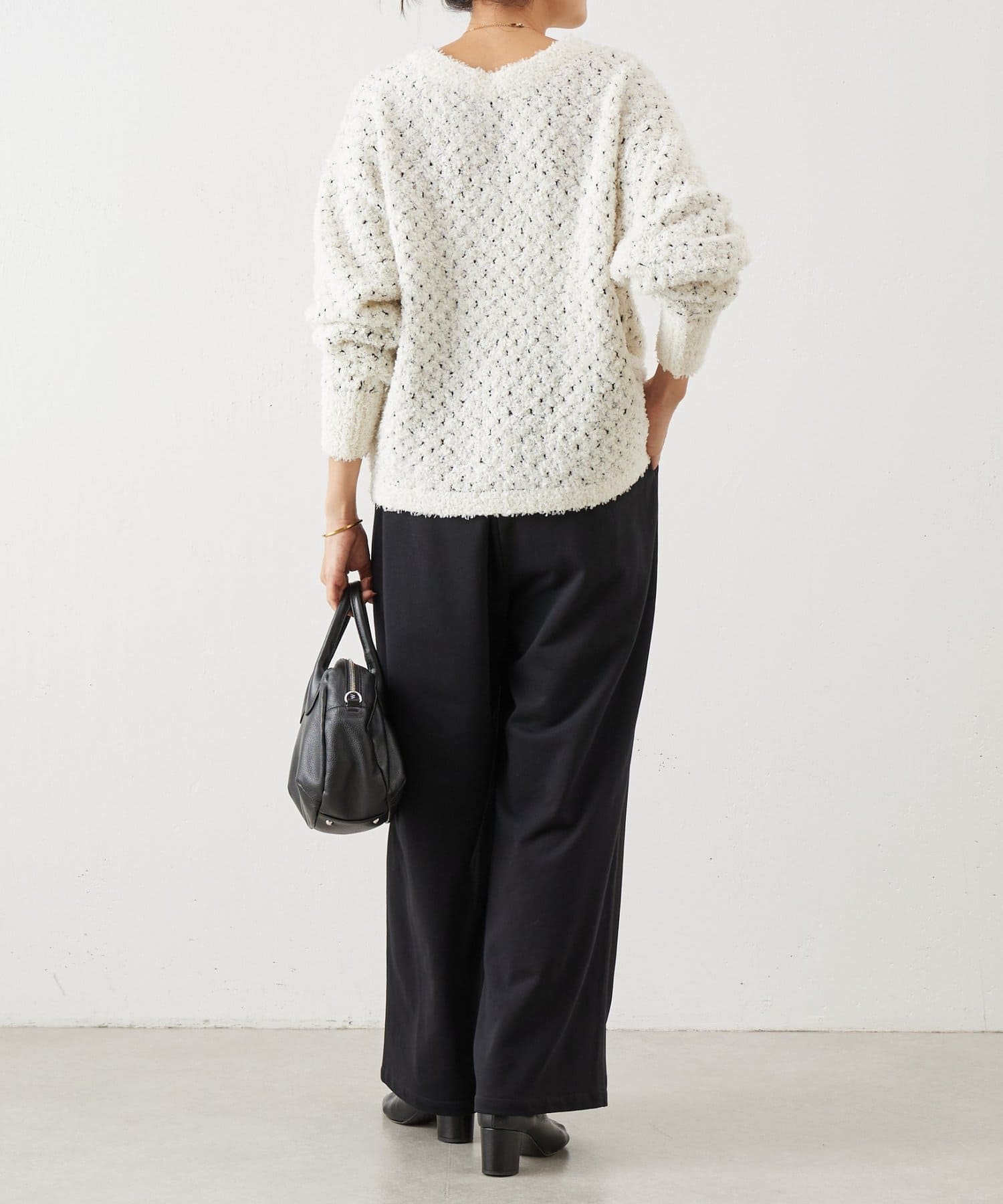 さりげない華やかさがありつつ、カジュアルにも馴染む一枚です。