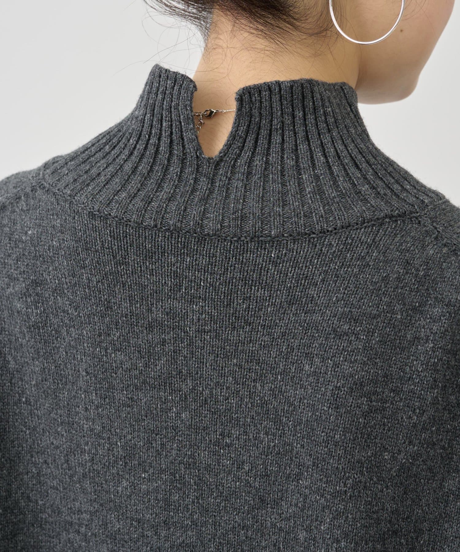 高さのあるハイネックはリブ仕様で、後ろ衿元にスリットをいれているので、着心地楽ちん。