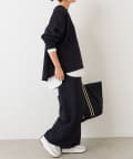 同素材のボトムとのセットアップスタイルもおすすめ。