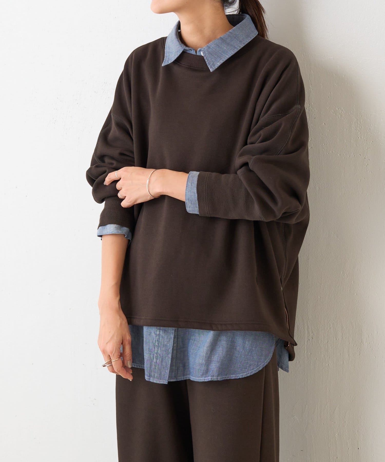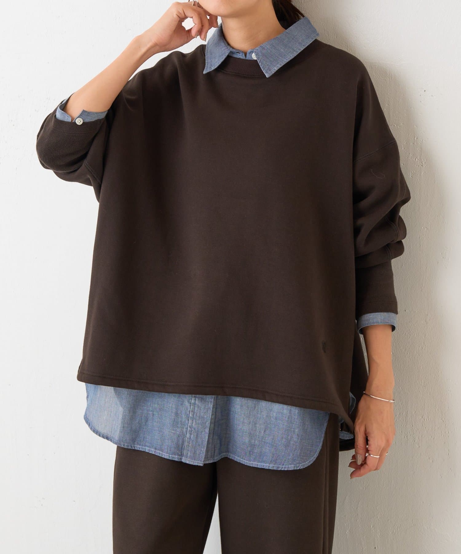 滑らかな裏ボアが包み込むような温もりを与え、厚すぎない生地感で重ね着もしやすく仕上げました。