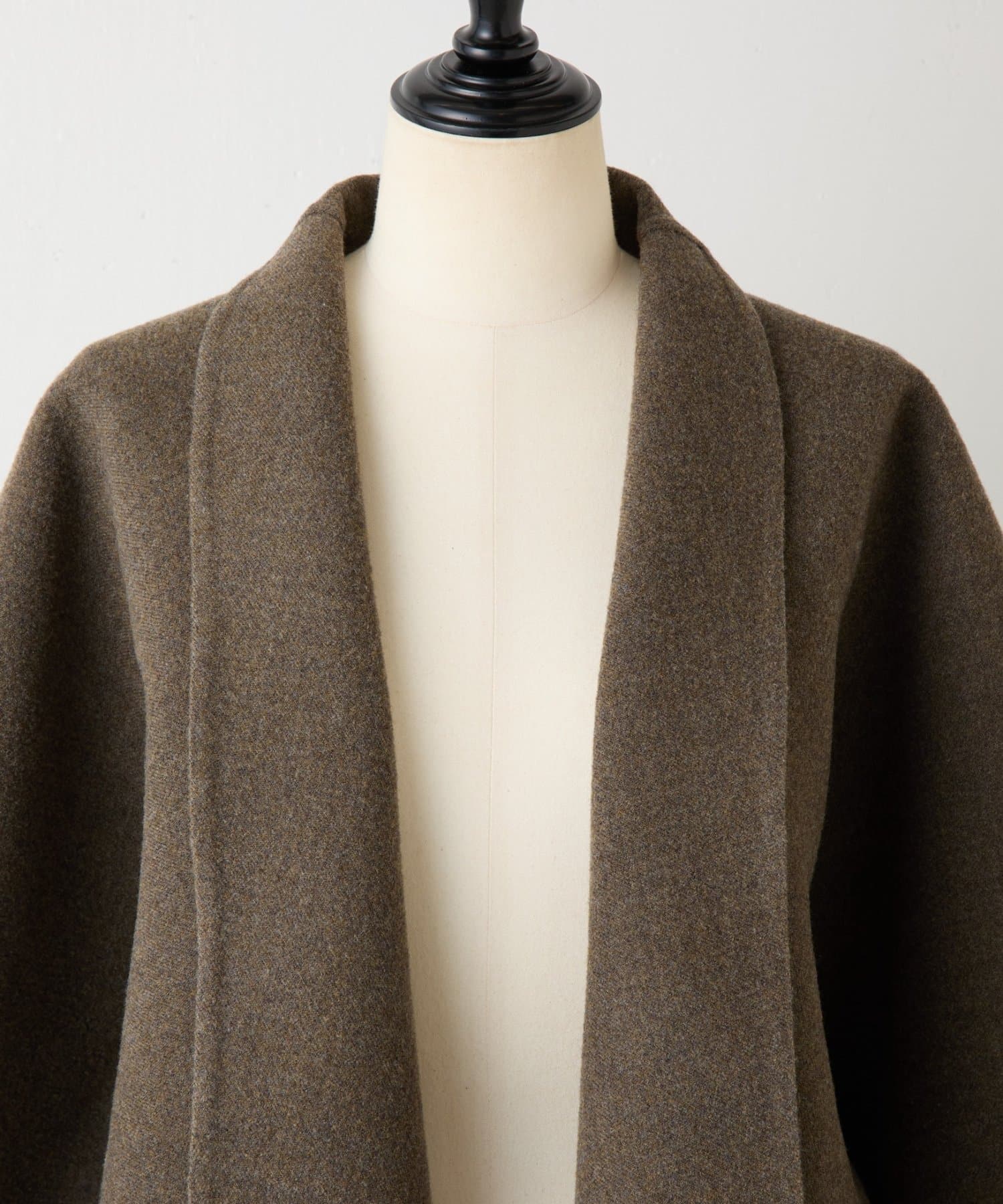 肩の切り替えを無くすことで、羽織るだけで自然なドレープが生まれ、体を包み込むような柔らかな佇まいに仕上がります。