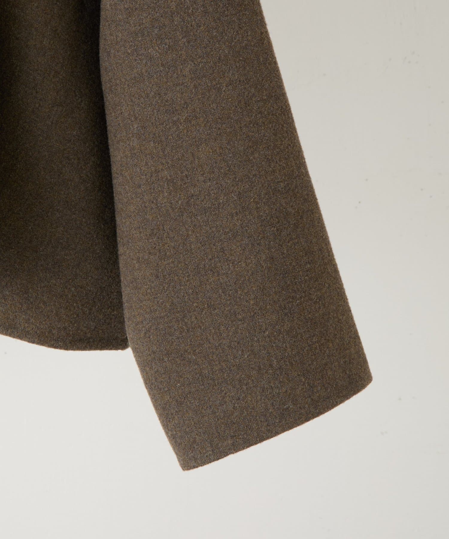 ウールにわずかにシルクをブレンドした、軽やかでしなやかな素材を使用したショート丈のコート。