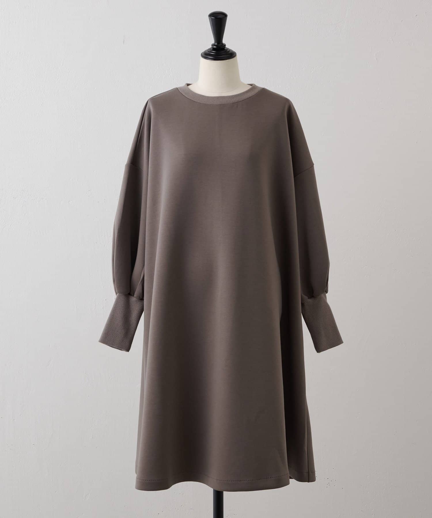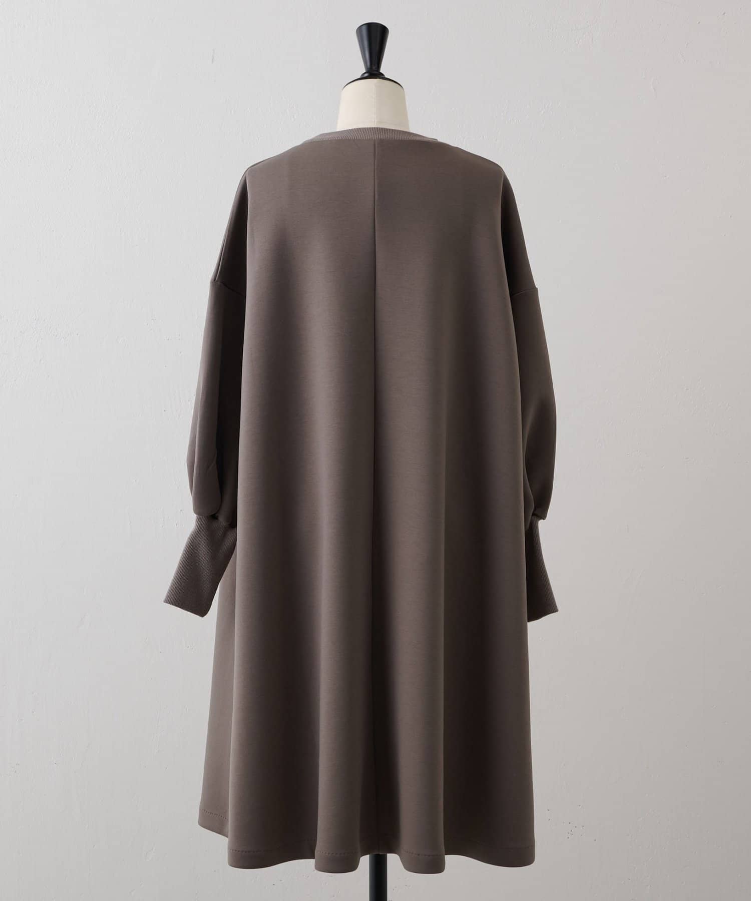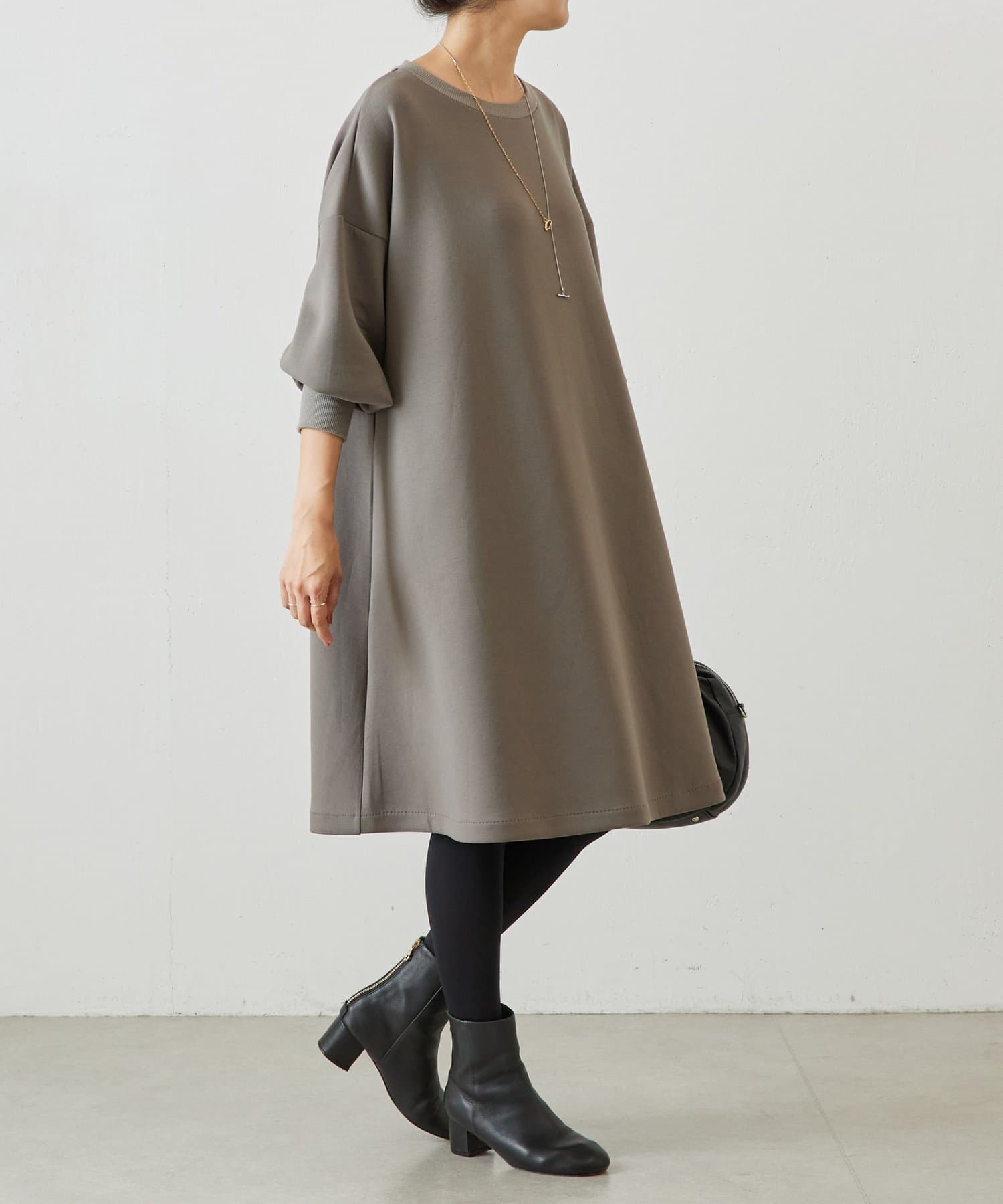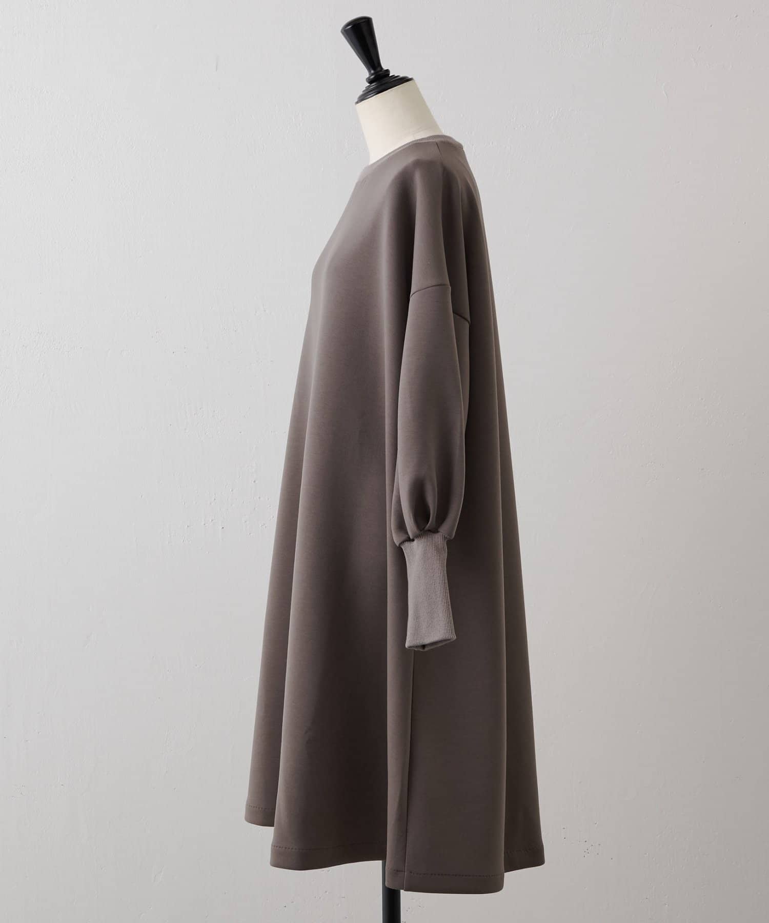 ストレッチの効いたダンボールカットソー素材のワンピース。