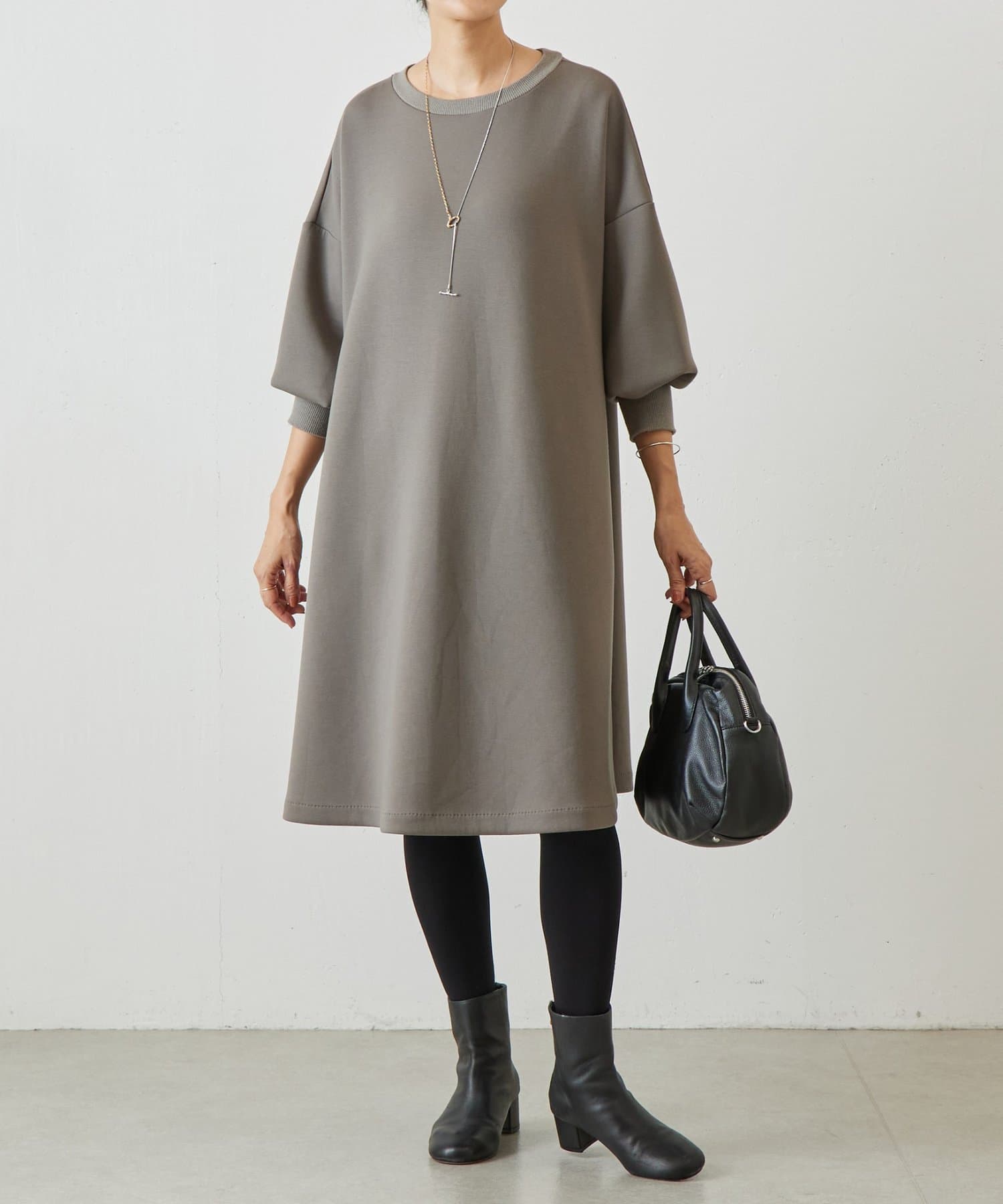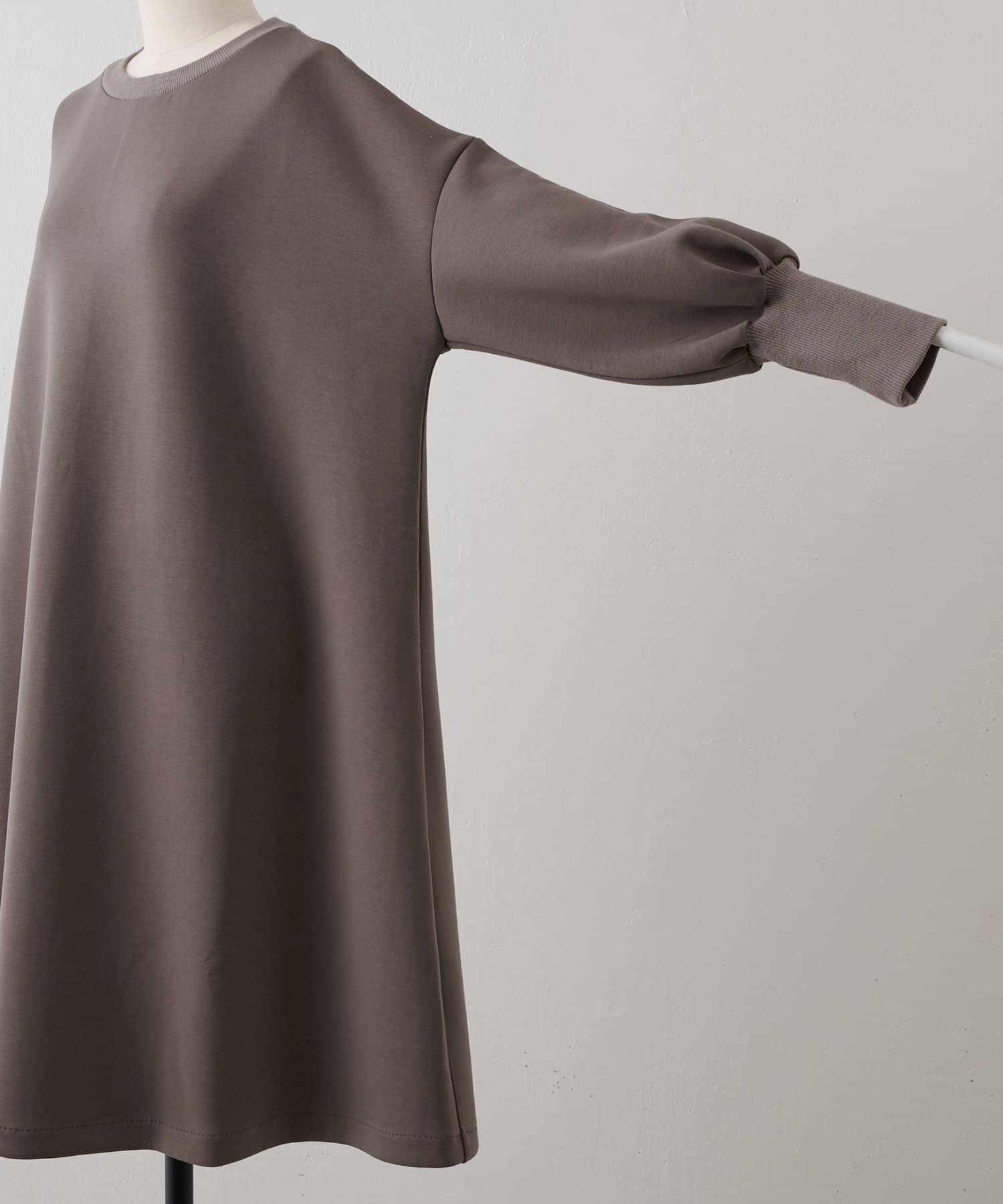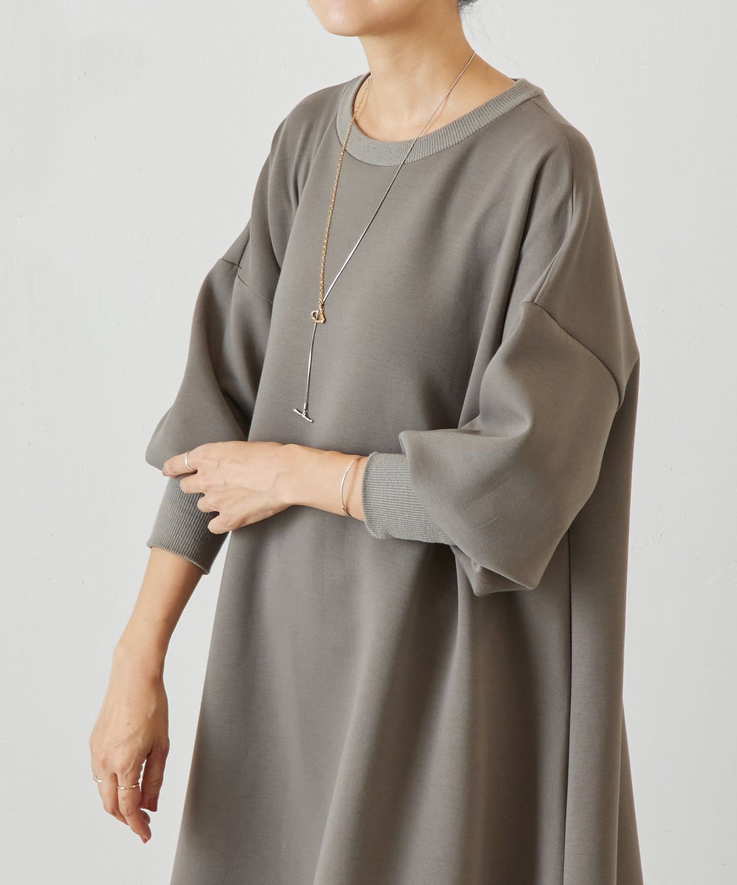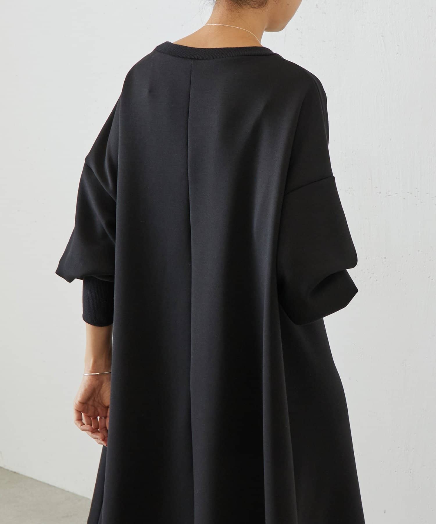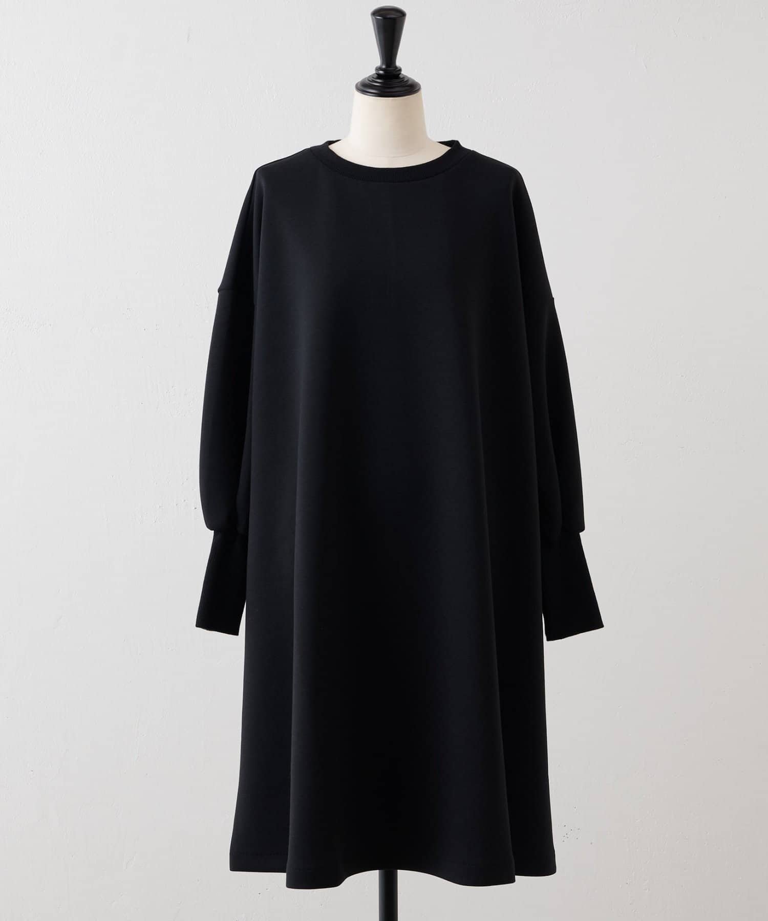 ストレッチの効いたダンボールカットソー素材のワンピース。