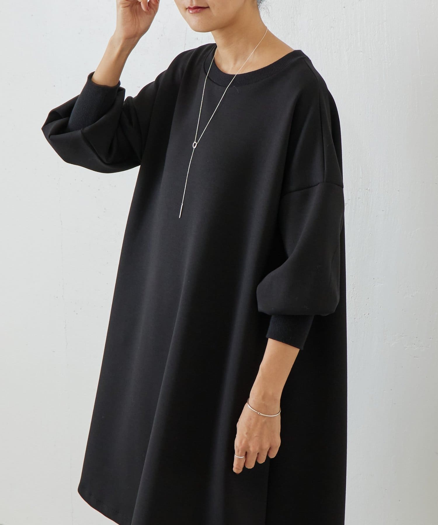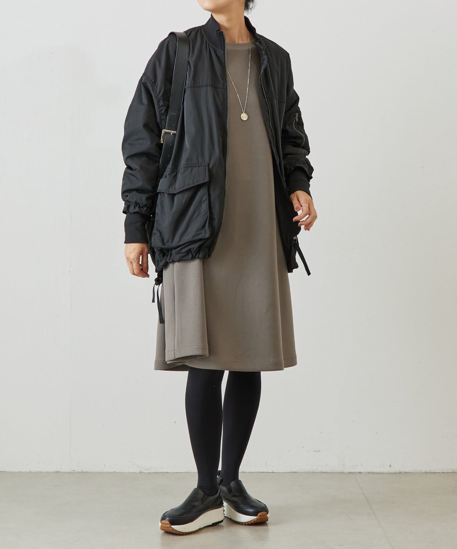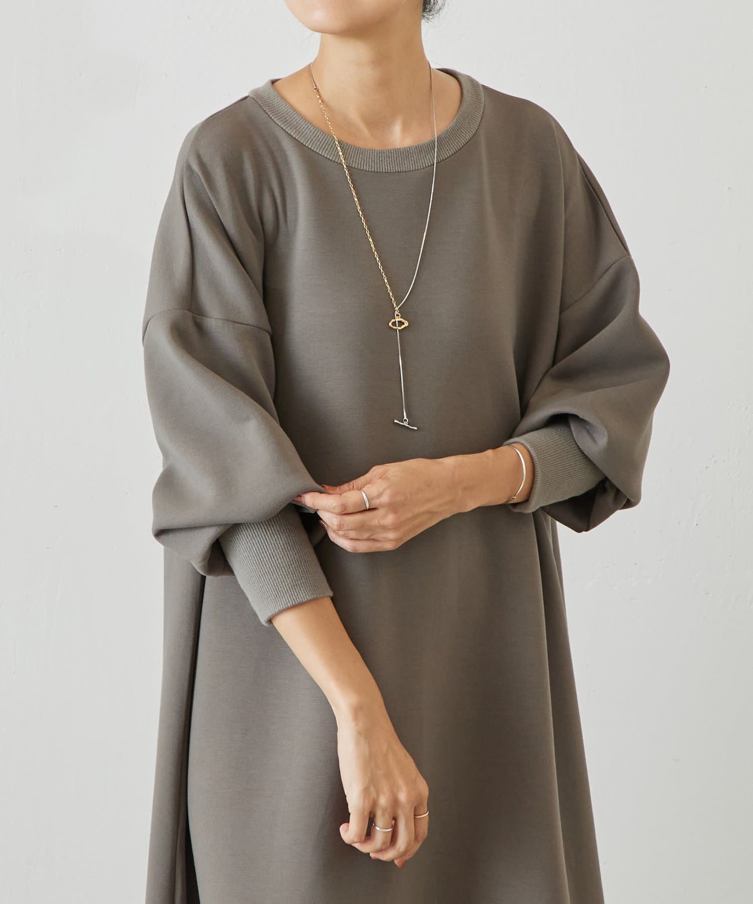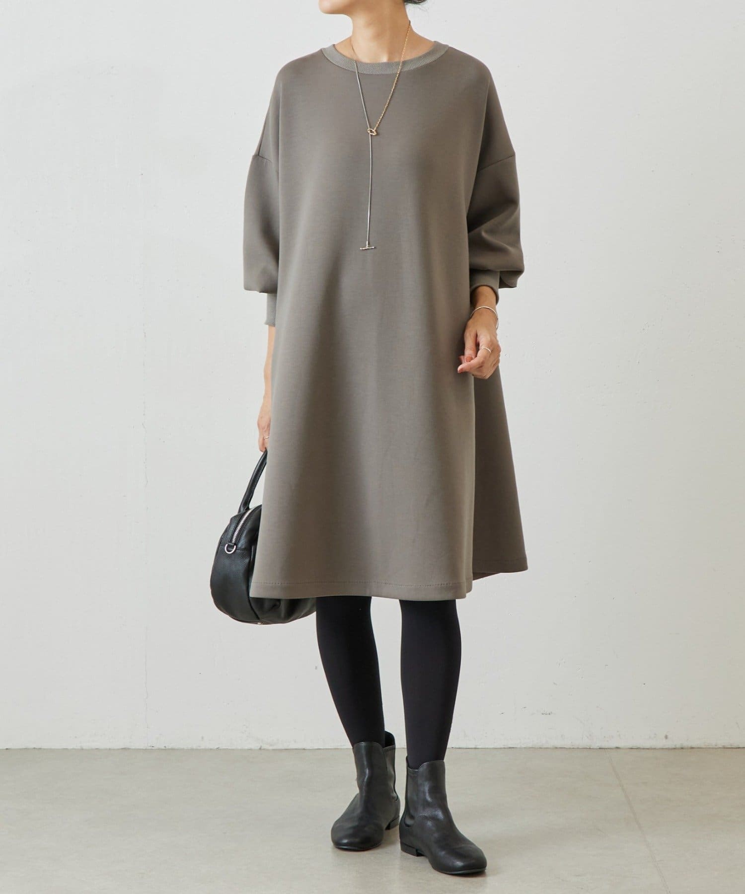 ストレッチの効いたダンボールカットソー素材のワンピース。