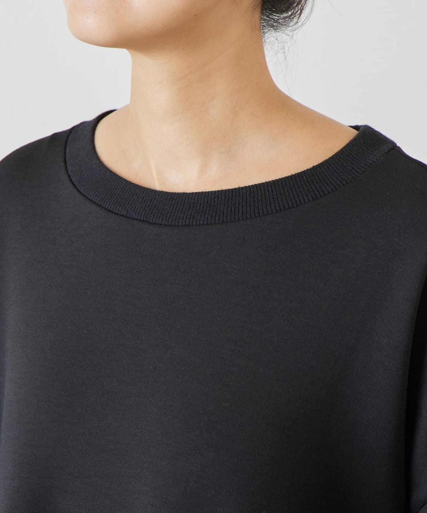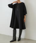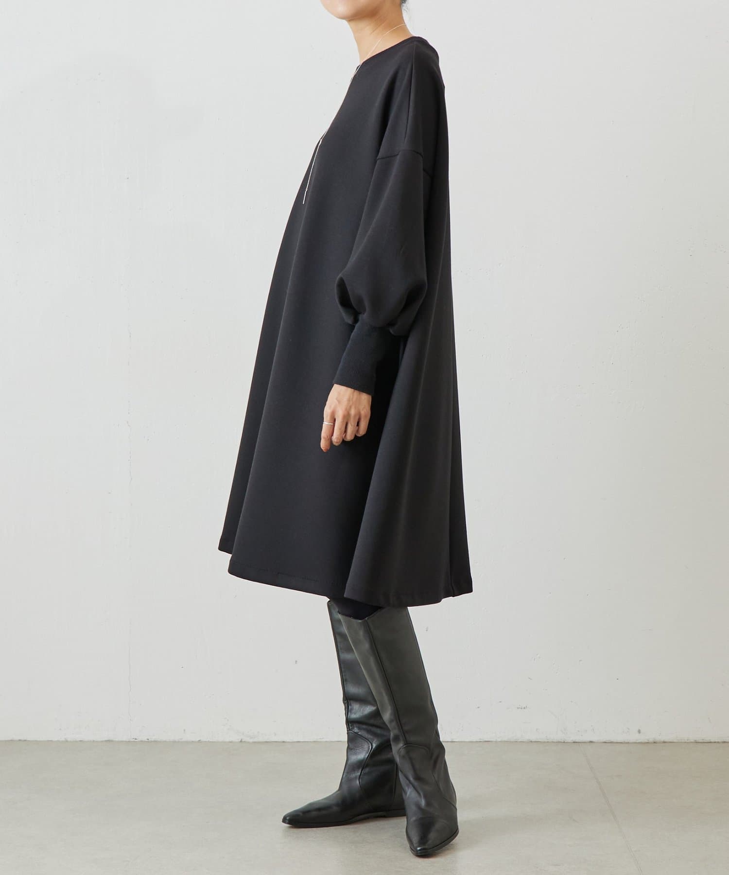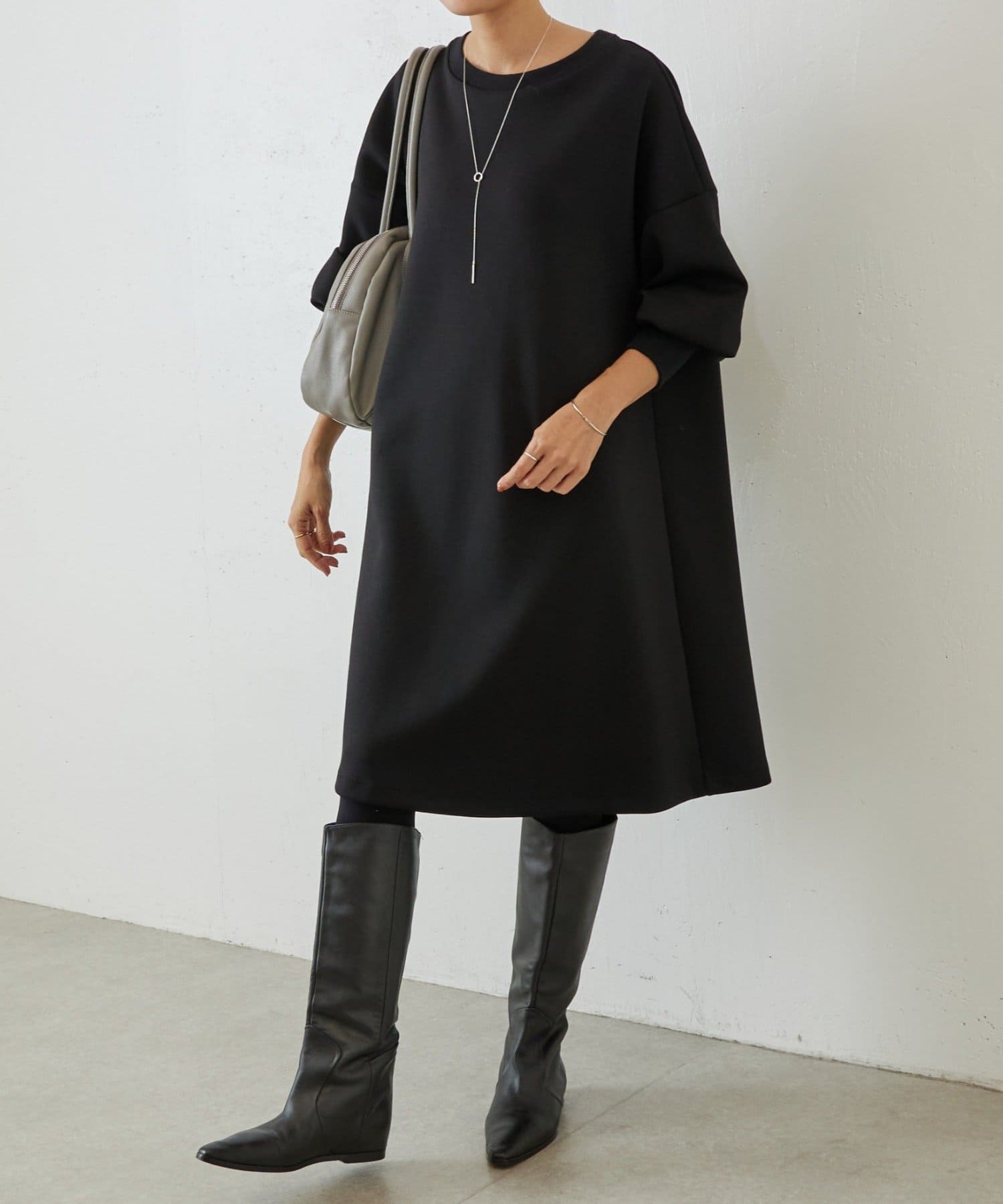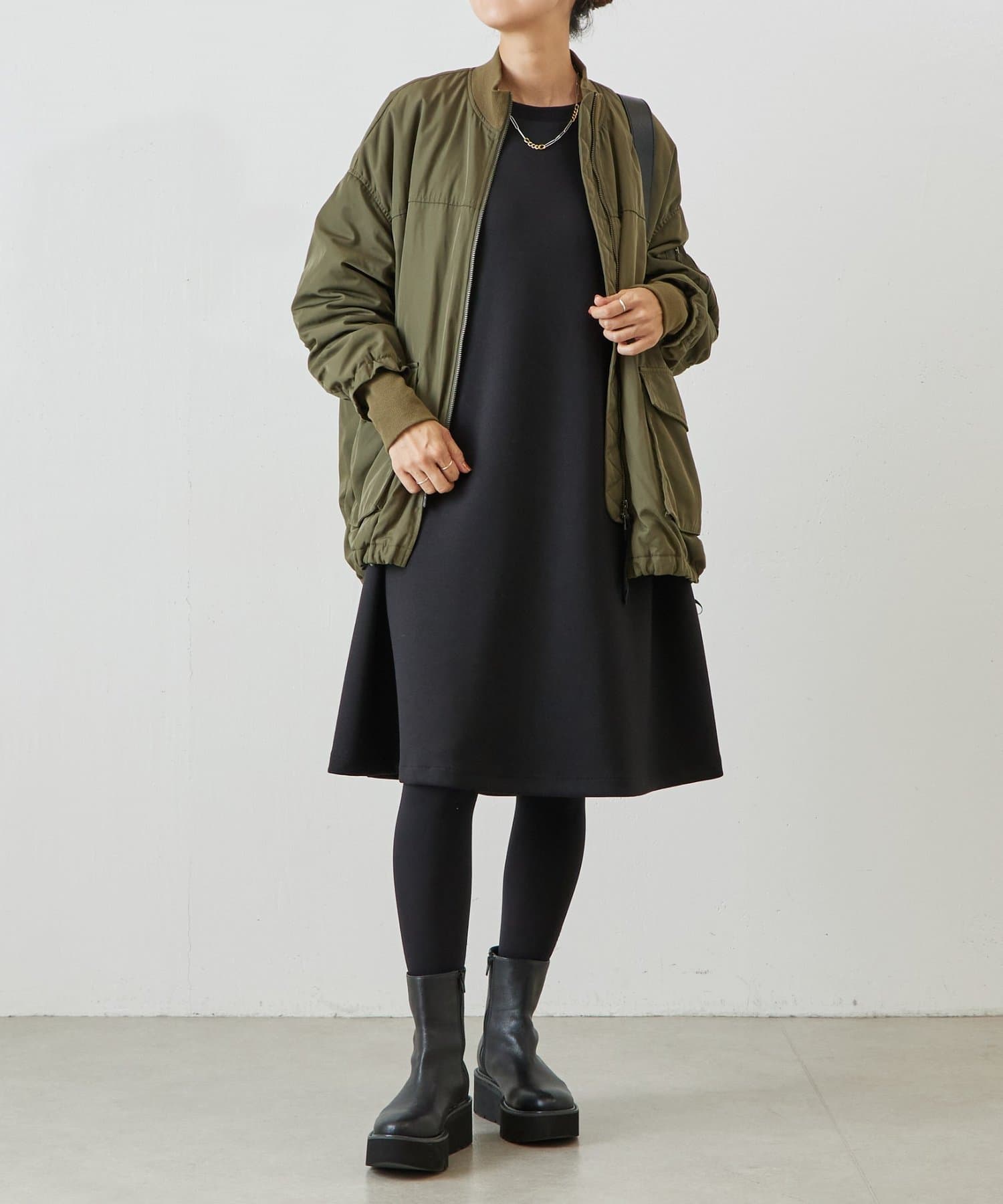 ストレッチの効いたダンボールカットソー素材のワンピース。