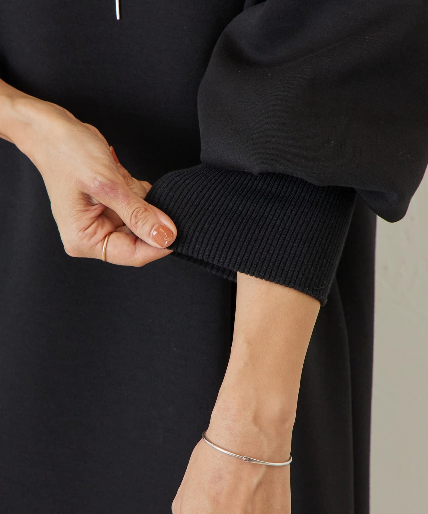 袖口は長めのリブになっており、たくしあげるとパフスリーブに。