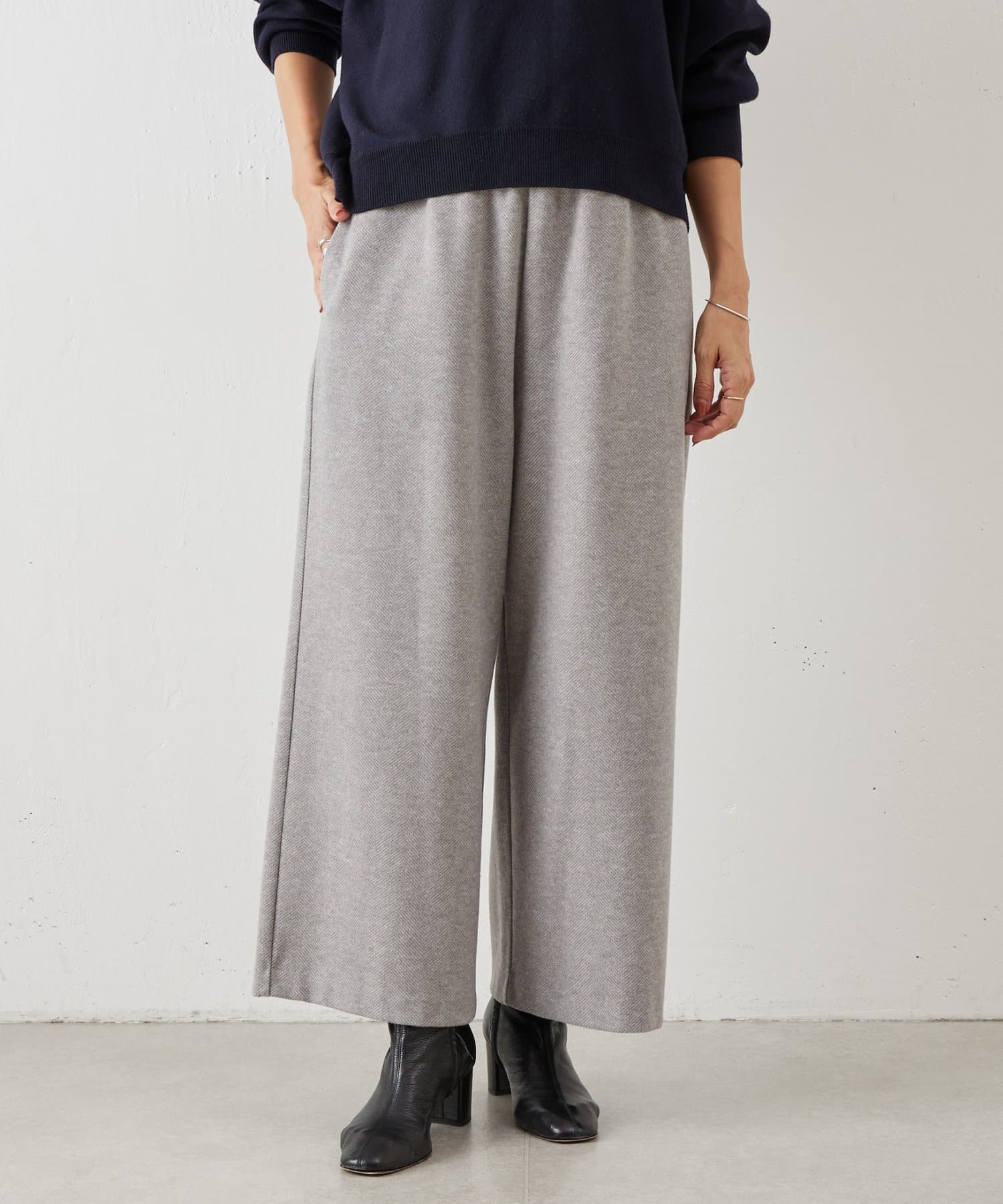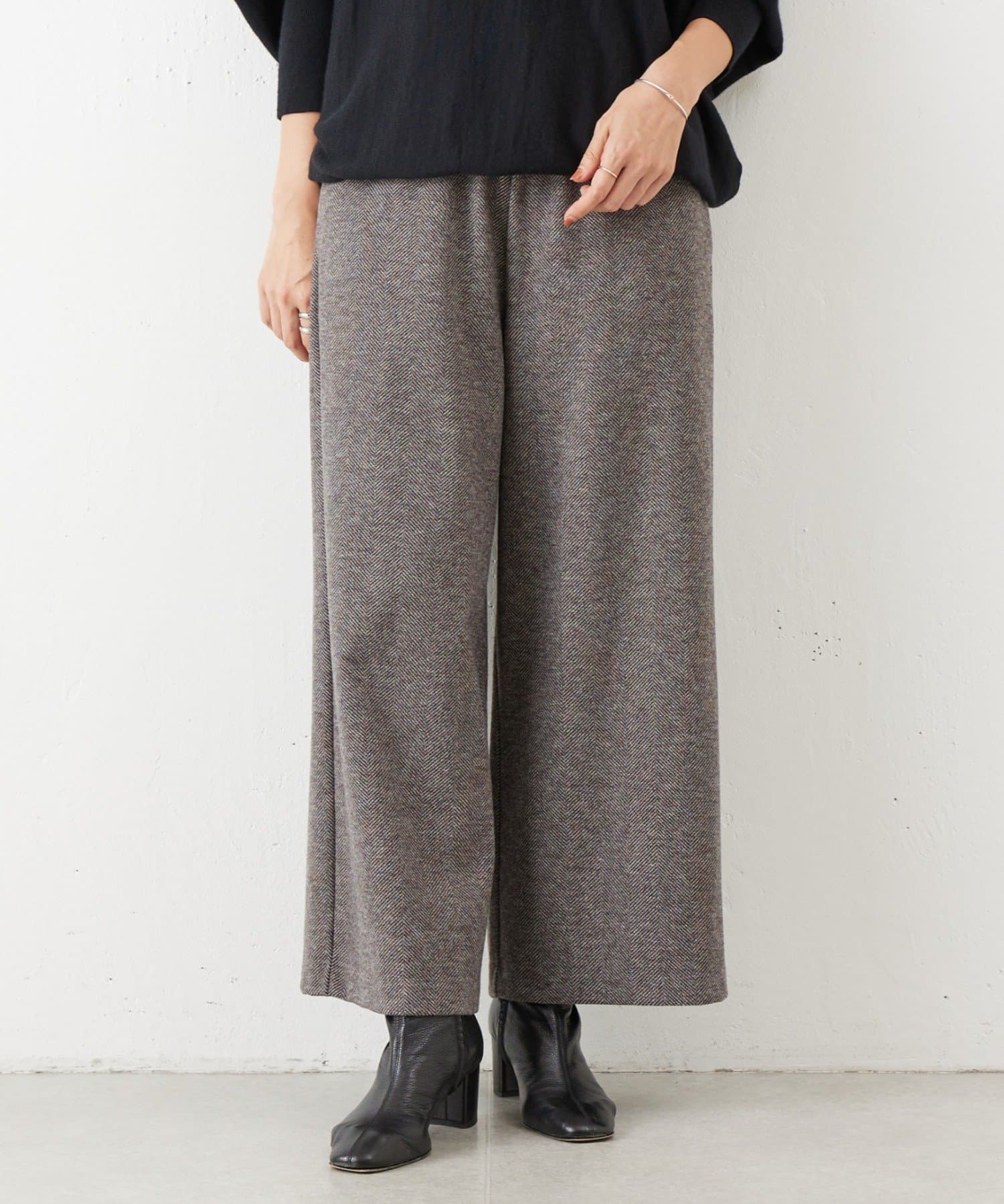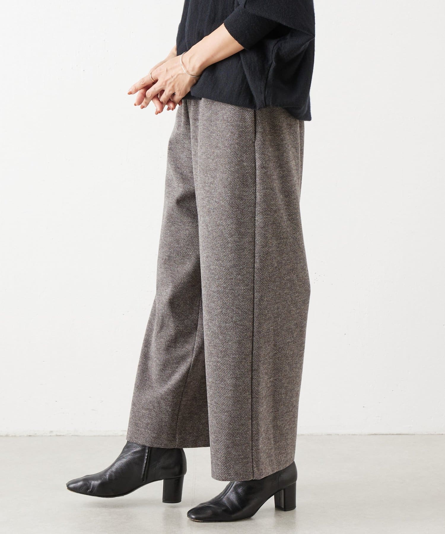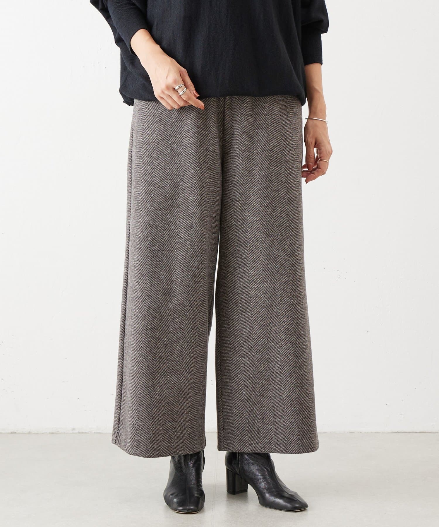 ウールのような表情を持つ、ヘリンボーン柄のワイドパンツ。