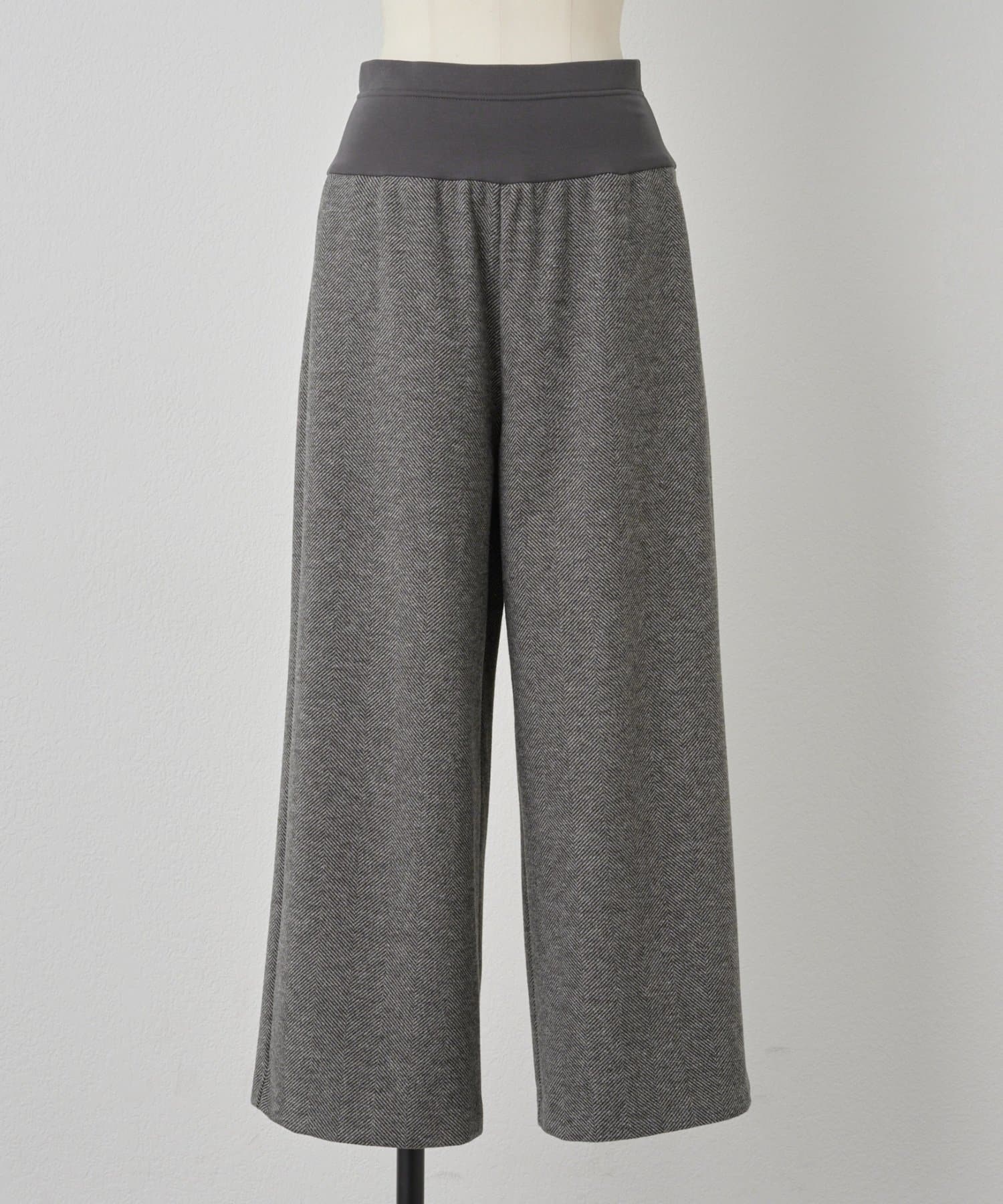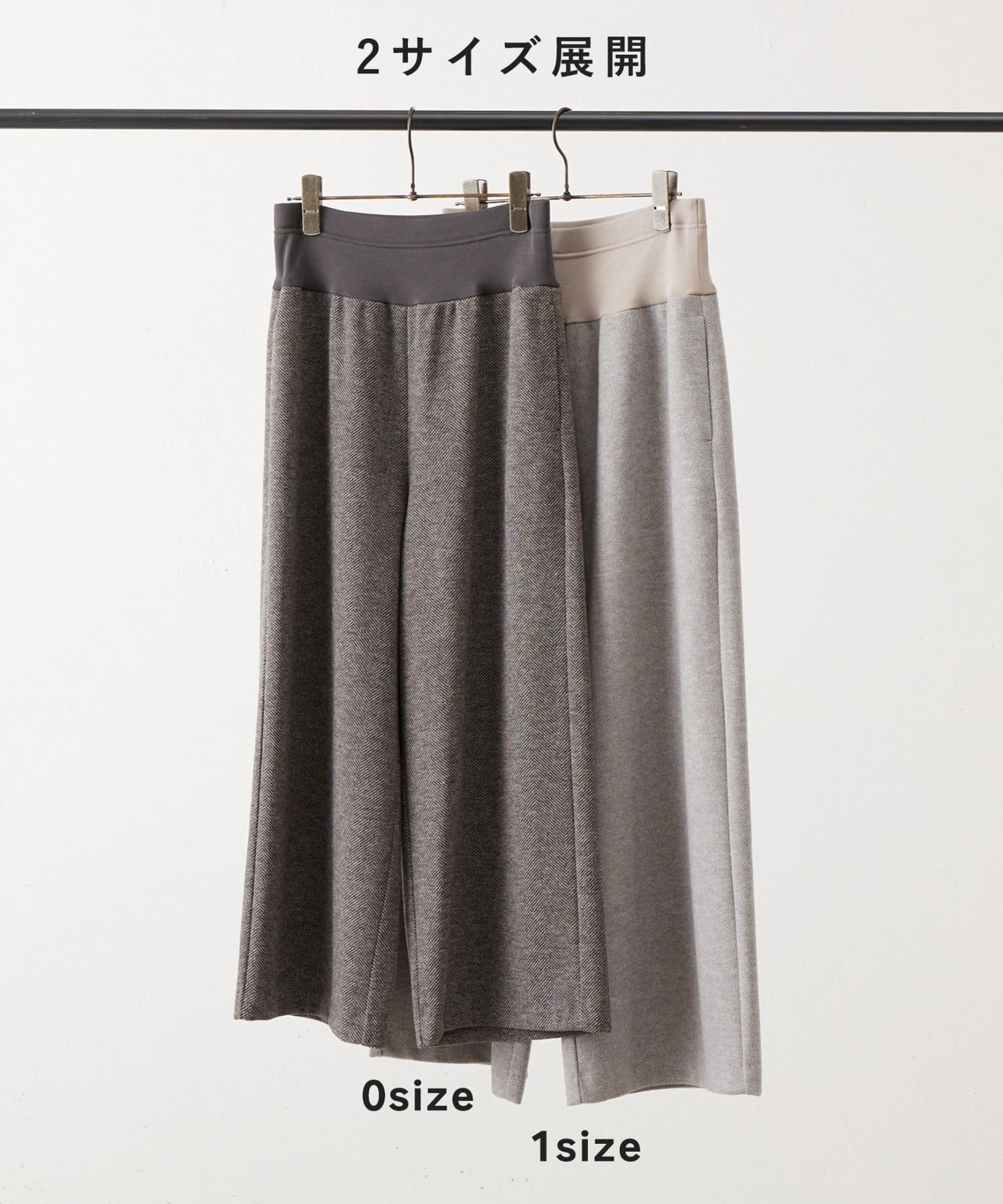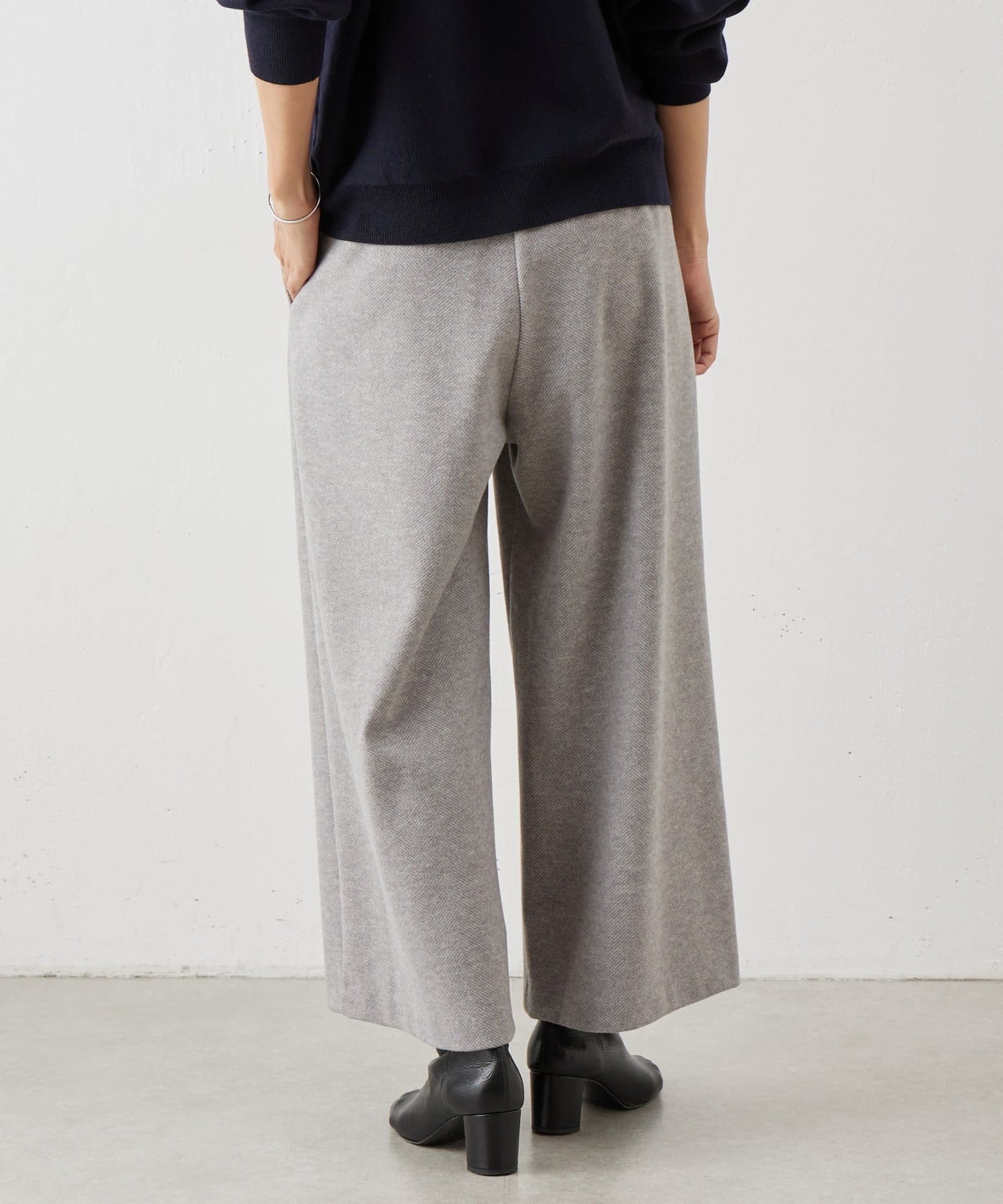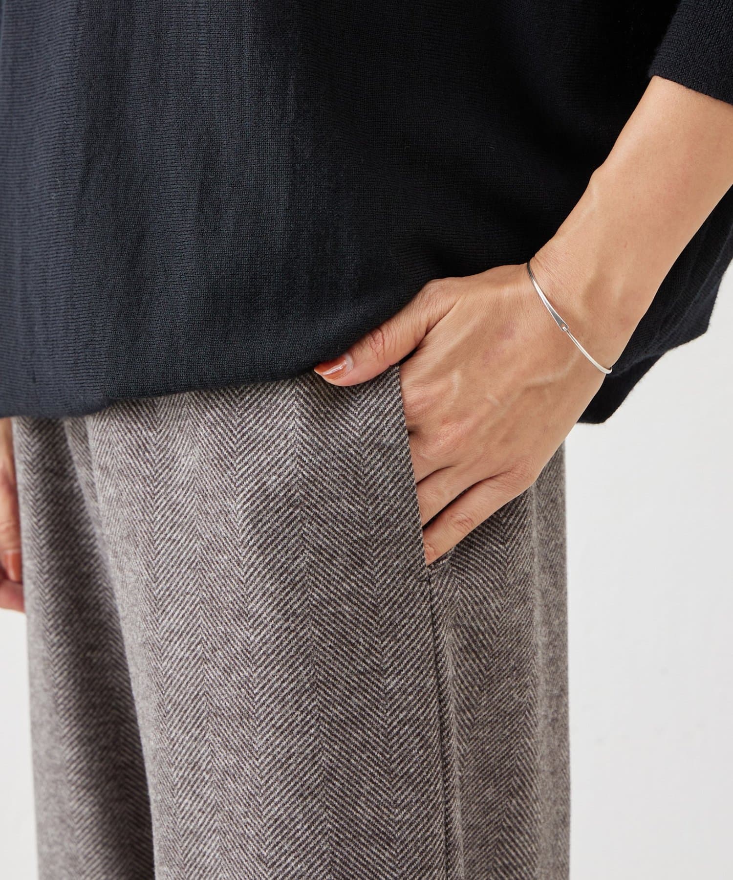 ウールのような表情を持つ、ヘリンボーン柄のワイドパンツ。
