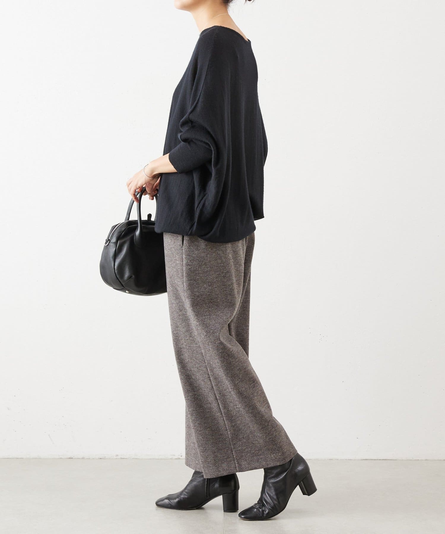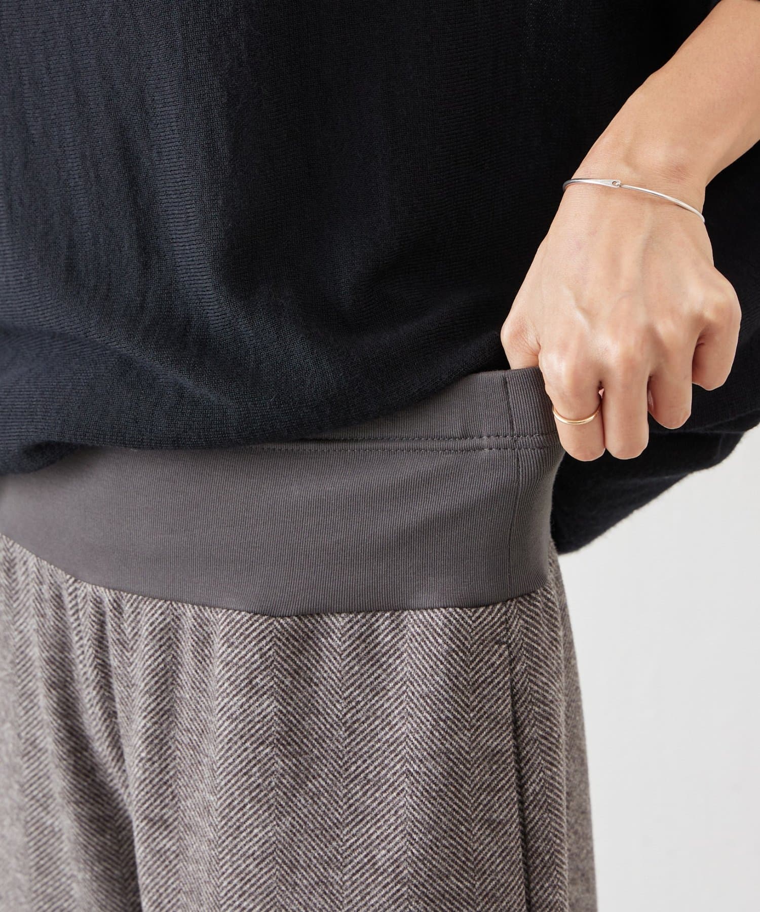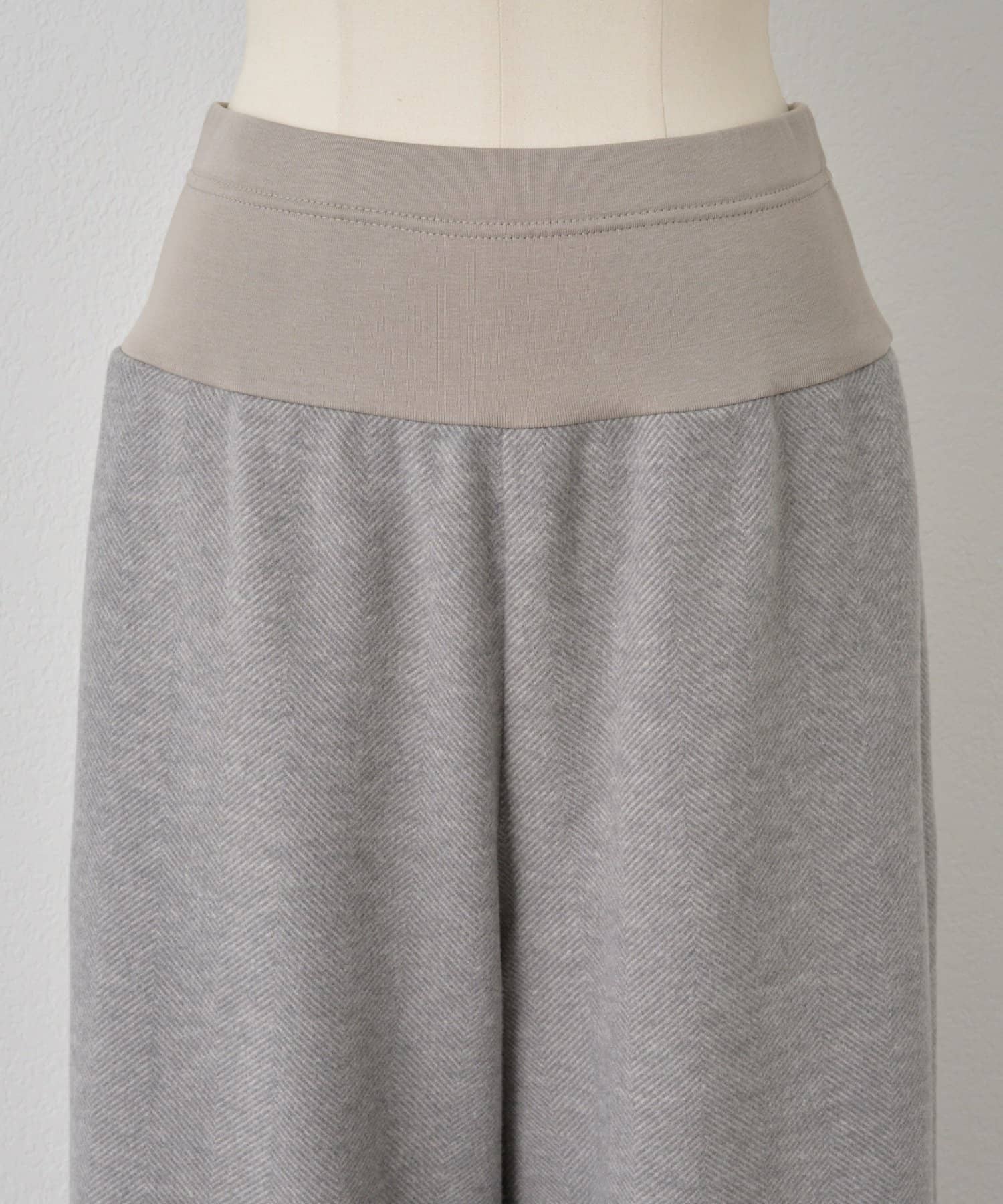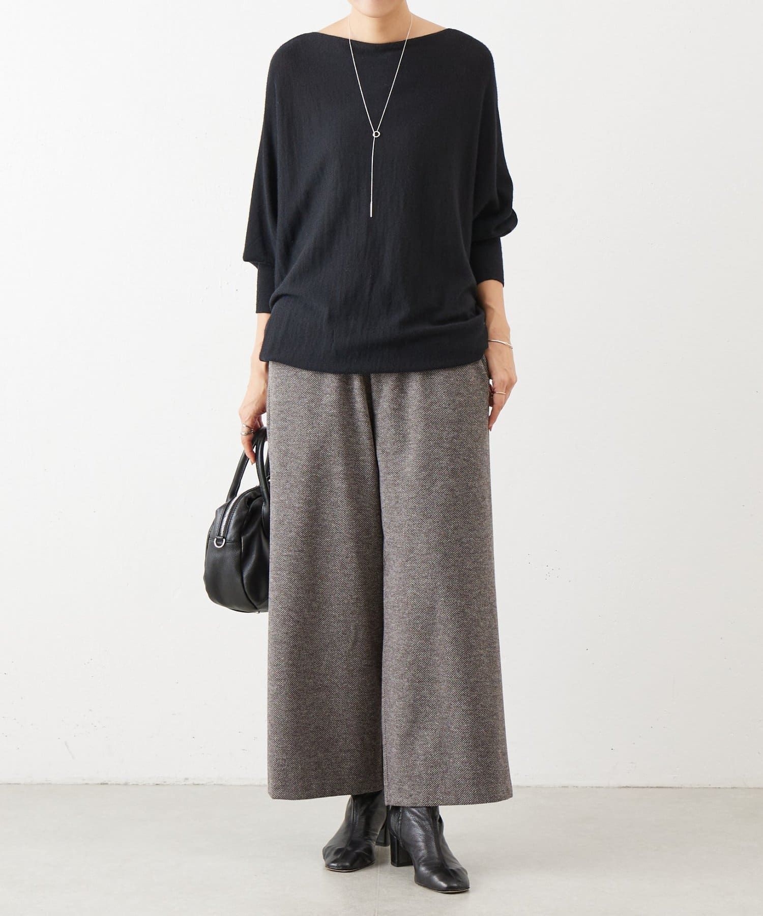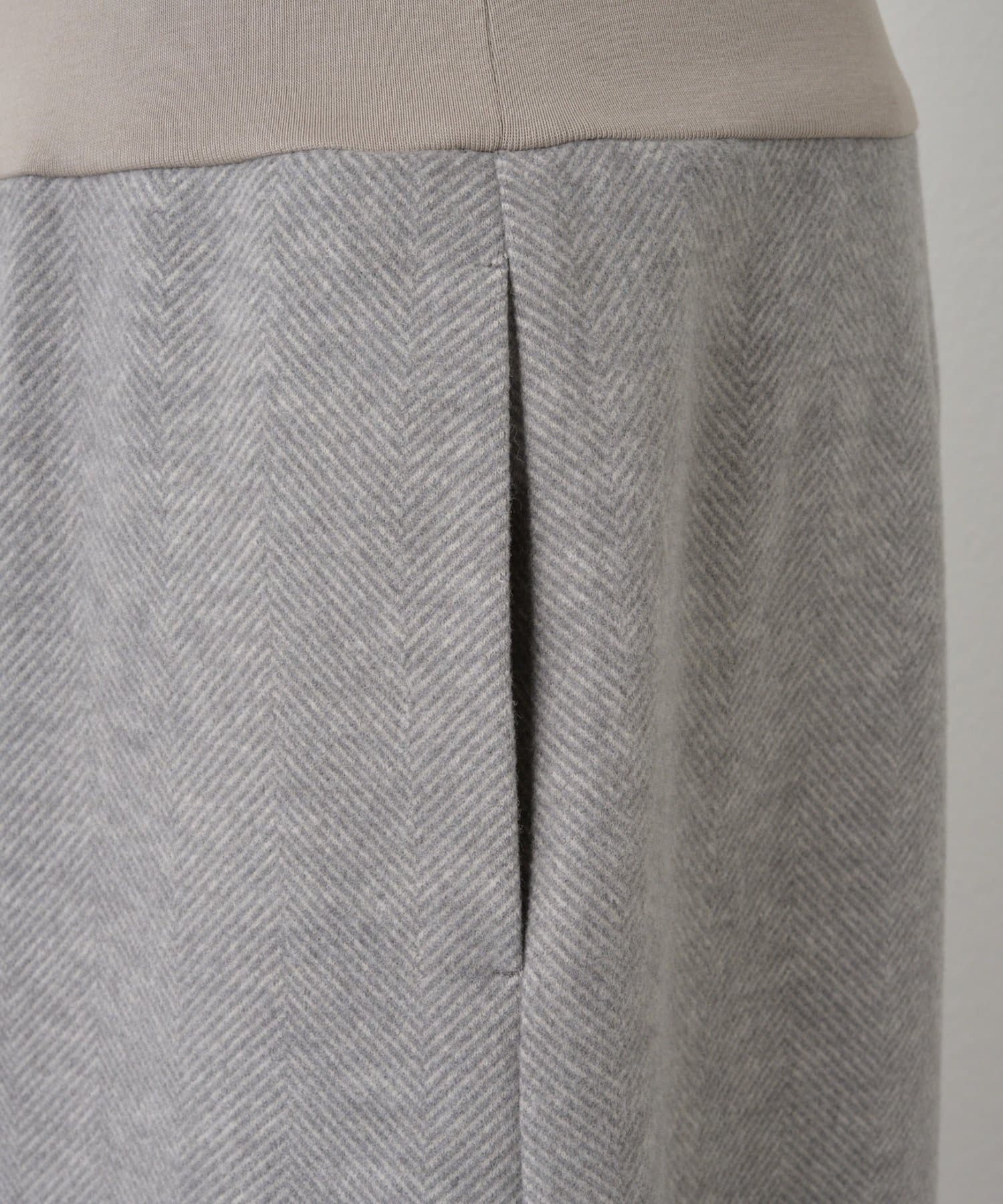 ウールのような表情を持つ、ヘリンボーン柄のワイドパンツ。
