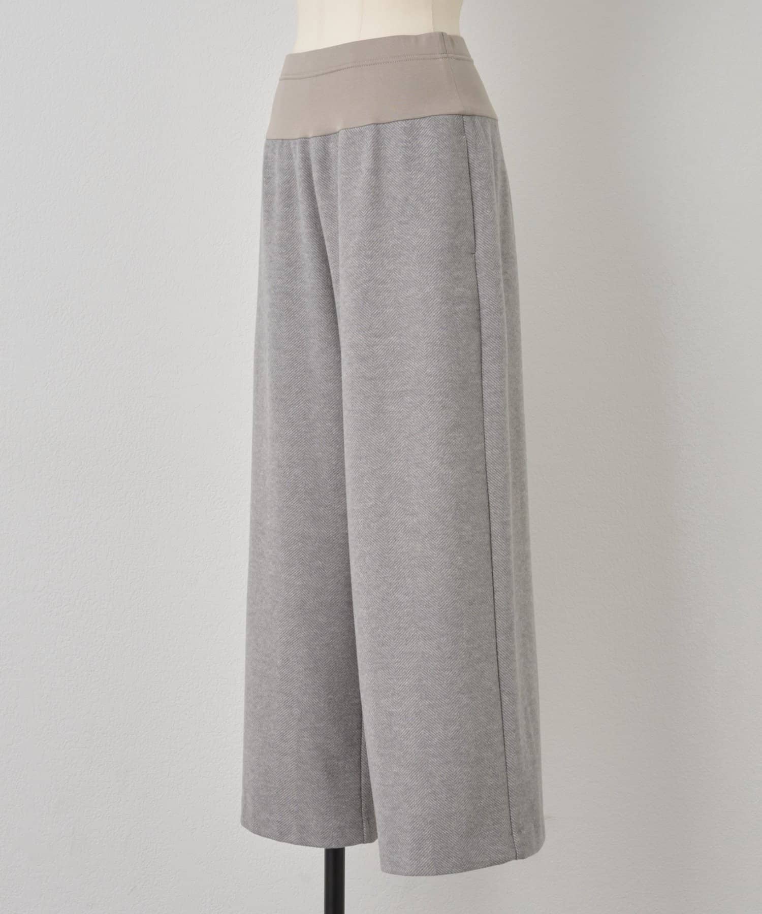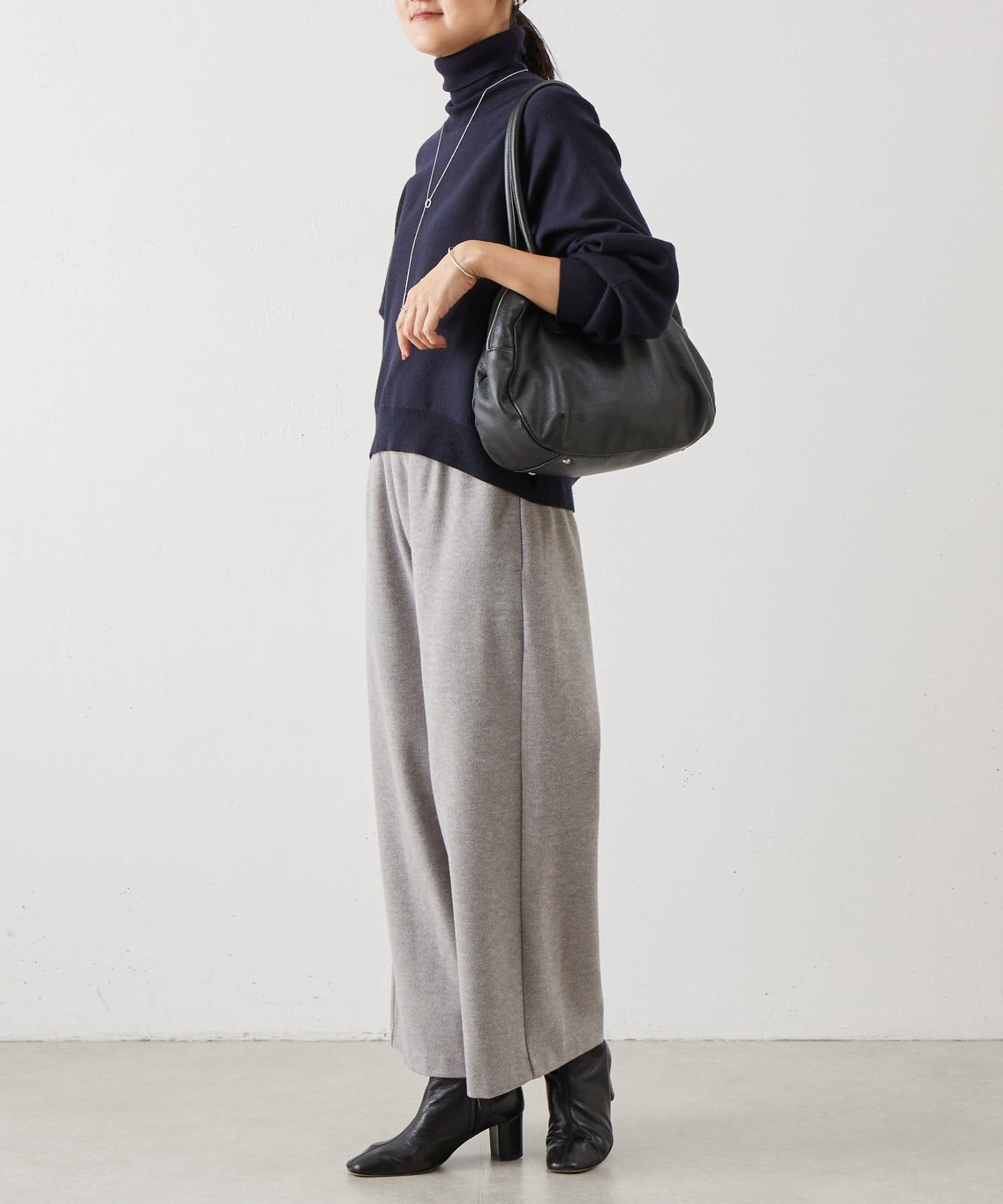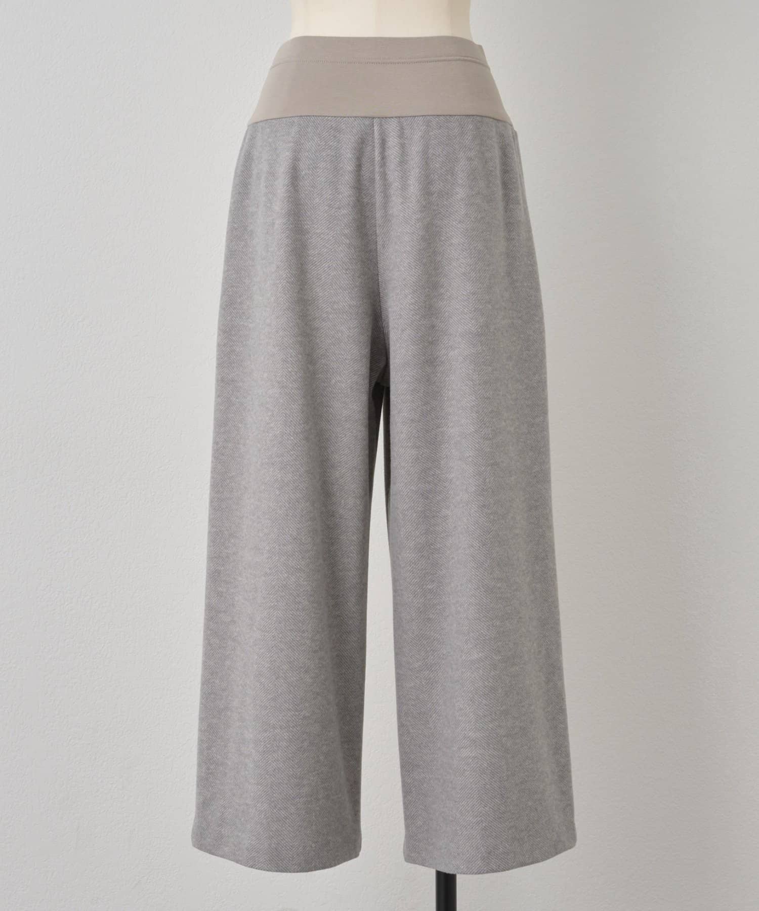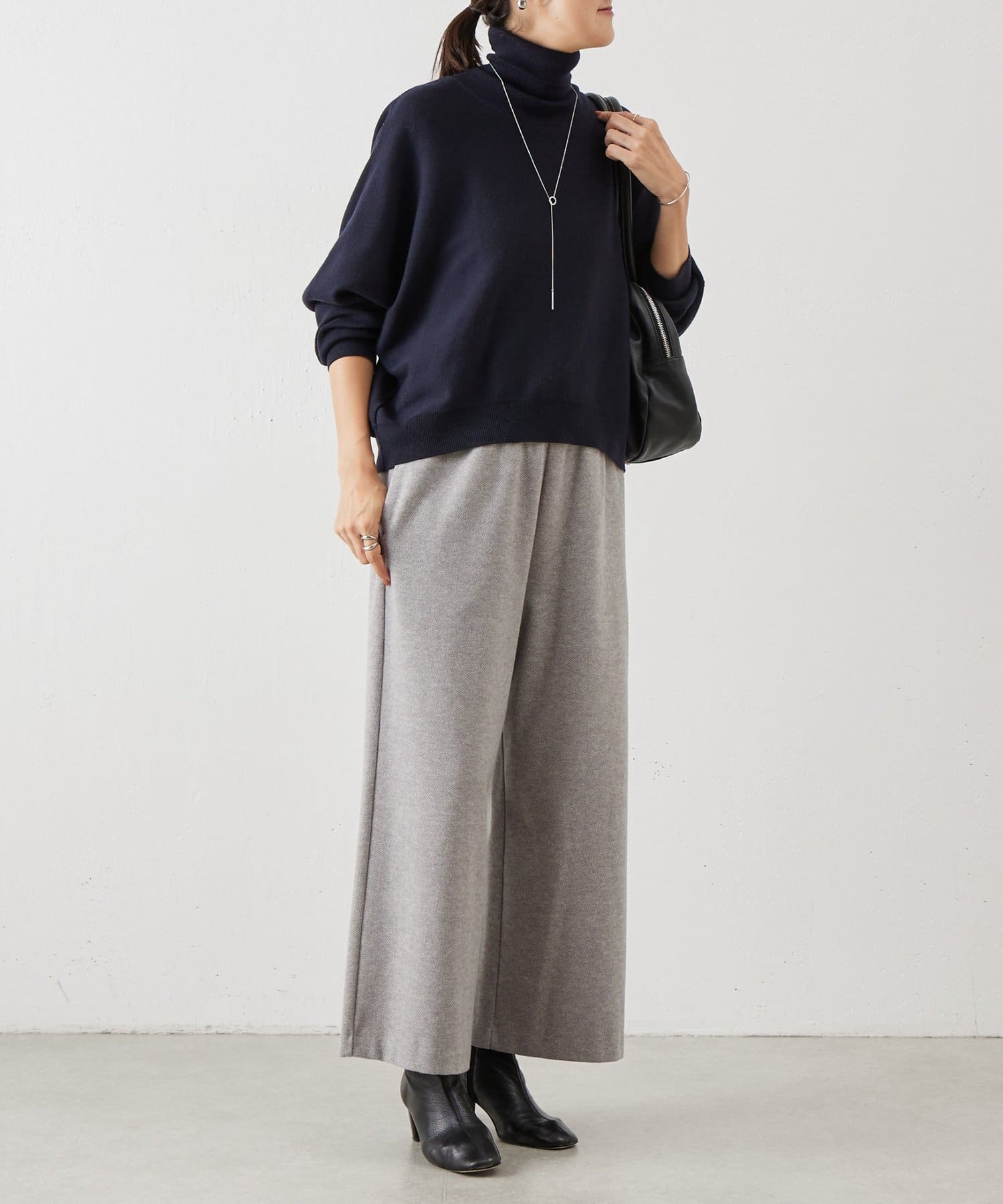 ウールのような表情を持つ、ヘリンボーン柄のワイドパンツ。