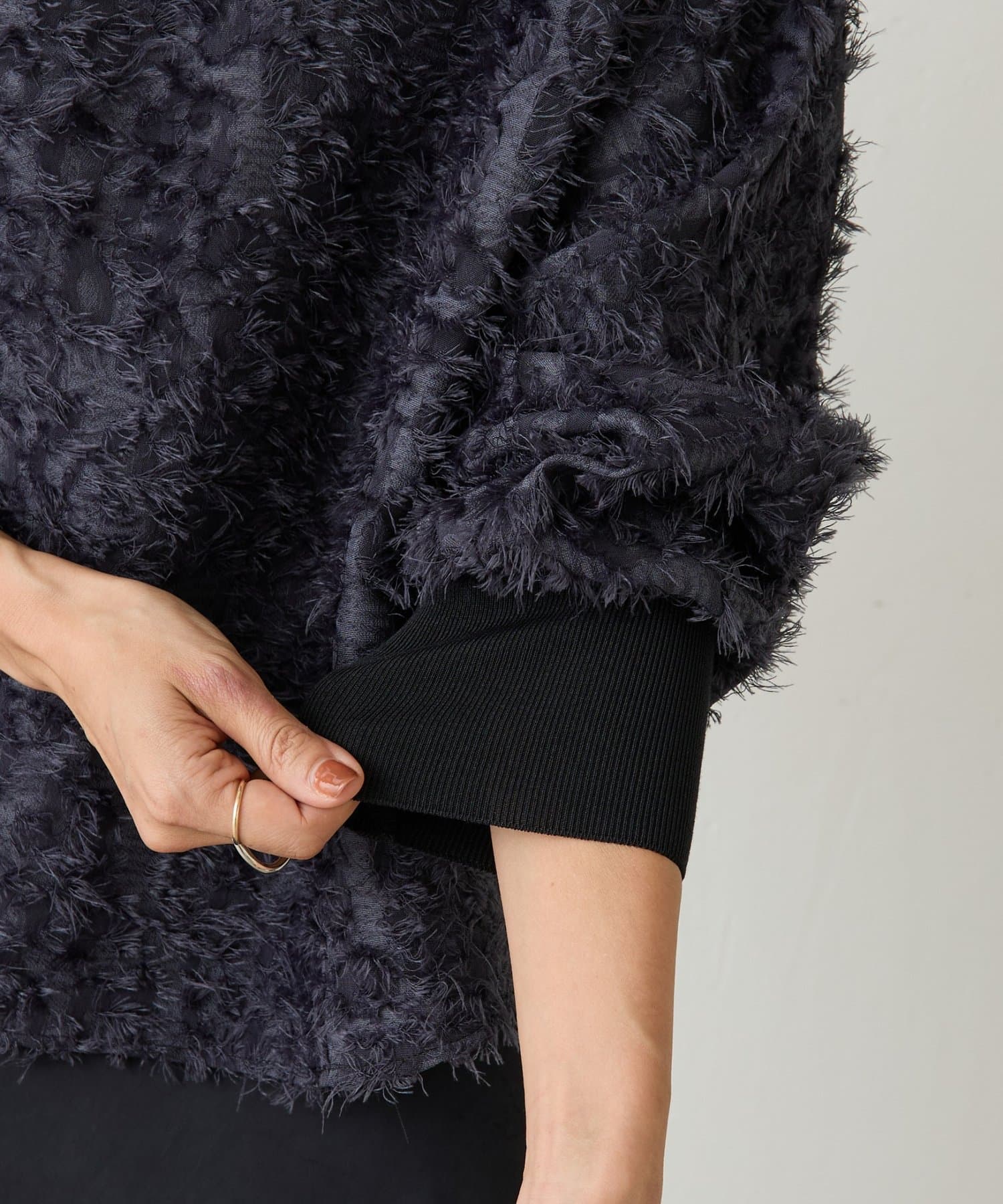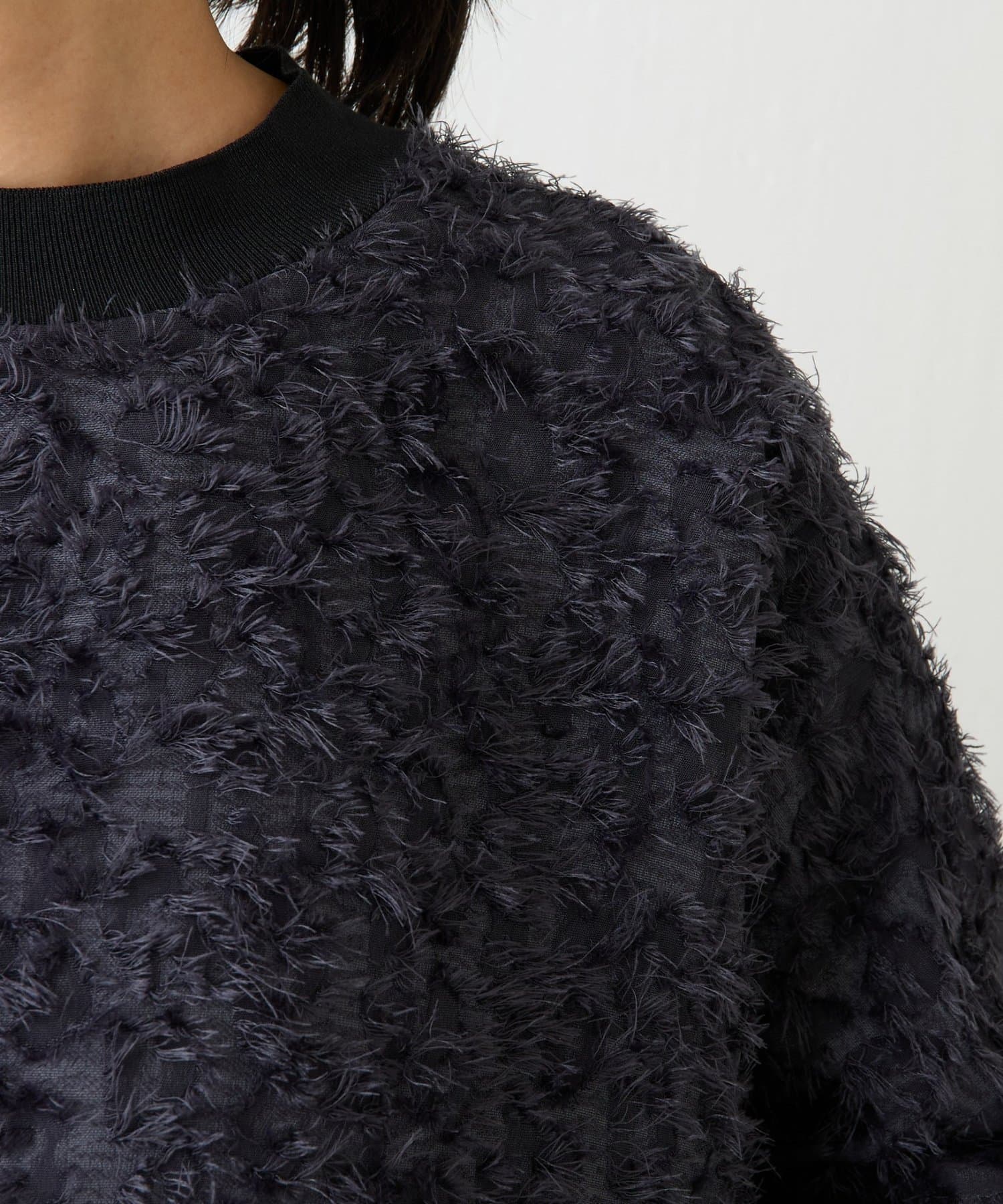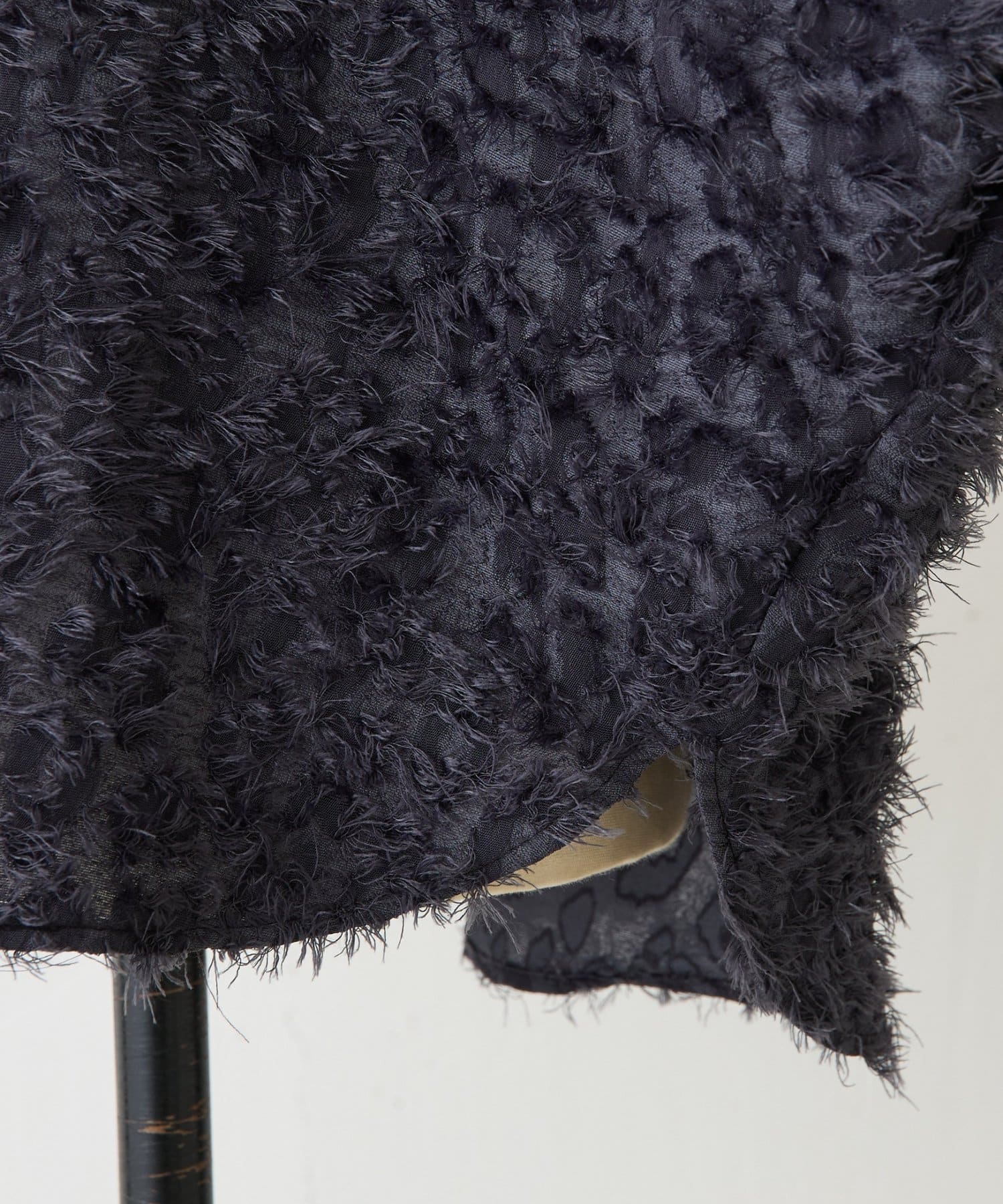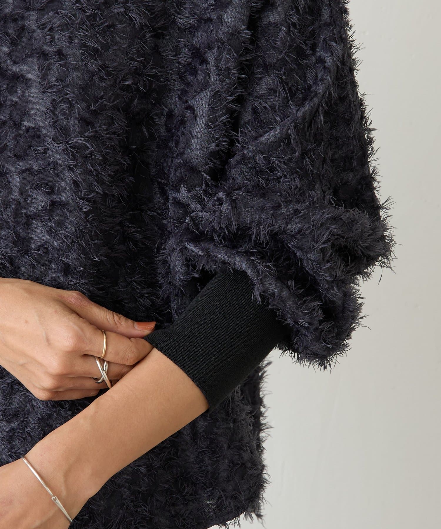 毛足を長めにカットしたシャギー部分は適度な光沢感があり、派手になりすぎずエレガントな印象に。