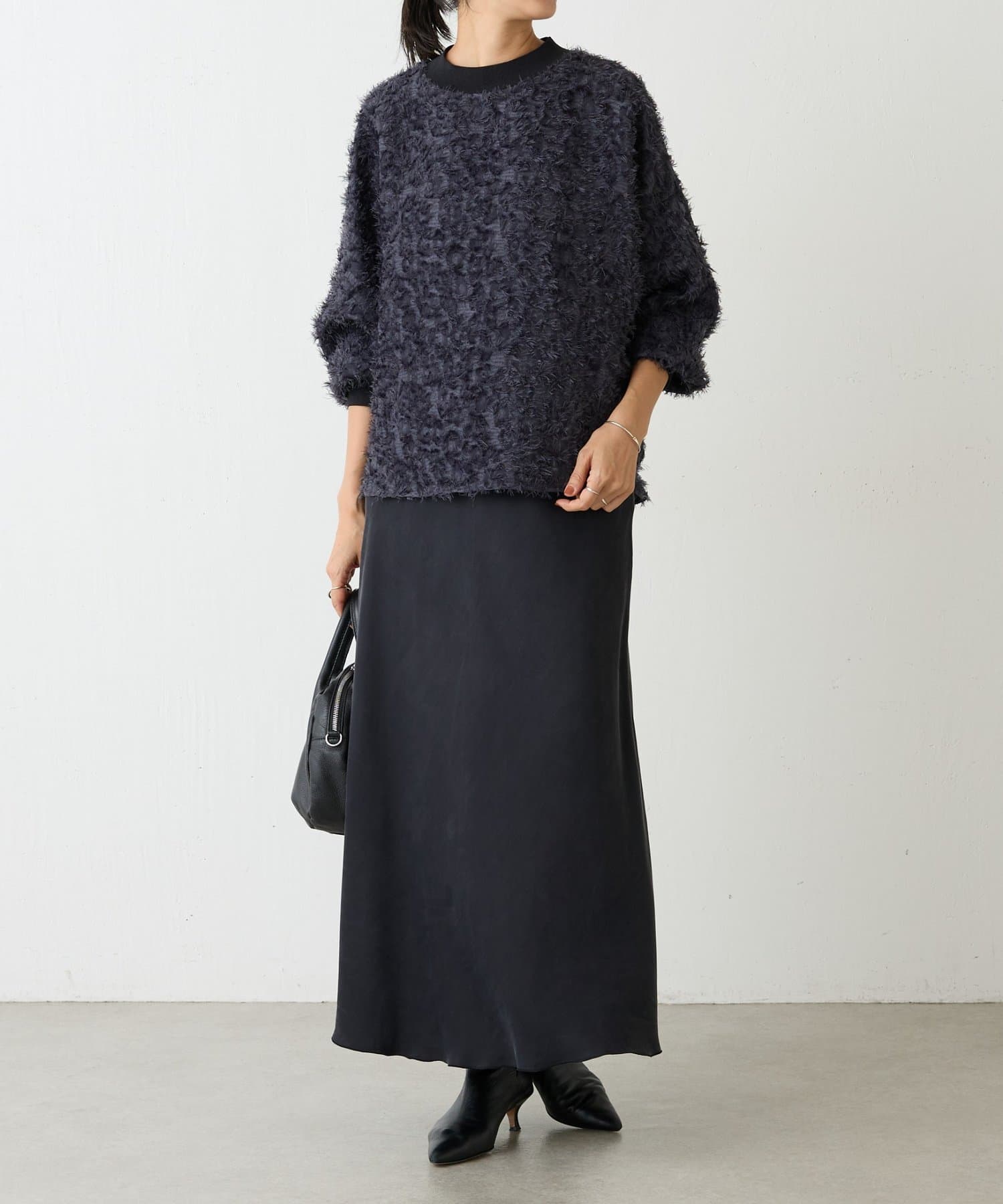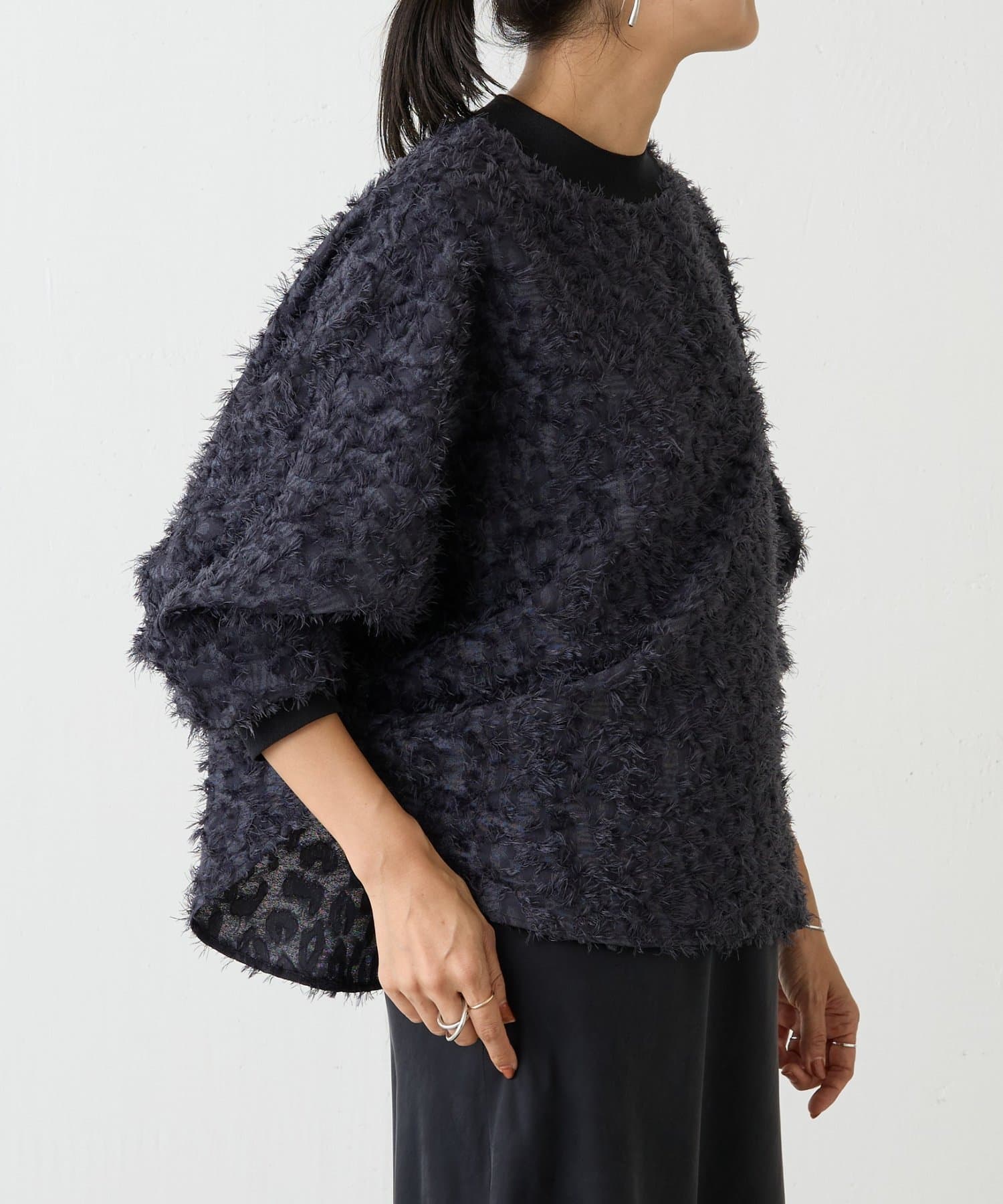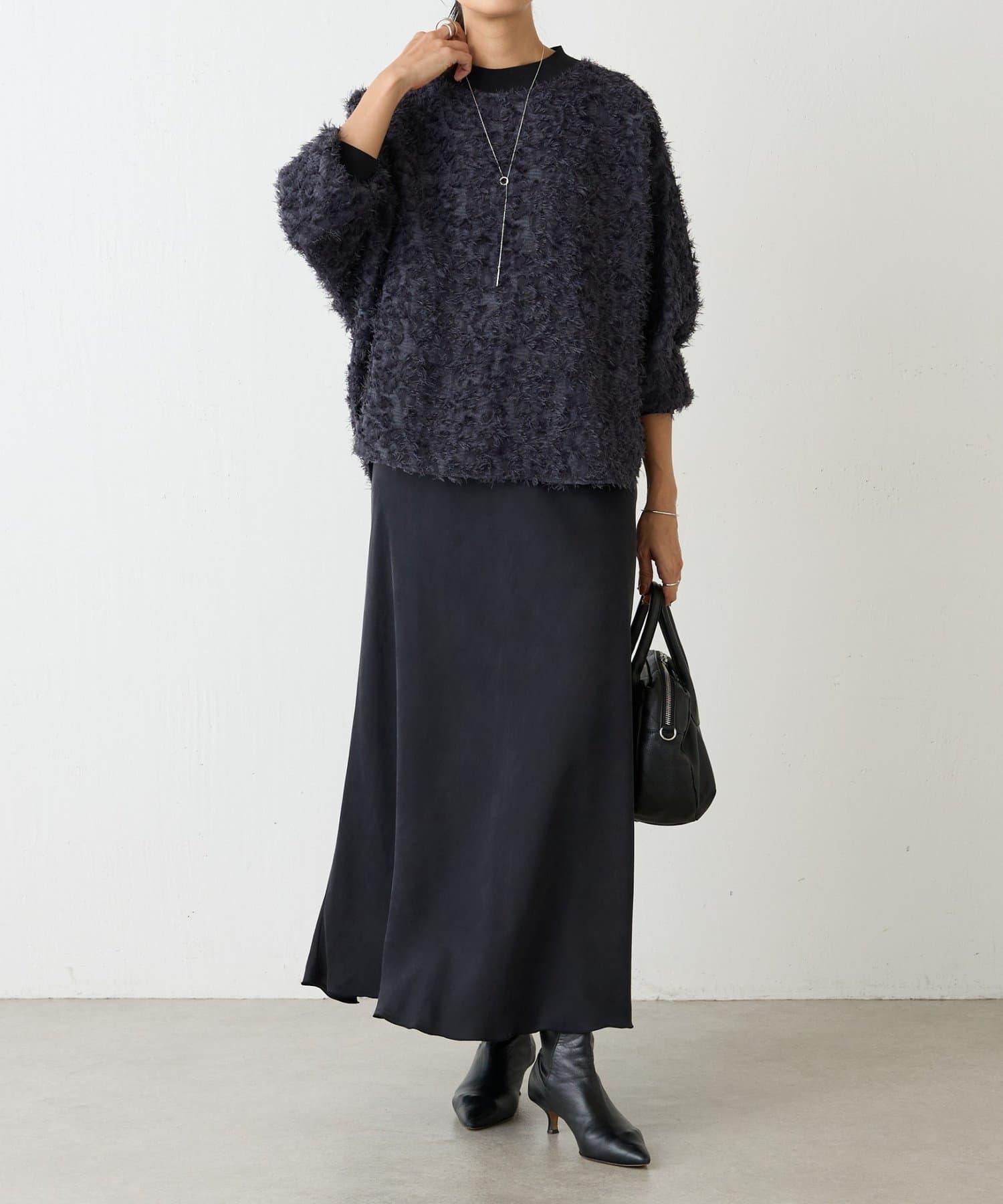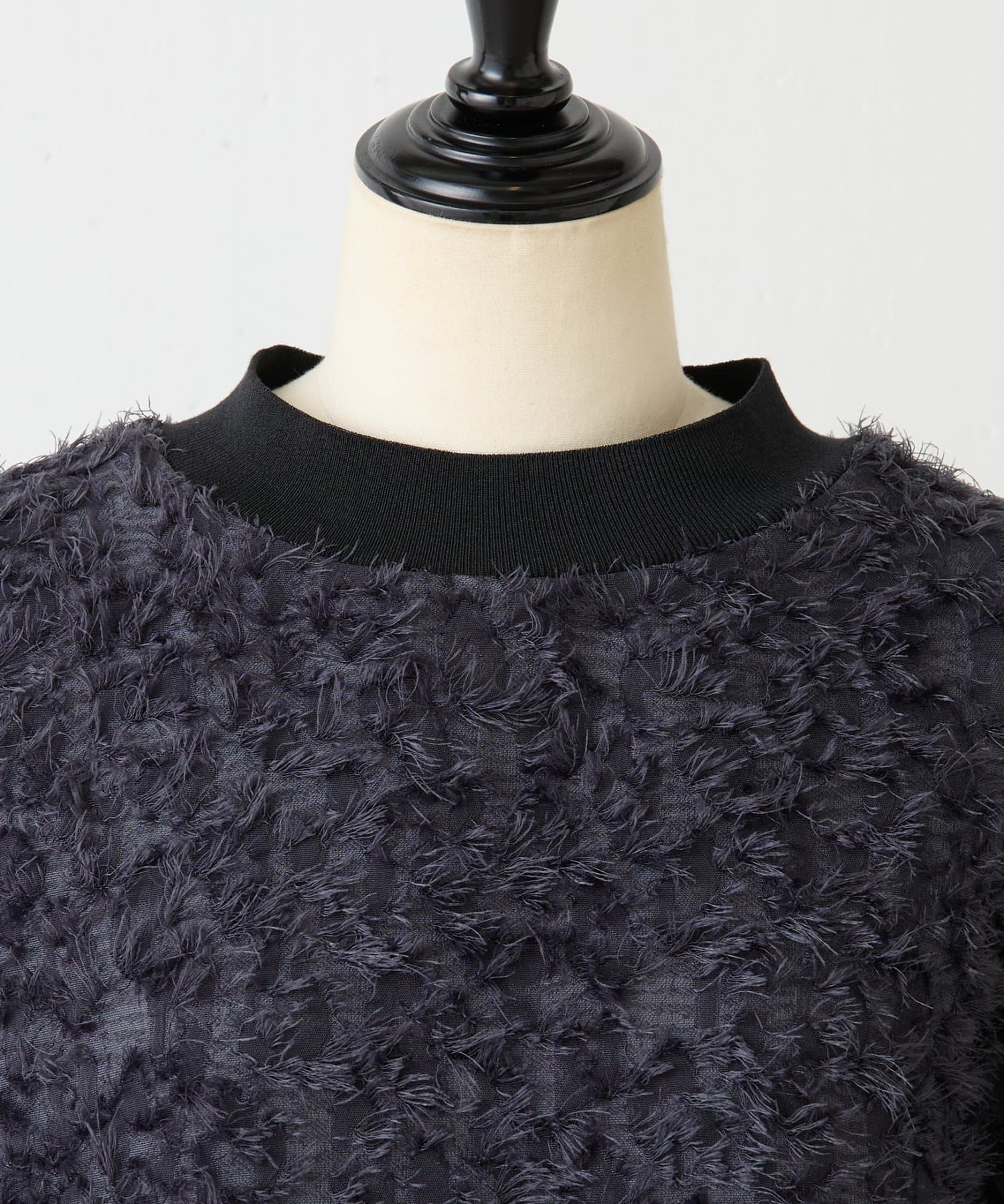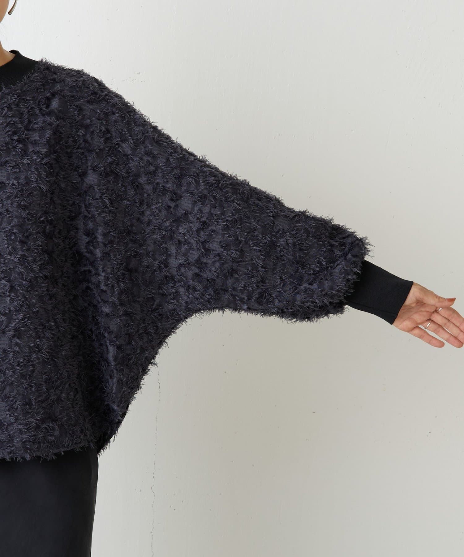 毛足を長めにカットしたシャギー部分は適度な光沢感があり、派手になりすぎずエレガントな印象に。