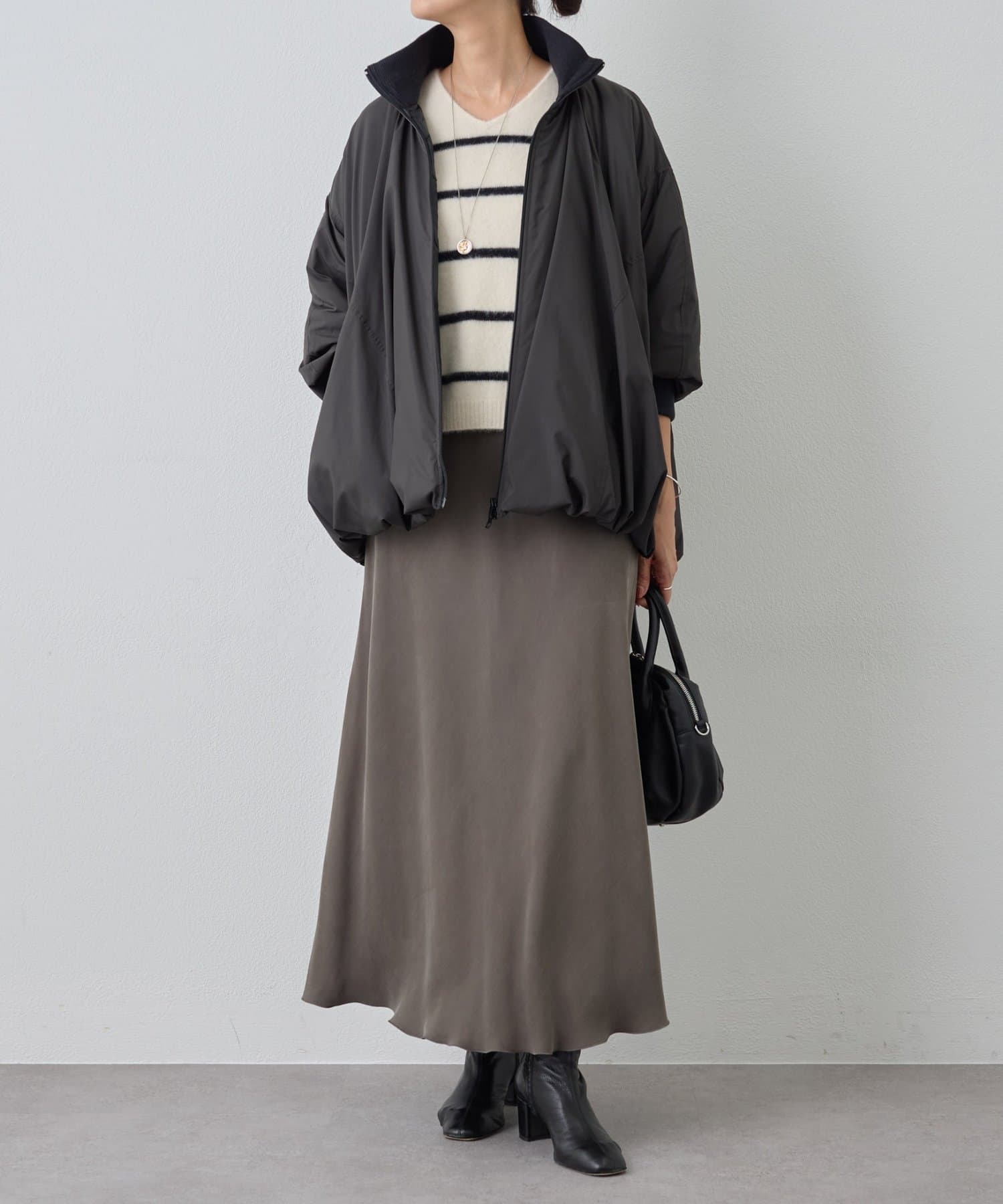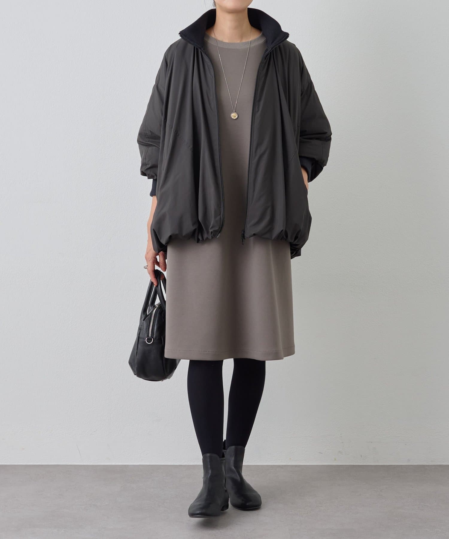 身幅を広めにとっているので、ドルマンスリーブや厚手のニットの上からでも羽織ることが可能。