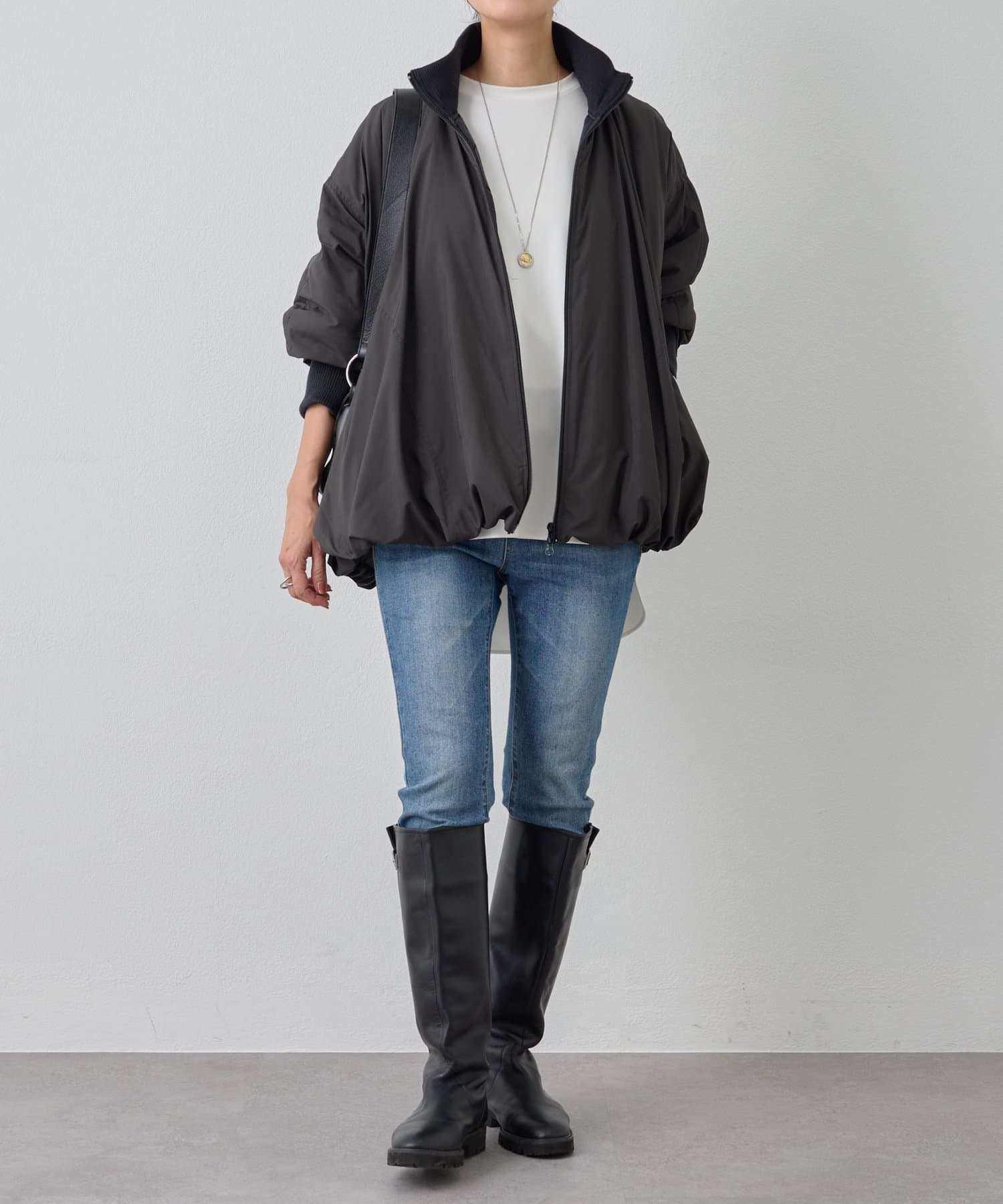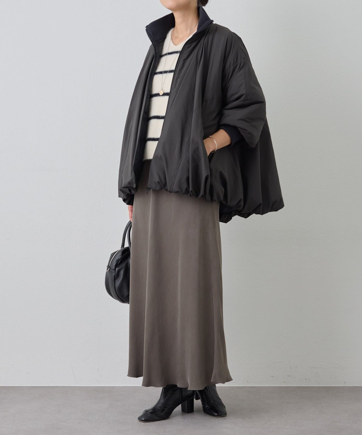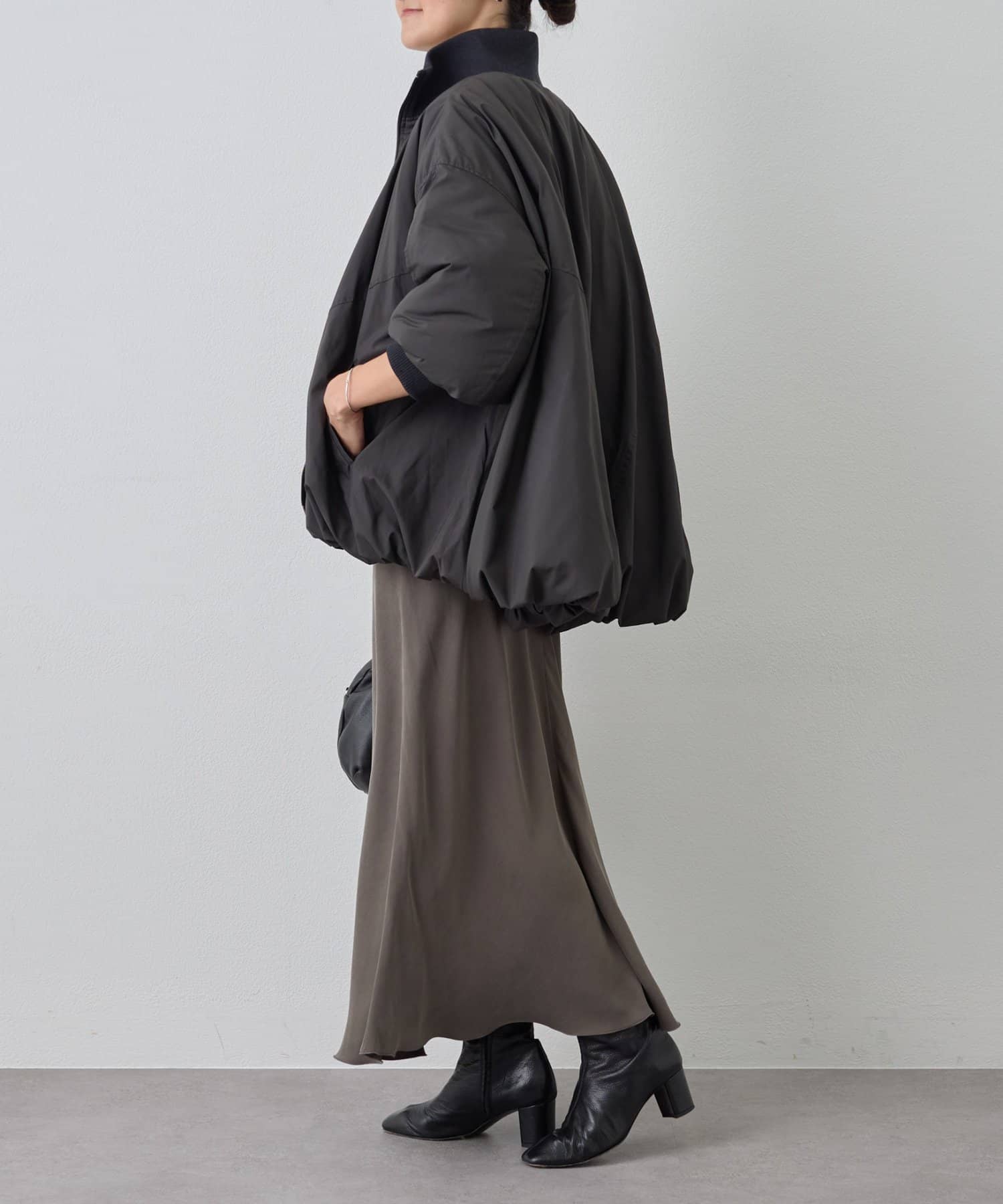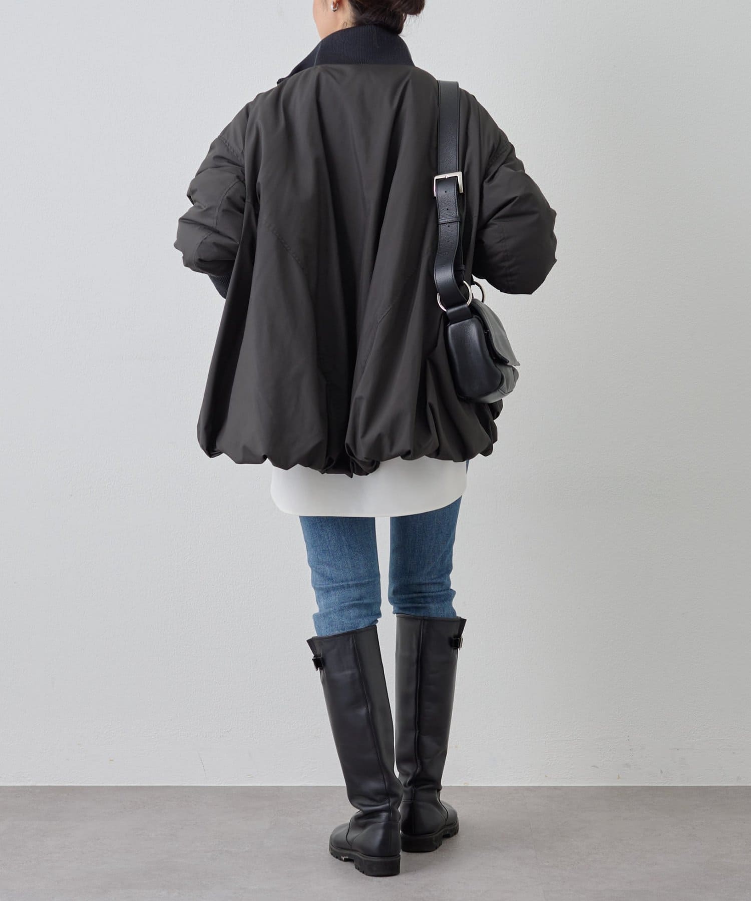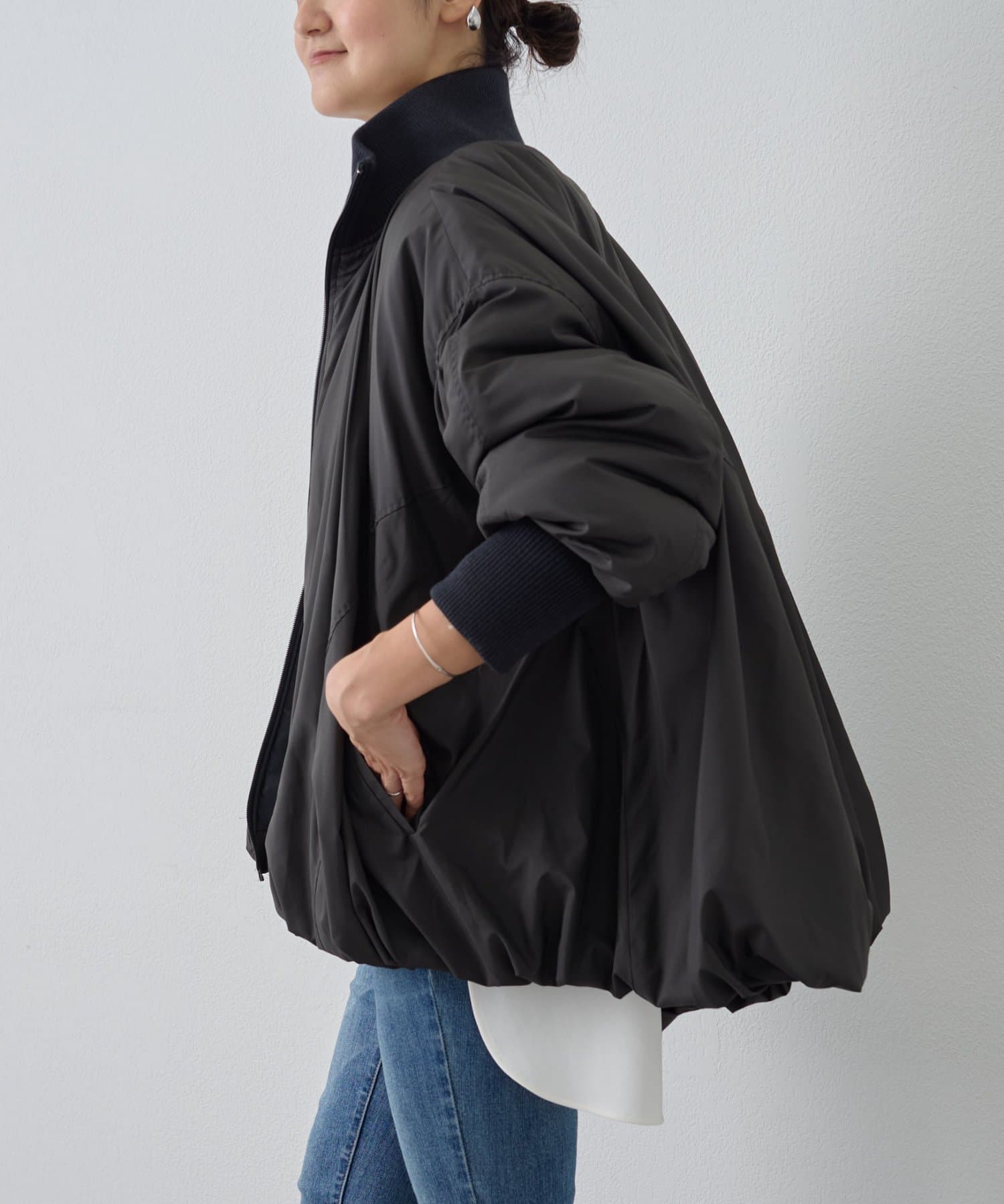 たっぷりとったギャザーに加え中綿が入るので、ふんわりボリューム感のあるシルエットが魅力です。