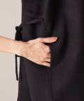 共布のリボンが後ろウエスト部分に通っており、前で結んだり、絞ってシルエットを替えたりすることも可能。