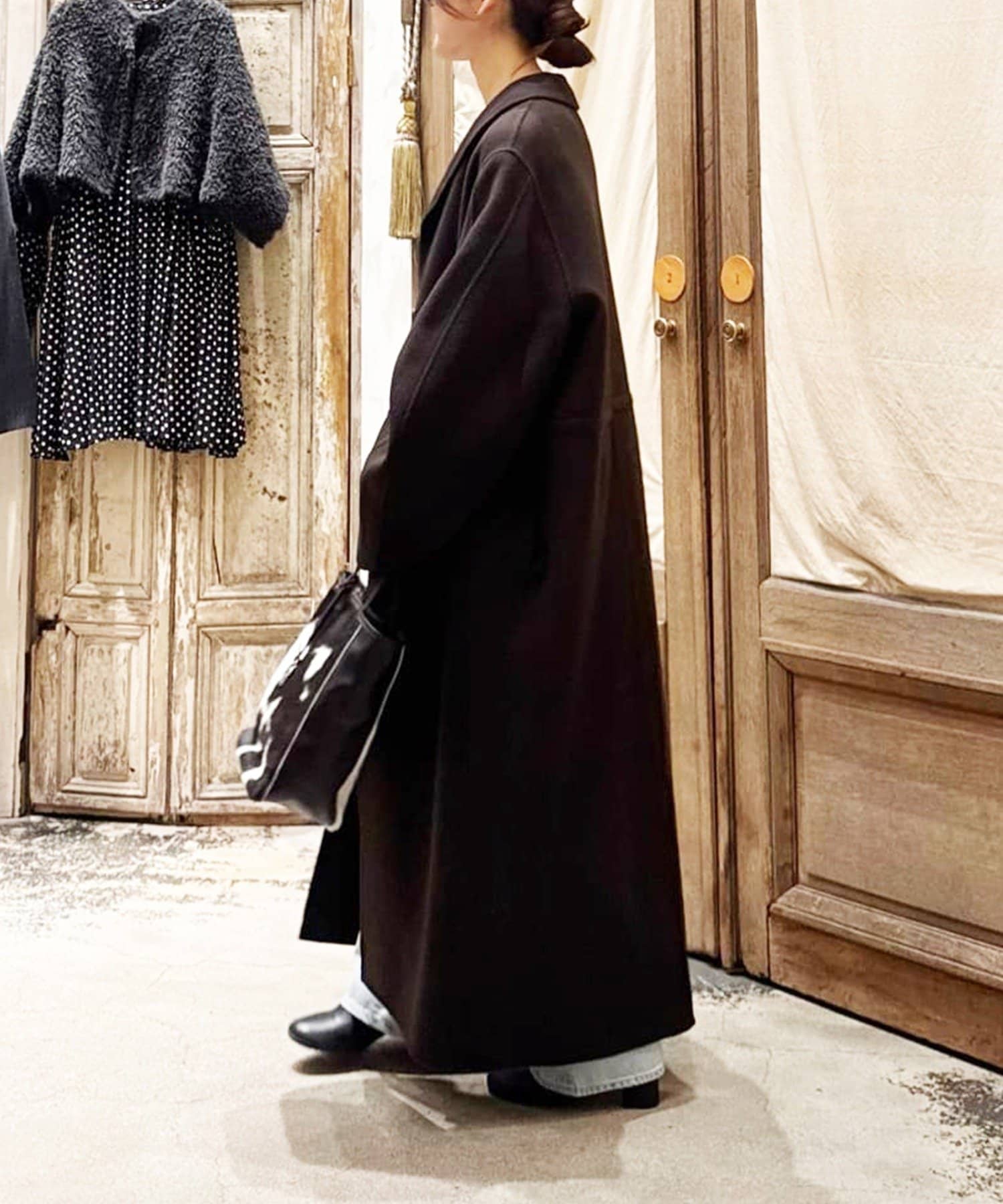 韓国ブランド「RRACE」のショールカラーロングコート。