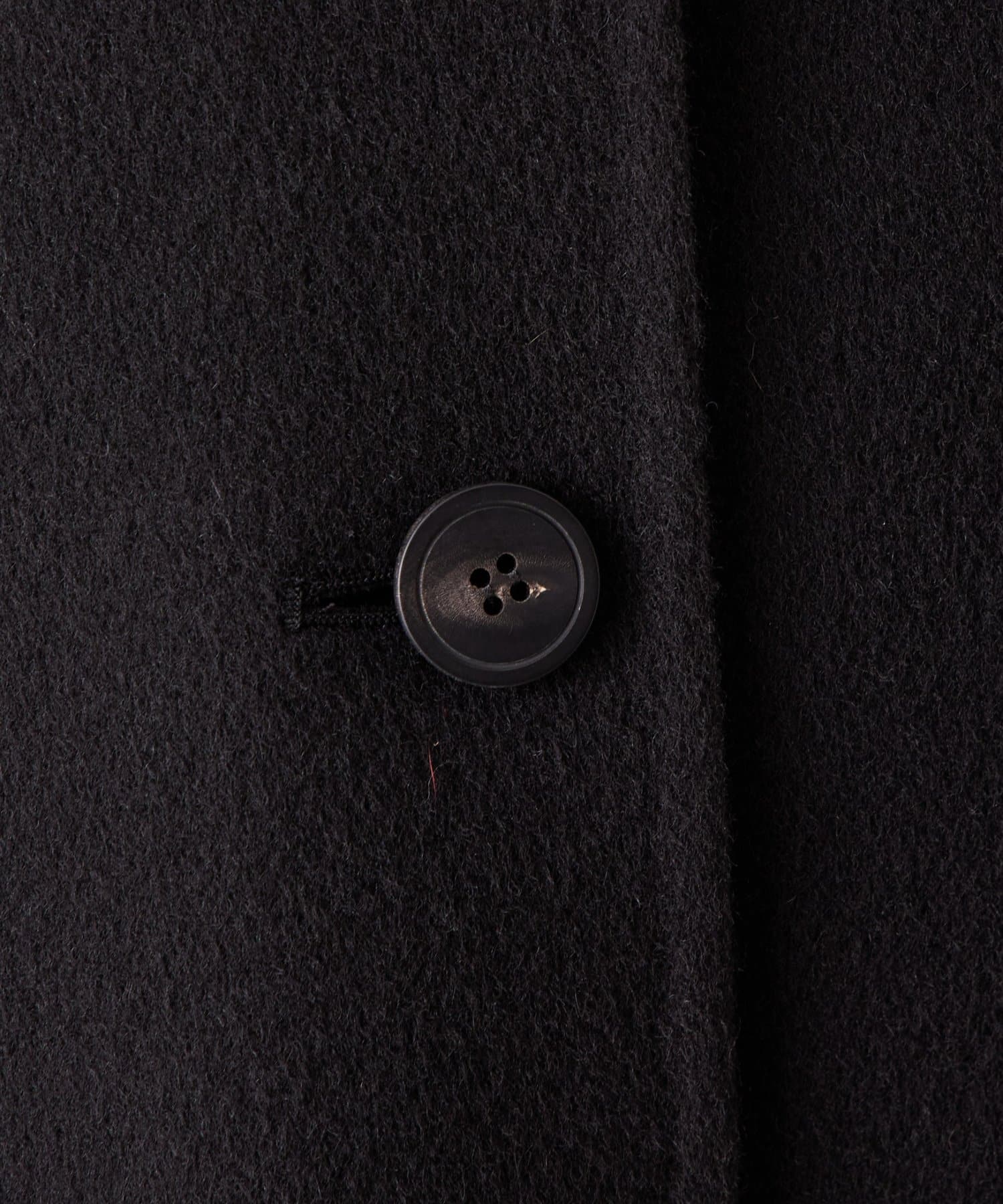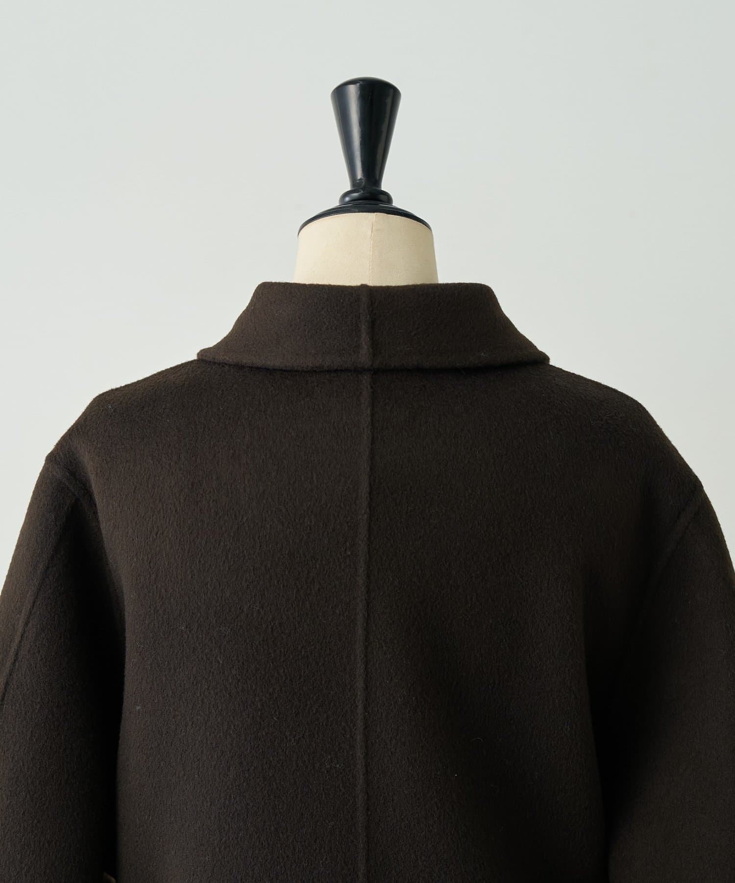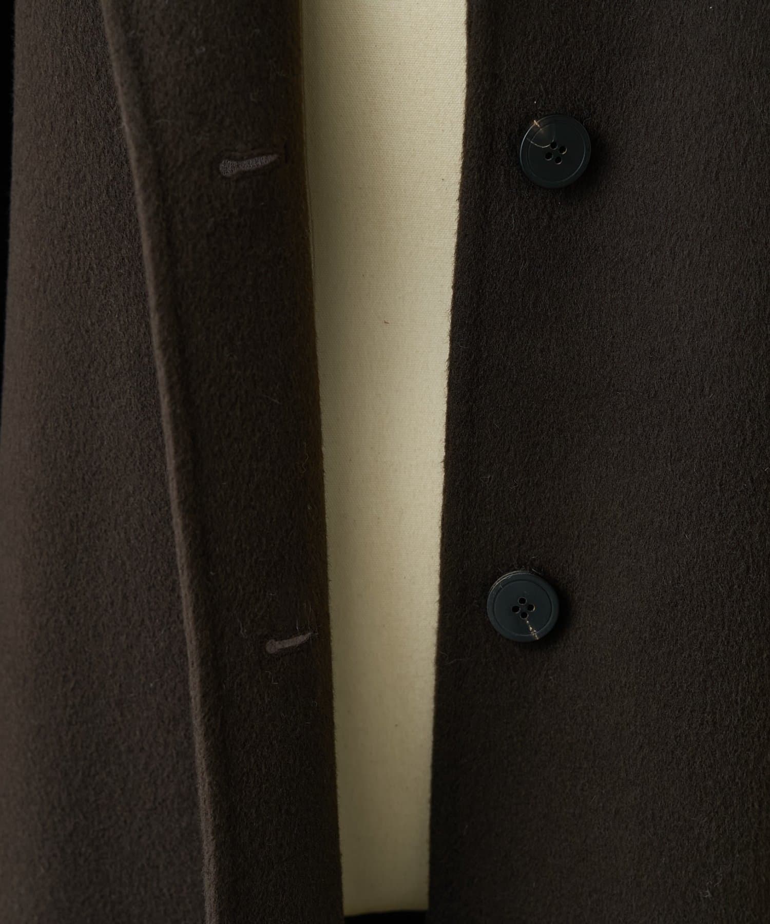 上品なウール素材のリバーコートで裏地が無いので軽い仕上がりです。