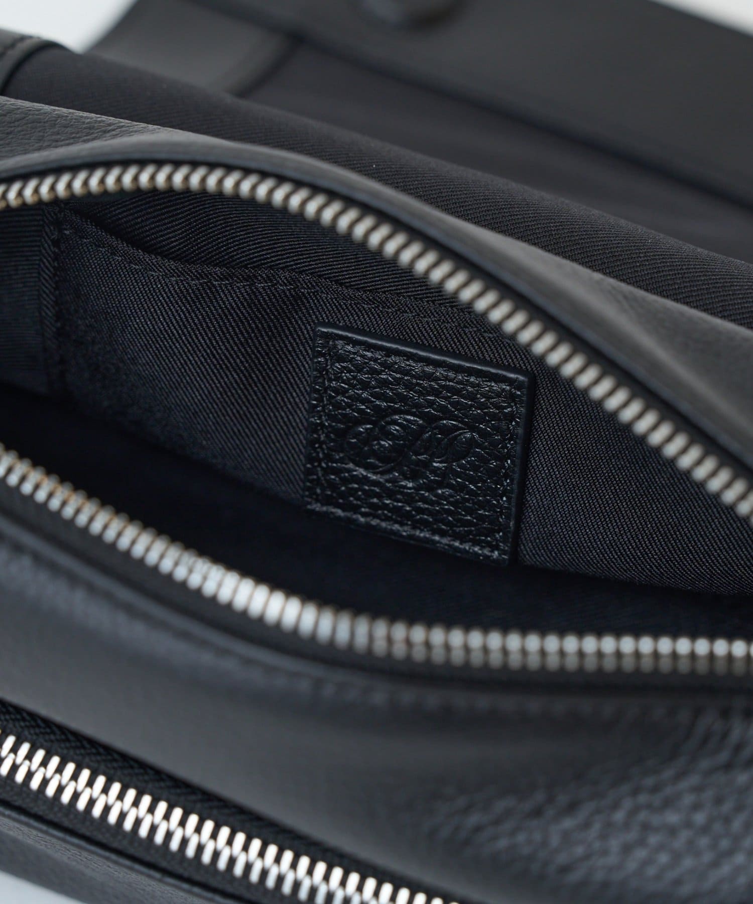 側面やショルダー裏をあえて合皮にすることで、色移りや汚れに強い仕様にしています。