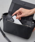 フラップ部分にはスリットがあり、スマートフォンやパスケースなどすぐ取り出しやすいものの出し入れに便利◎。