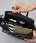 本体には肌なじみの良い上質感が魅力のカウレザーを使用、裏地にはポリエステル素材を採用し軽やかさと耐久性を両立。