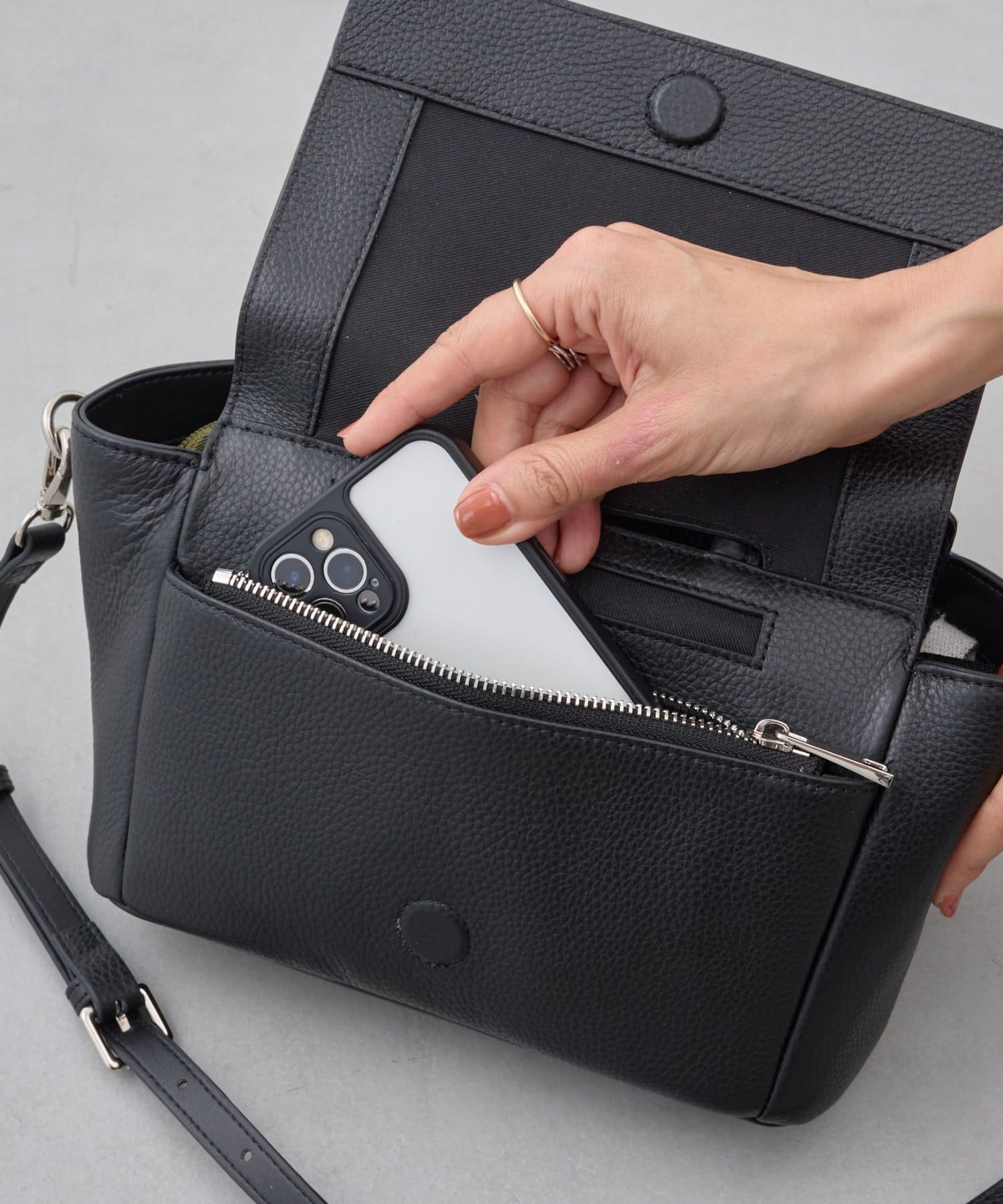 クラシカルなボストン型にフラップデザインを合わせることで、きちんと感のある佇まいに仕上げました。