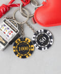 そこに、遊び心のあるスロットと裏表で表情が変わるメダルチャームを組み合わせて仕上げました。