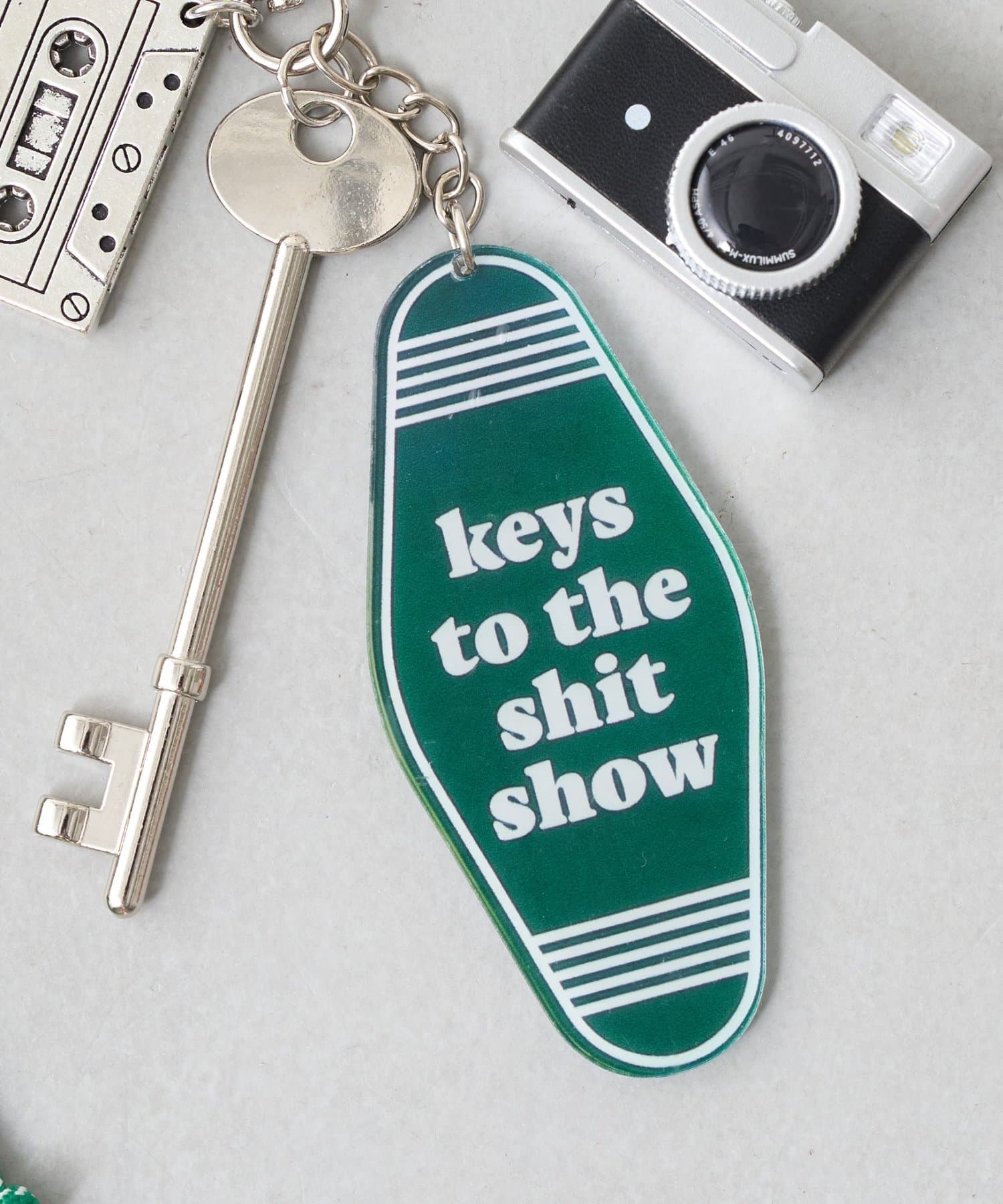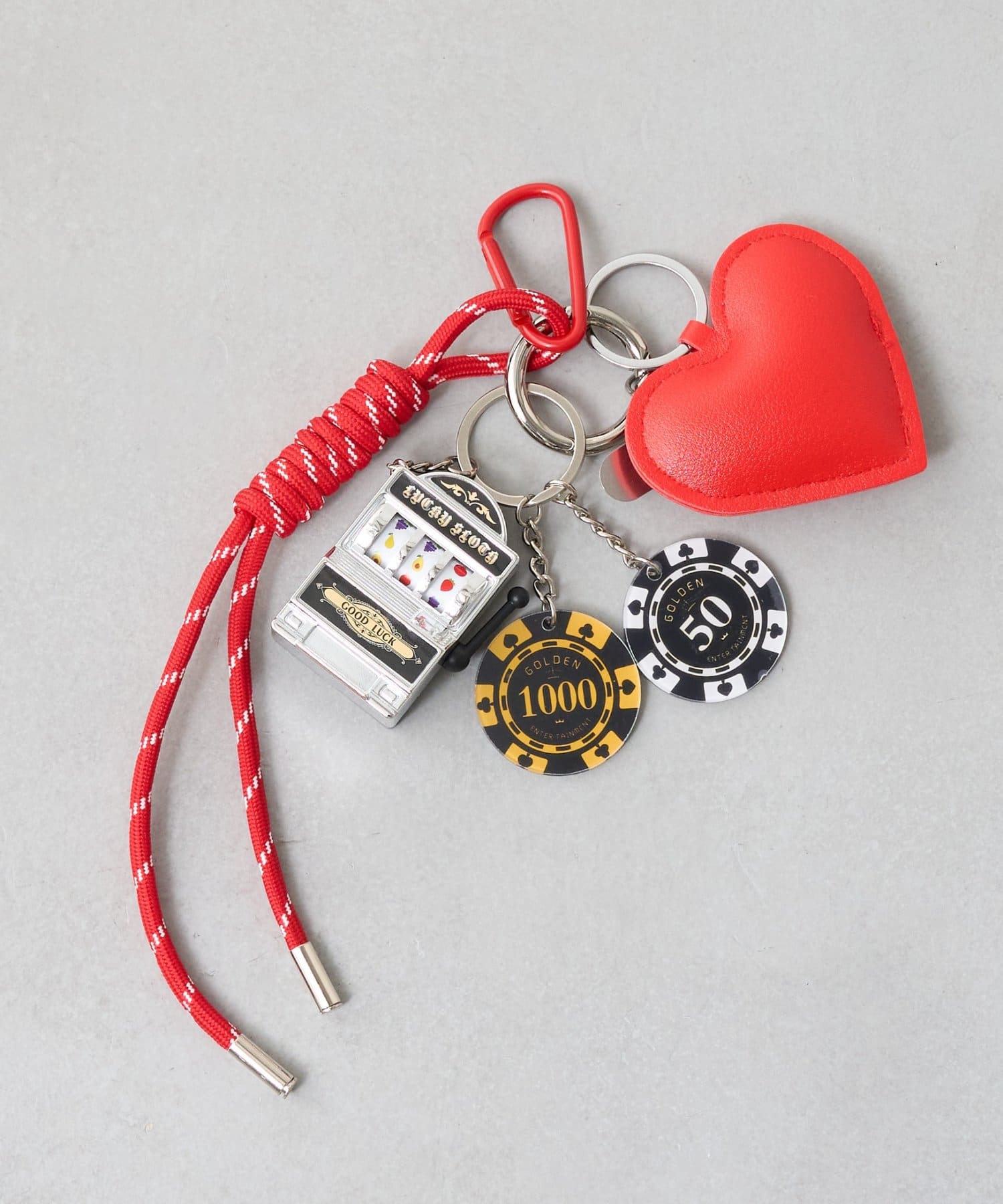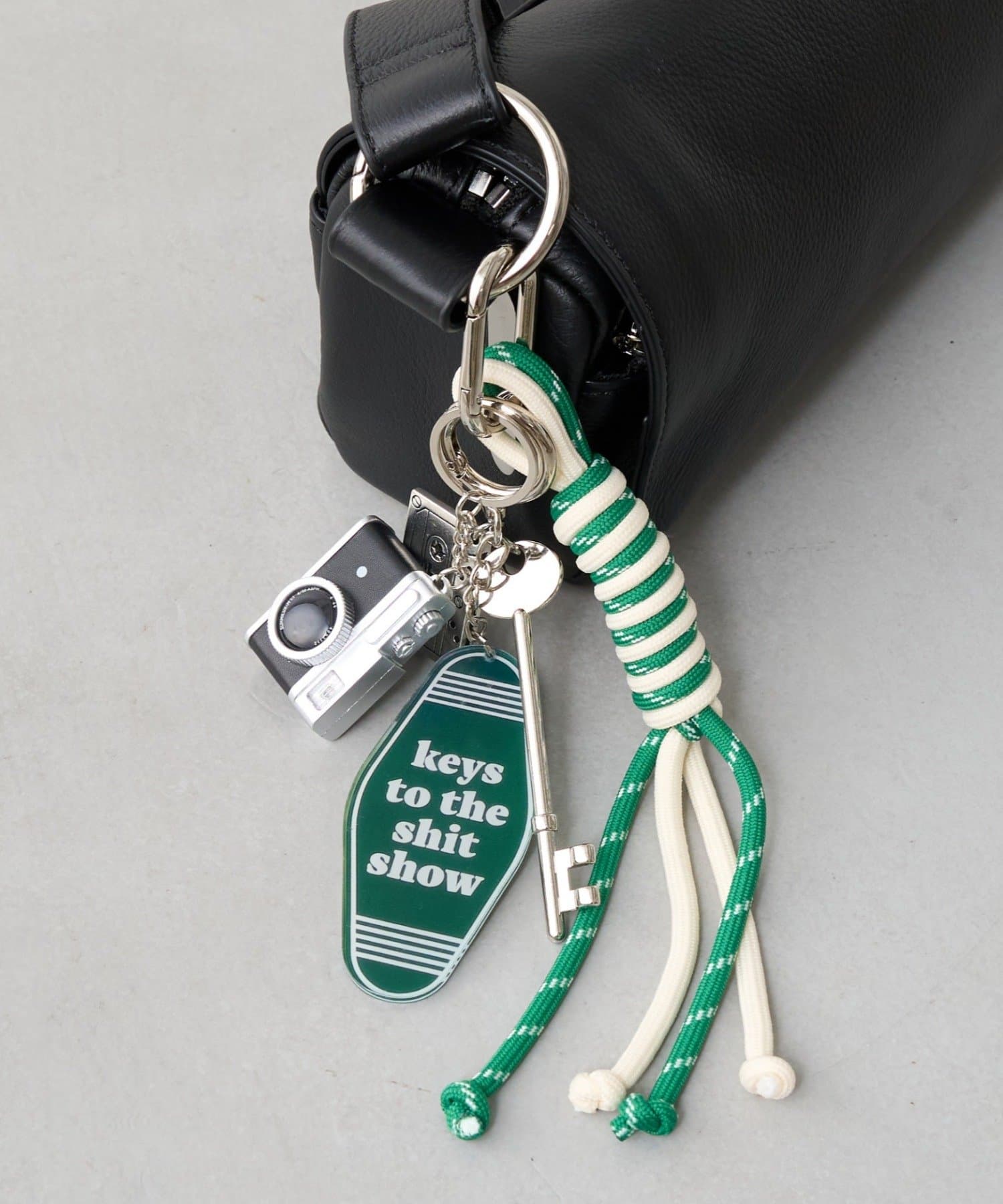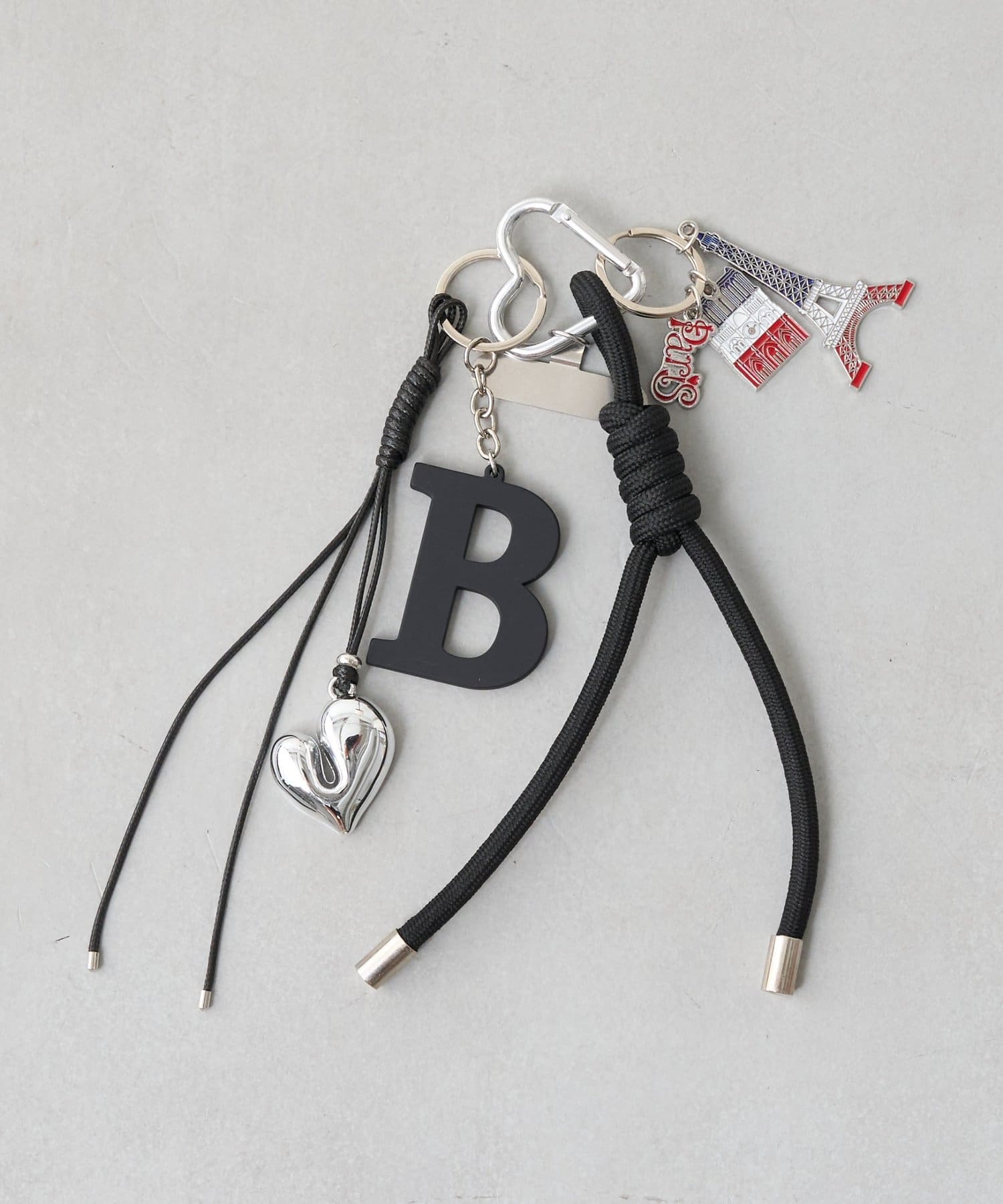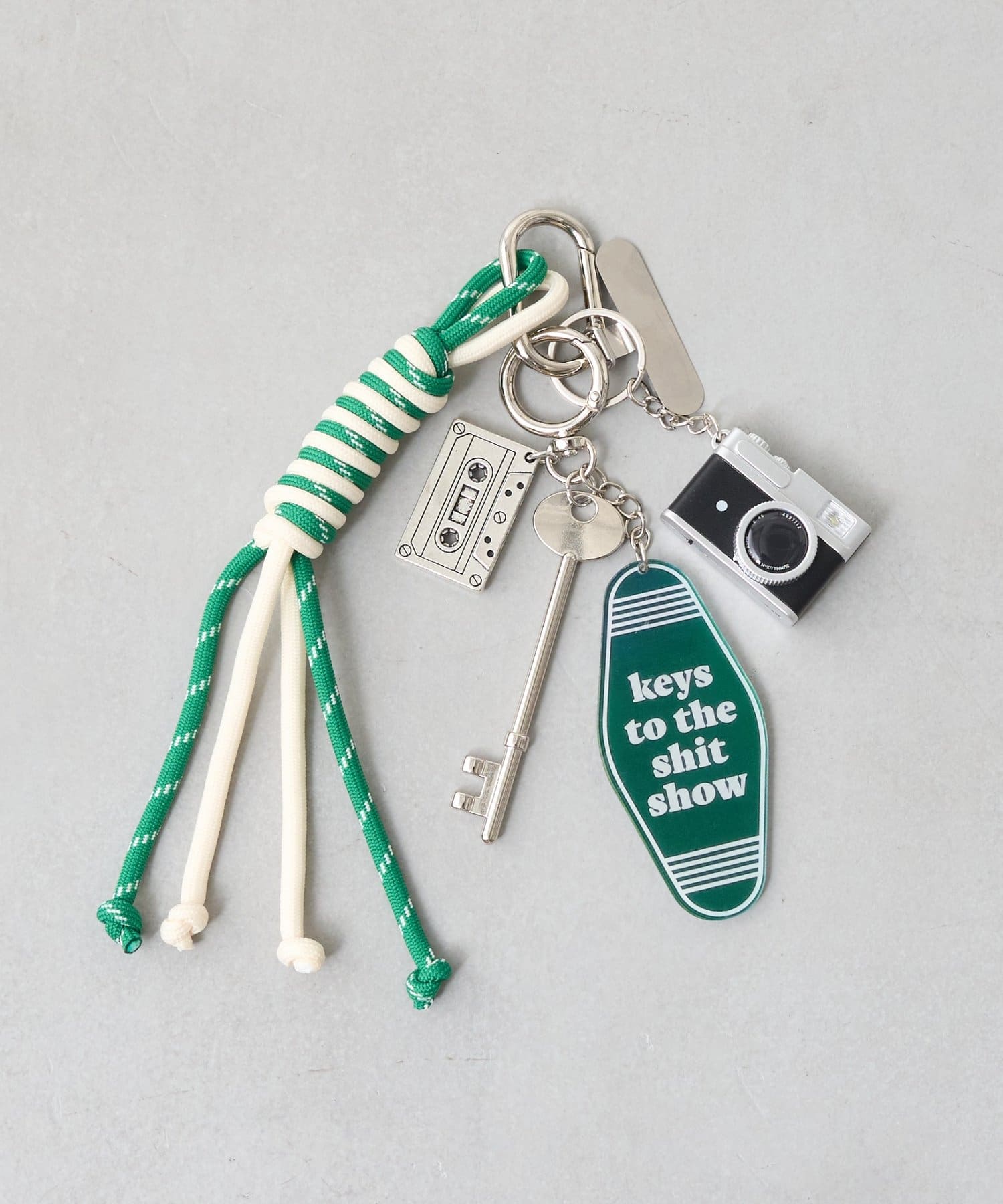 カメラ×カセット、エッフェル塔×ノートルダム大聖堂など、遊び心たっぷりののチャームを組み合わせたキーホルダー。