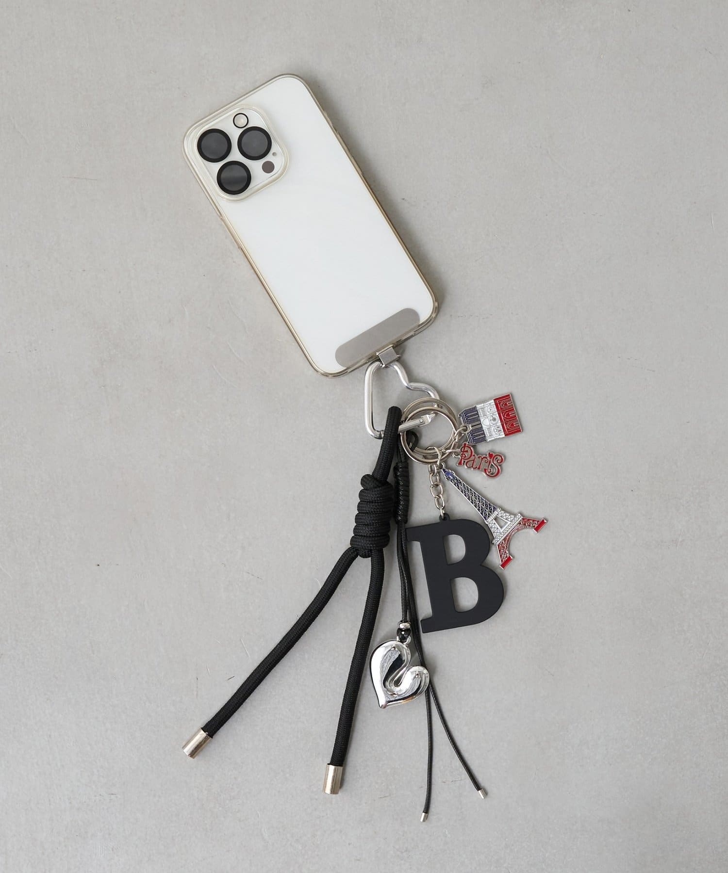 Bチャーム4.5×5.5cm/太紐長さ19.5cm/細紐長さ19.5cm/ハート3.3×3.5cm/エッフェル塔3.3×5.8cm/ノートルダム大聖堂3×3cm/Paris2.3×1.3cm/全長25cm/重さ:60g