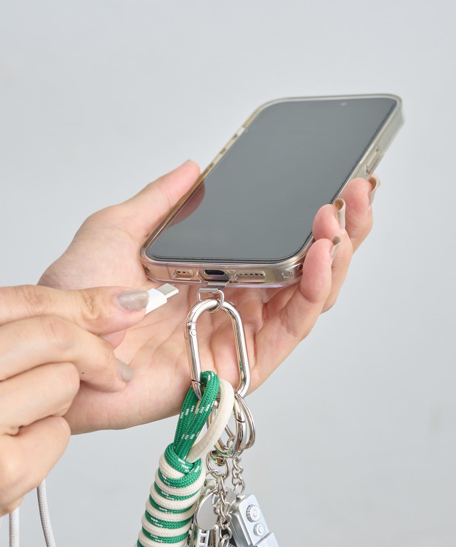 ハート/スロット/網み紐/丸プレート/スマホホルダー/カラビナ