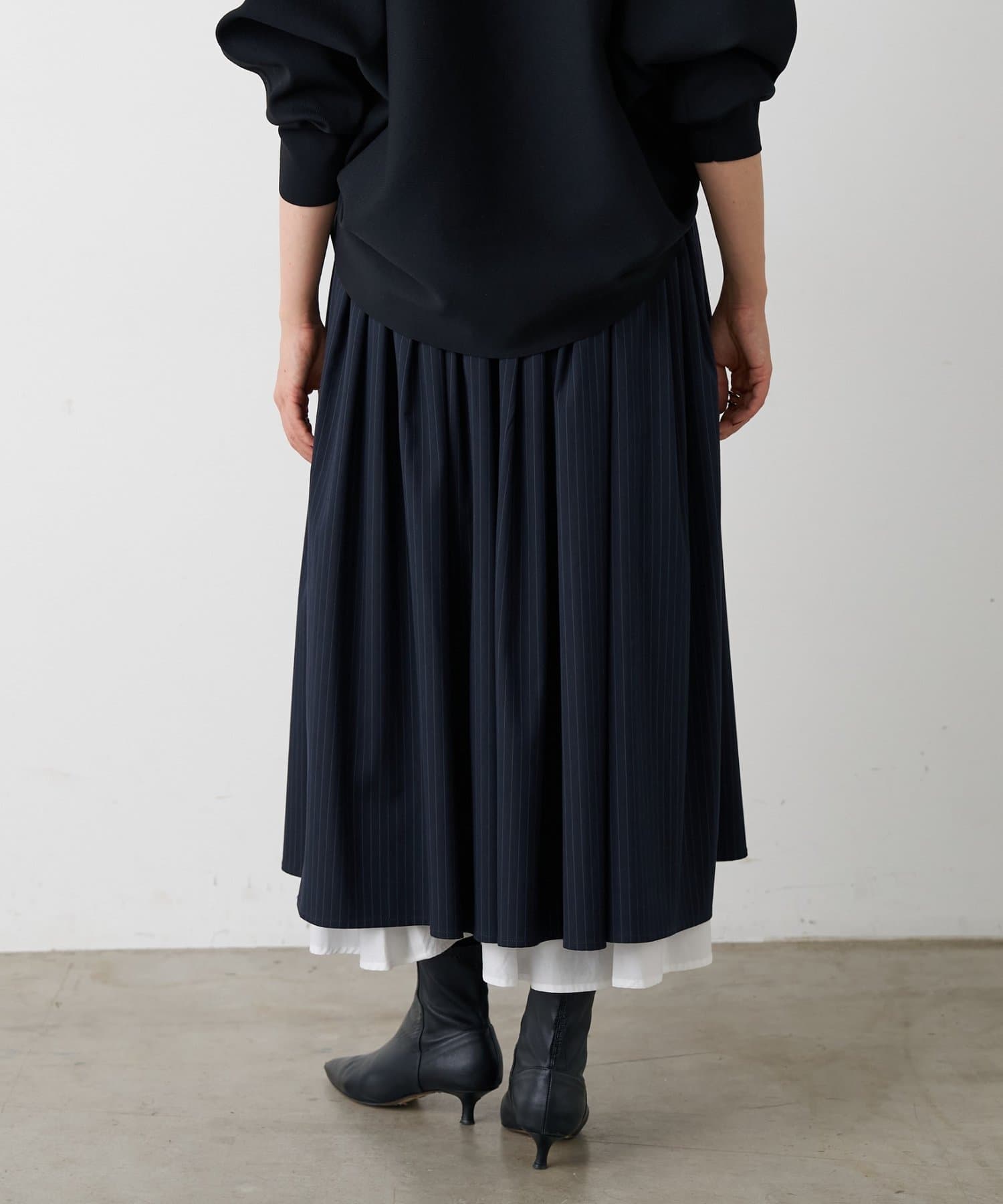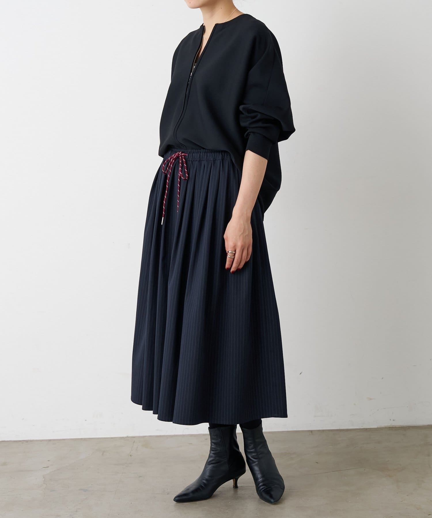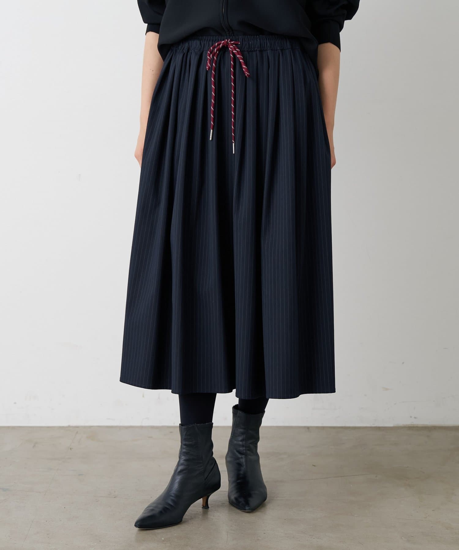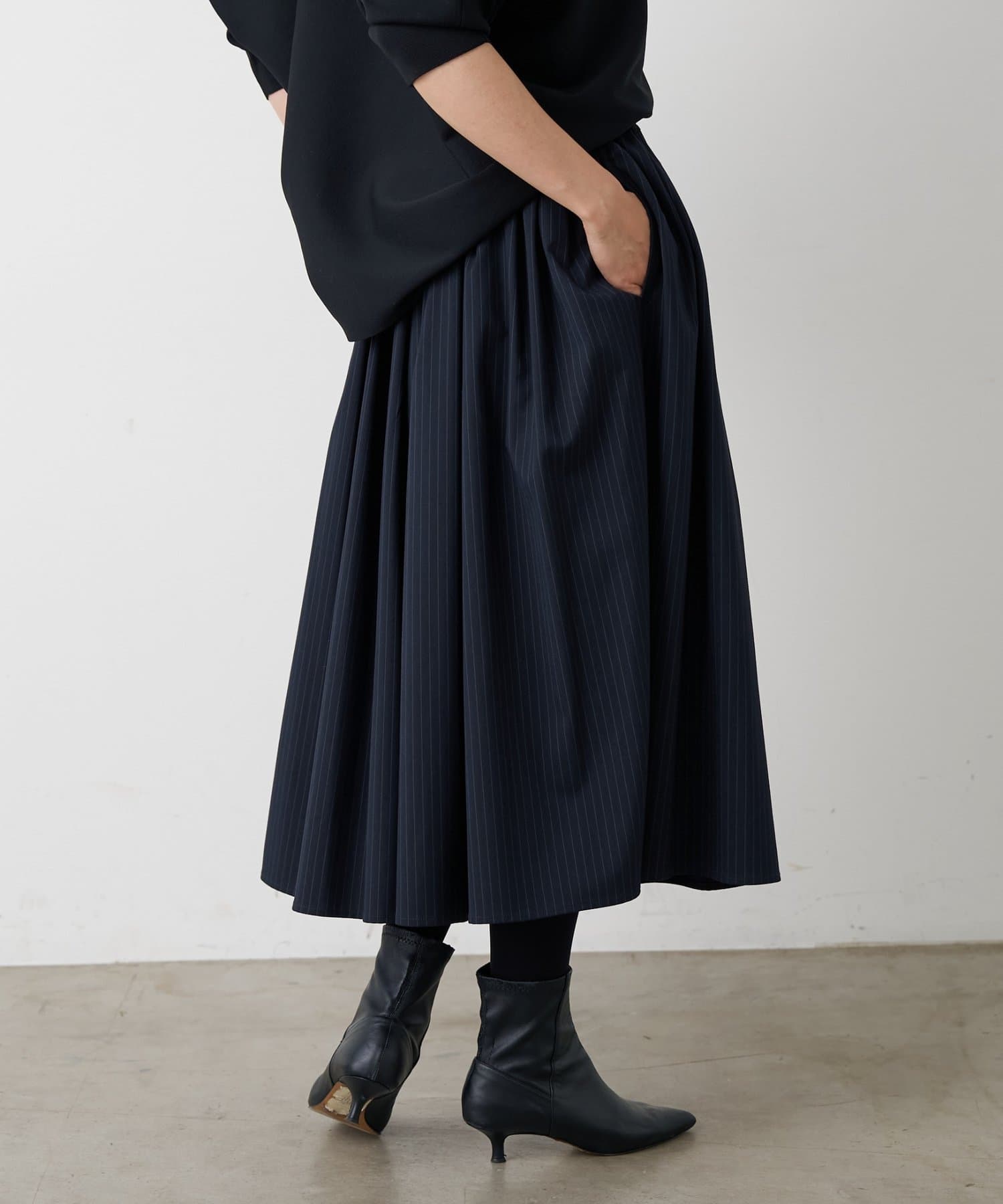 細かなペンシルストライプ生地で仕立てた、上品なギャザースカート。