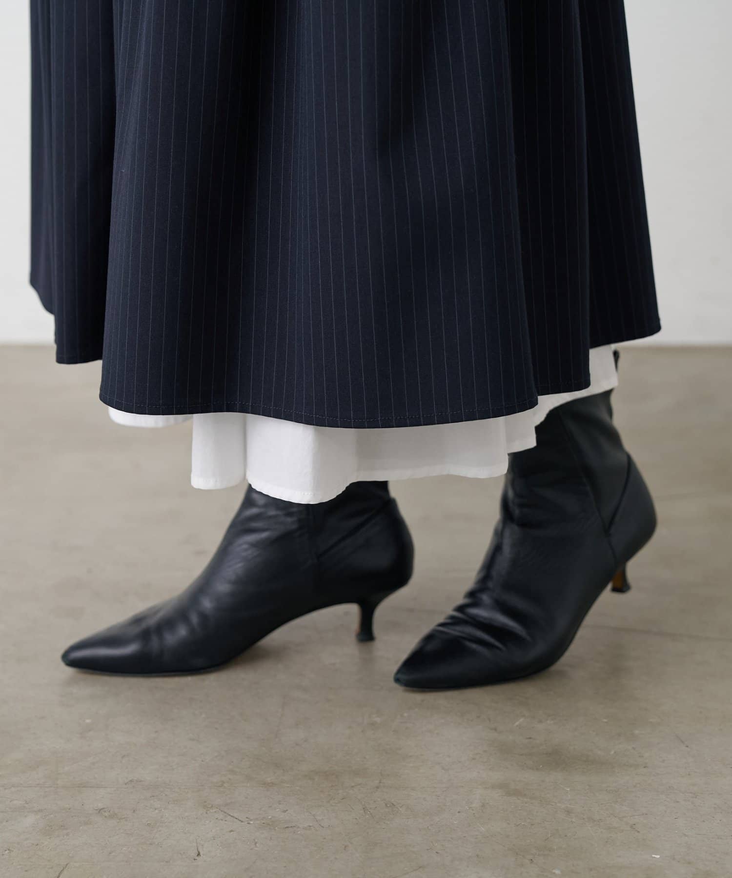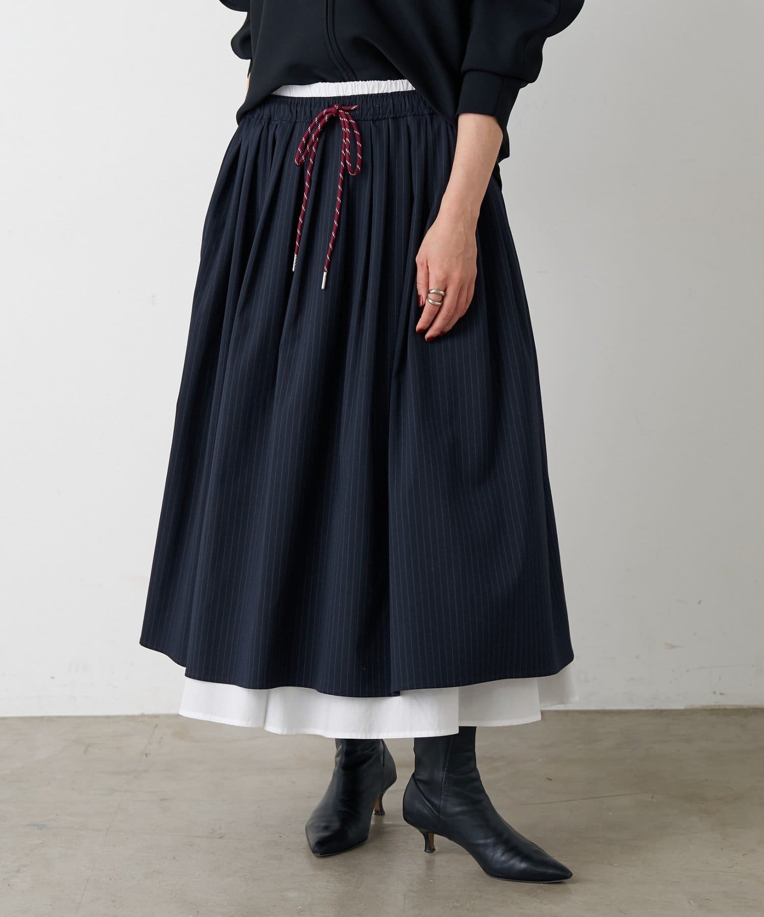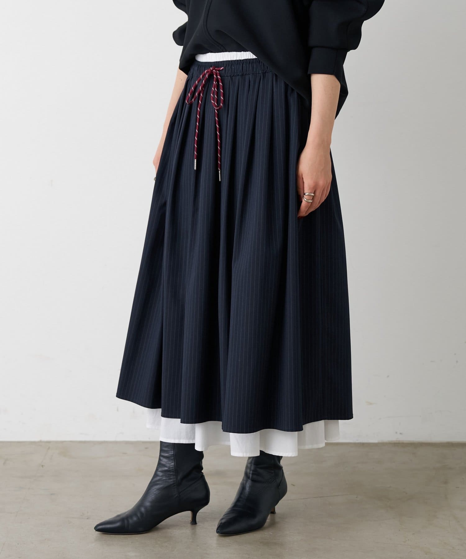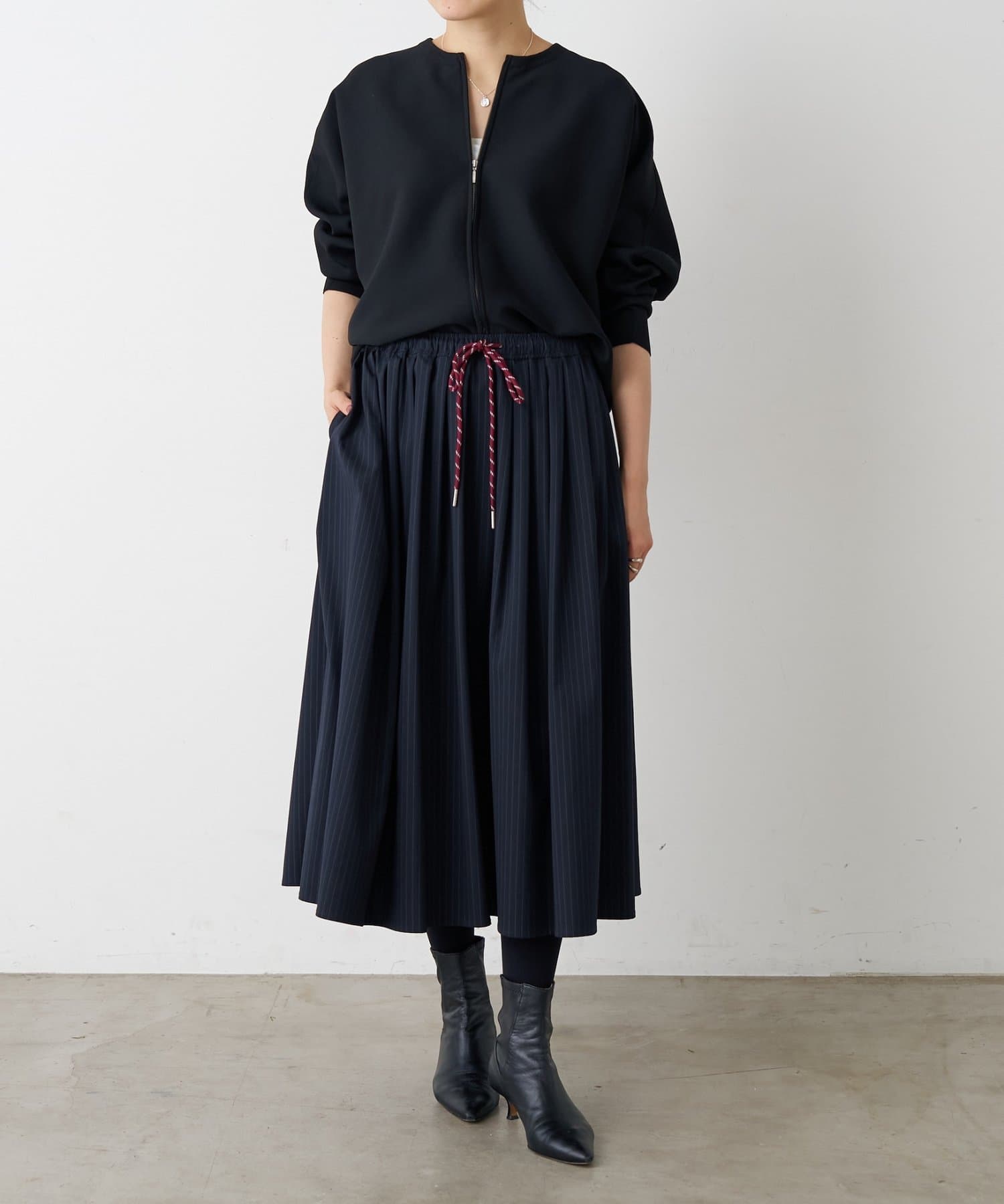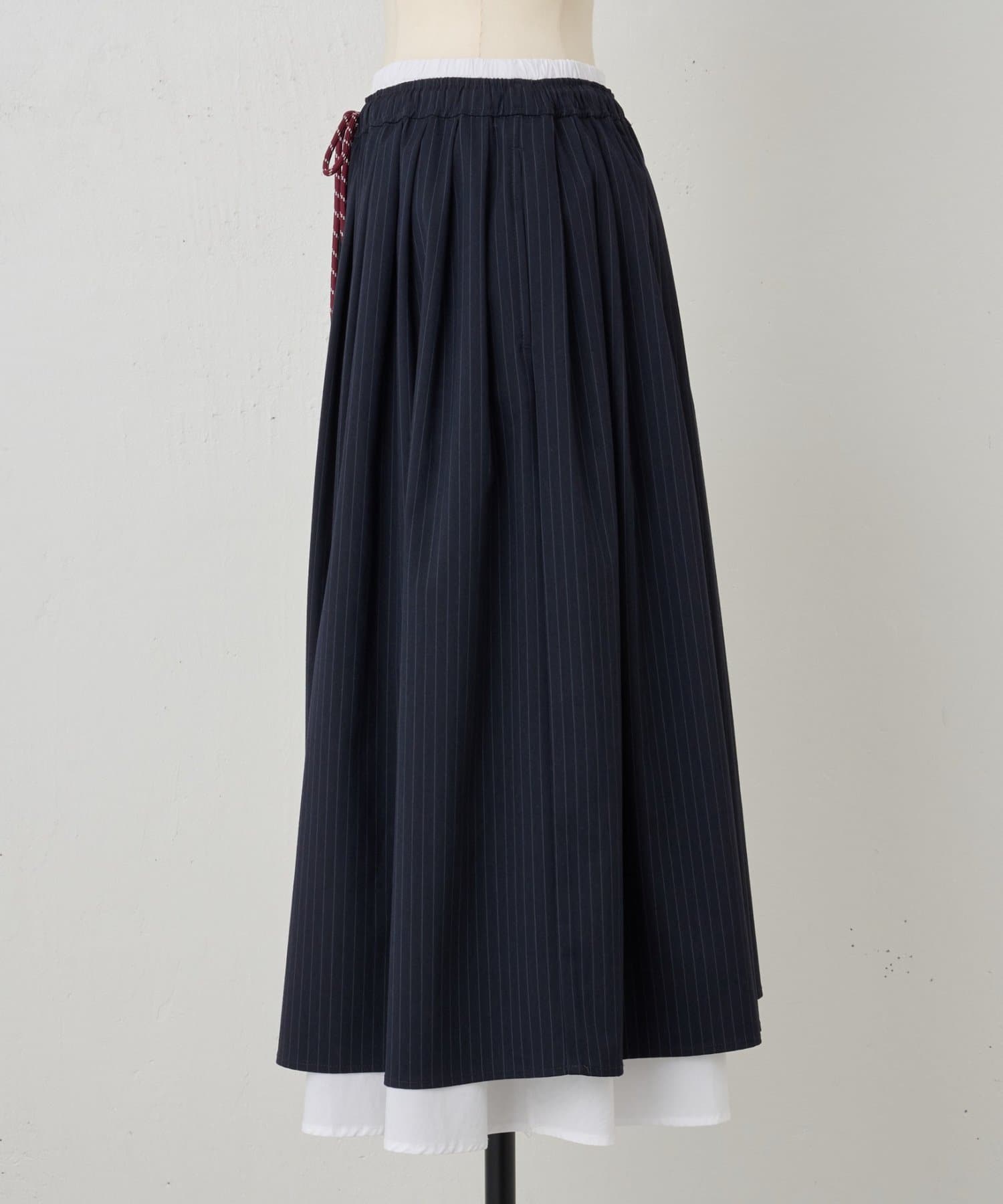 細かなペンシルストライプ生地で仕立てた、上品なギャザースカート。
