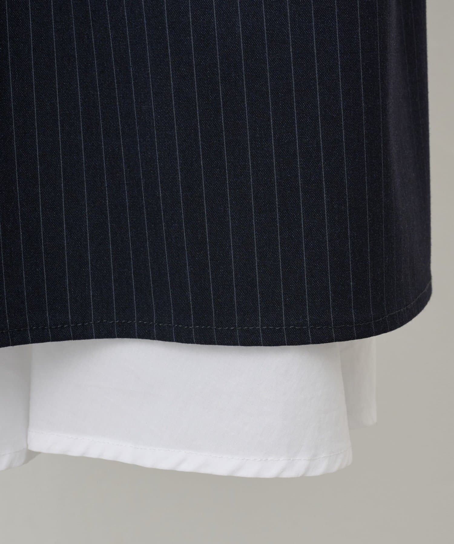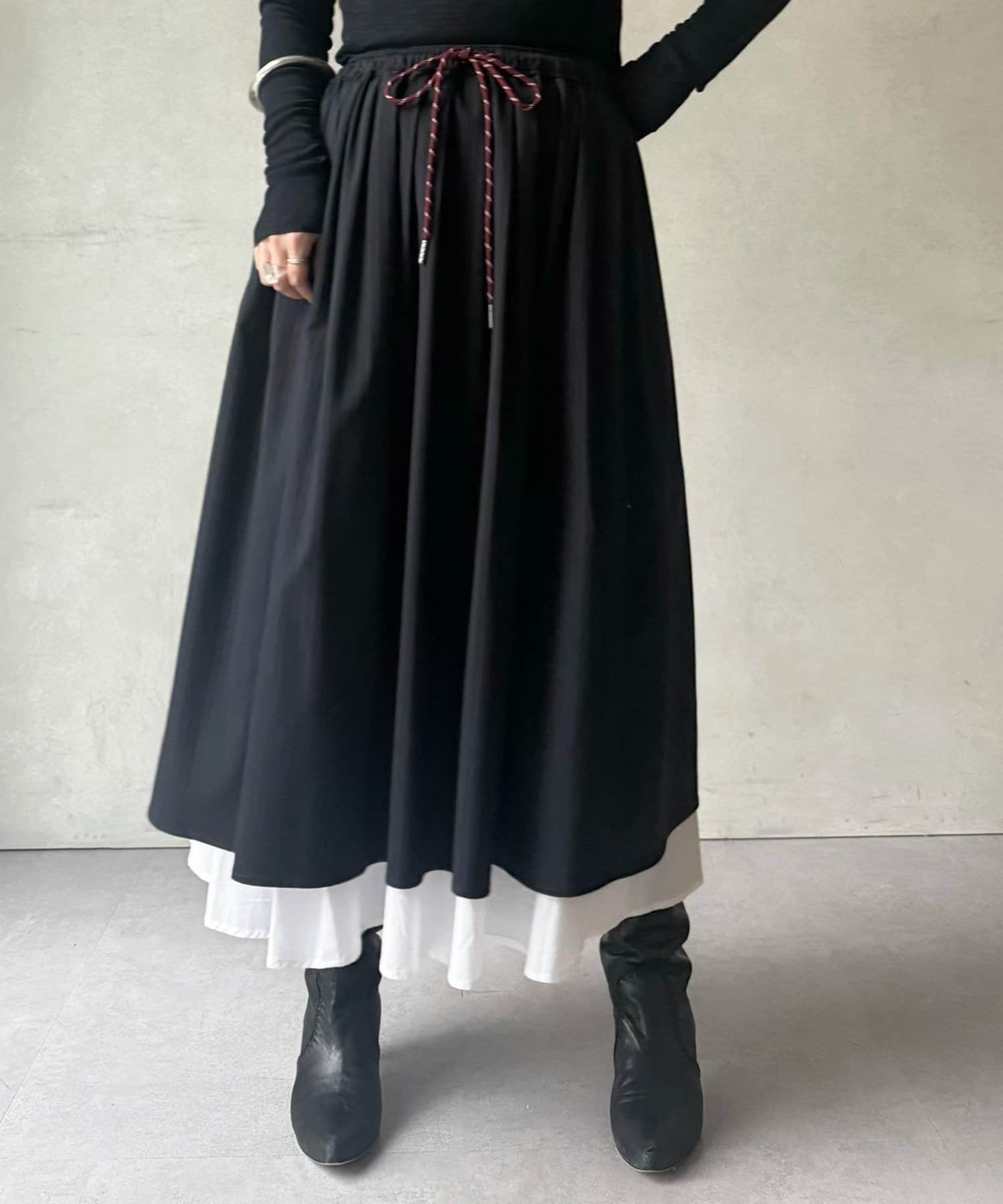 インナーには着丈が少し長めの白いスカートを重ね、レイヤード風に見えるデザインに。透け感があるため、重たくならず軽やかな印象で着ていただけます。