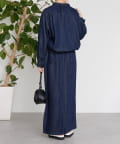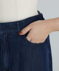 落ち感のあるトロミ素材ではめずらしいデニム生地を使用したタイトスカート。