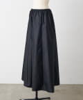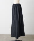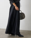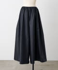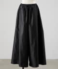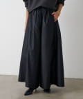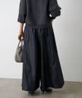 レザーのような上品な光沢が魅力のギャザーパンツ。