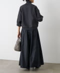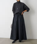 裾に向かってゆるやかに広がるフレアシルエットは、歩くたびに揺れ、スカートのようにも見えるボリュームシルエットです。