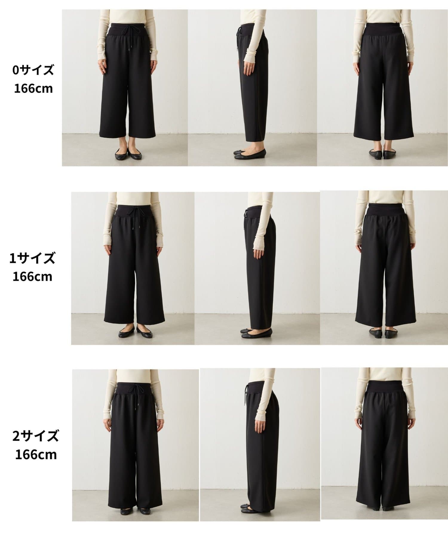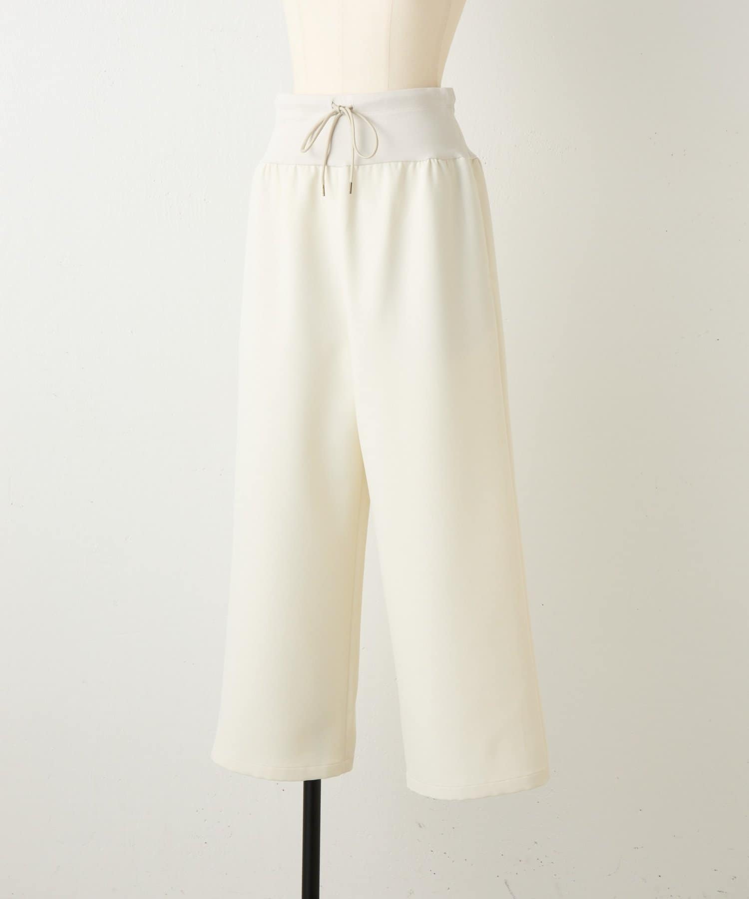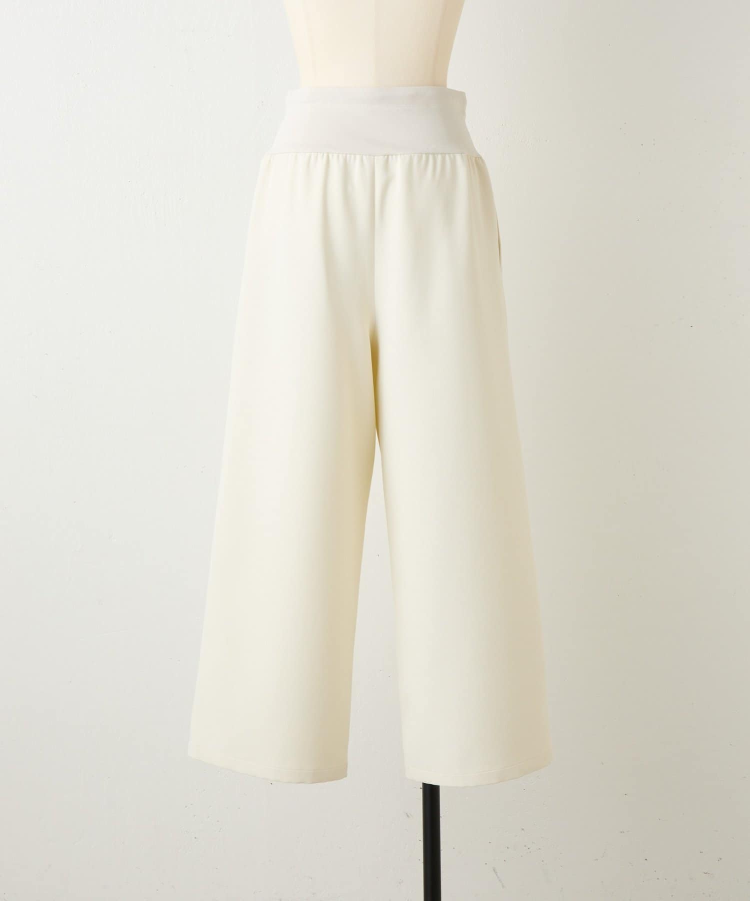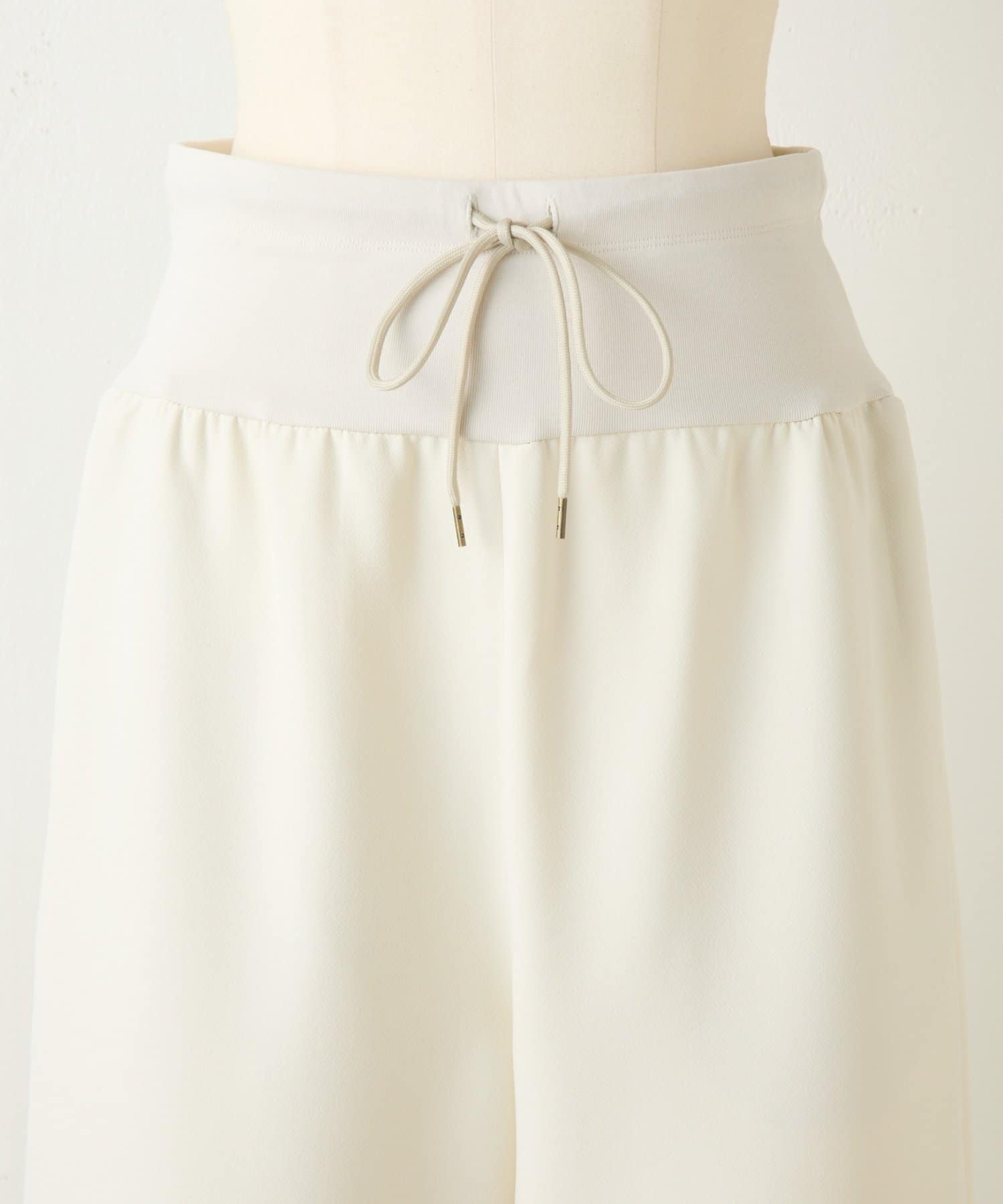 ウエスト部分は幅広のカットソー生地を使用し、締め付け感のない快適な穿き心地と、すっきりとした見た目を両立しています。