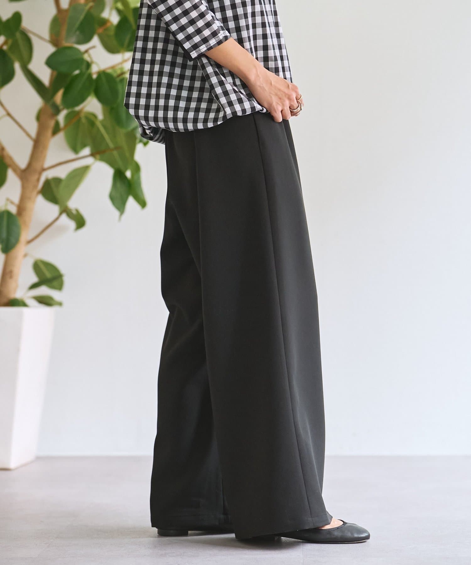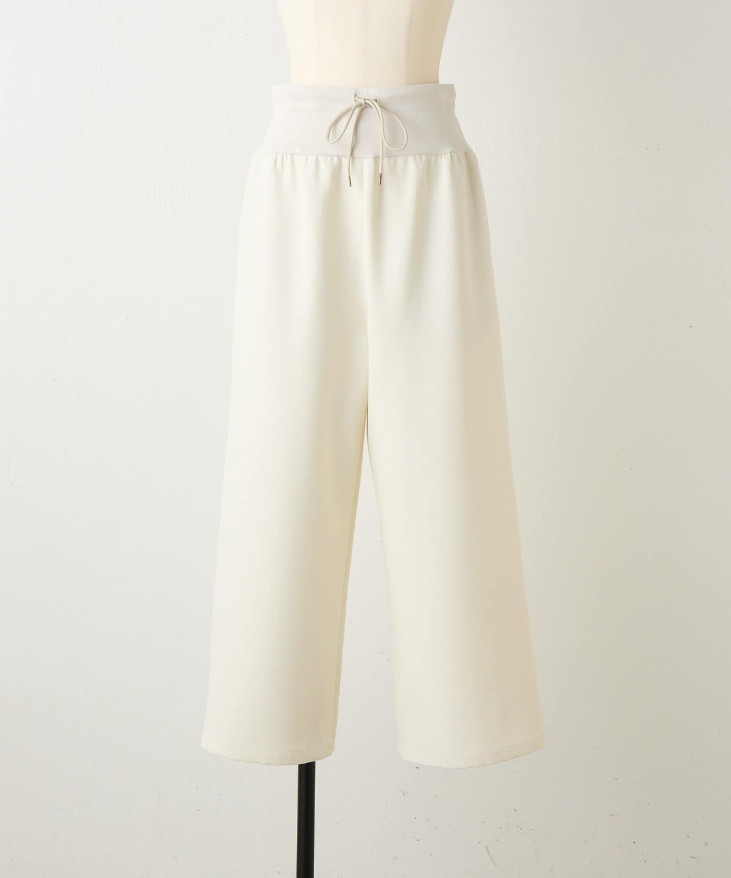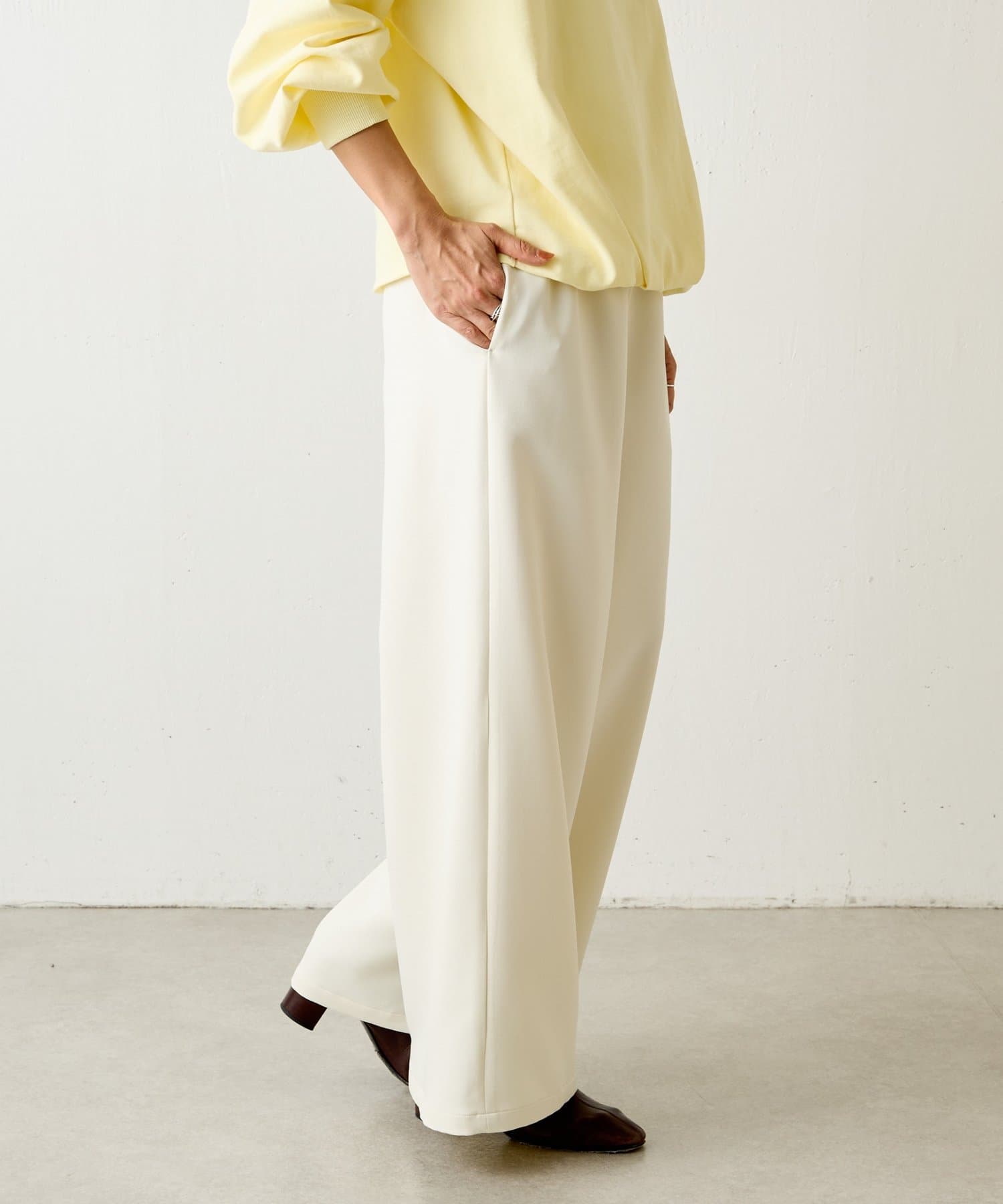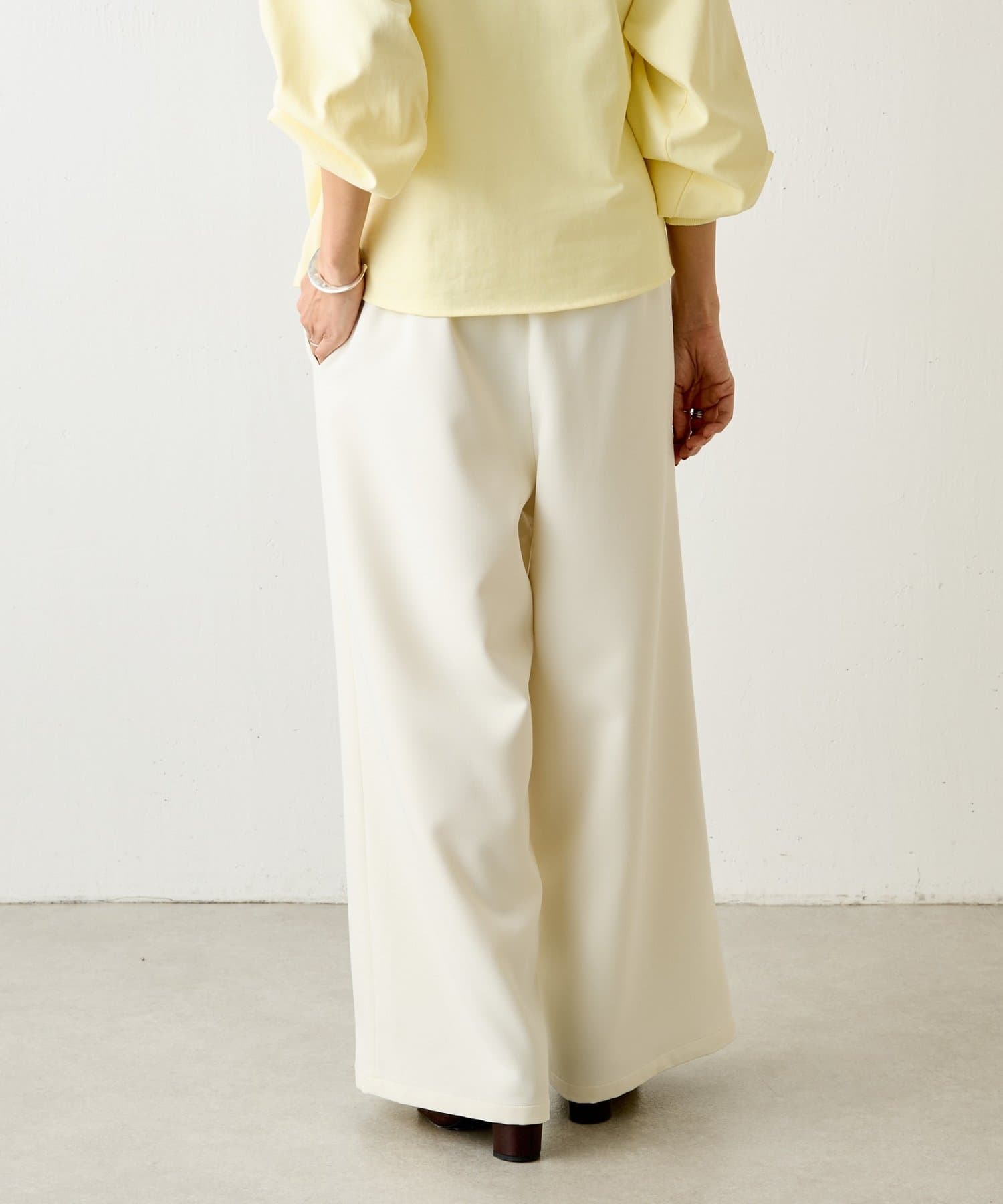 ウエスト部分は幅広のカットソー生地を使用し、締め付け感のない快適な穿き心地と、すっきりとした見た目を両立しています。