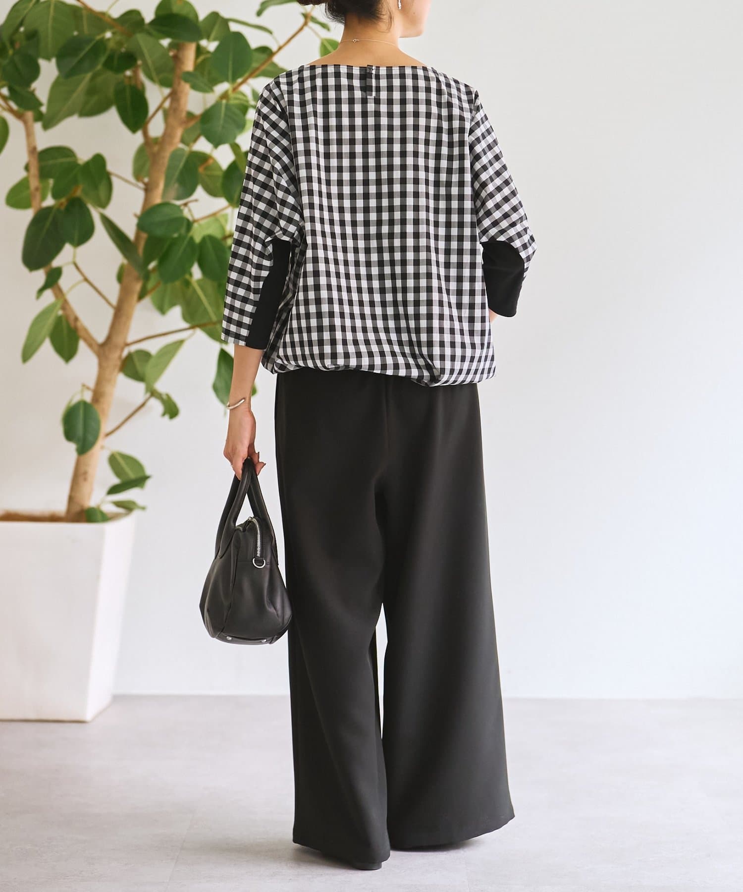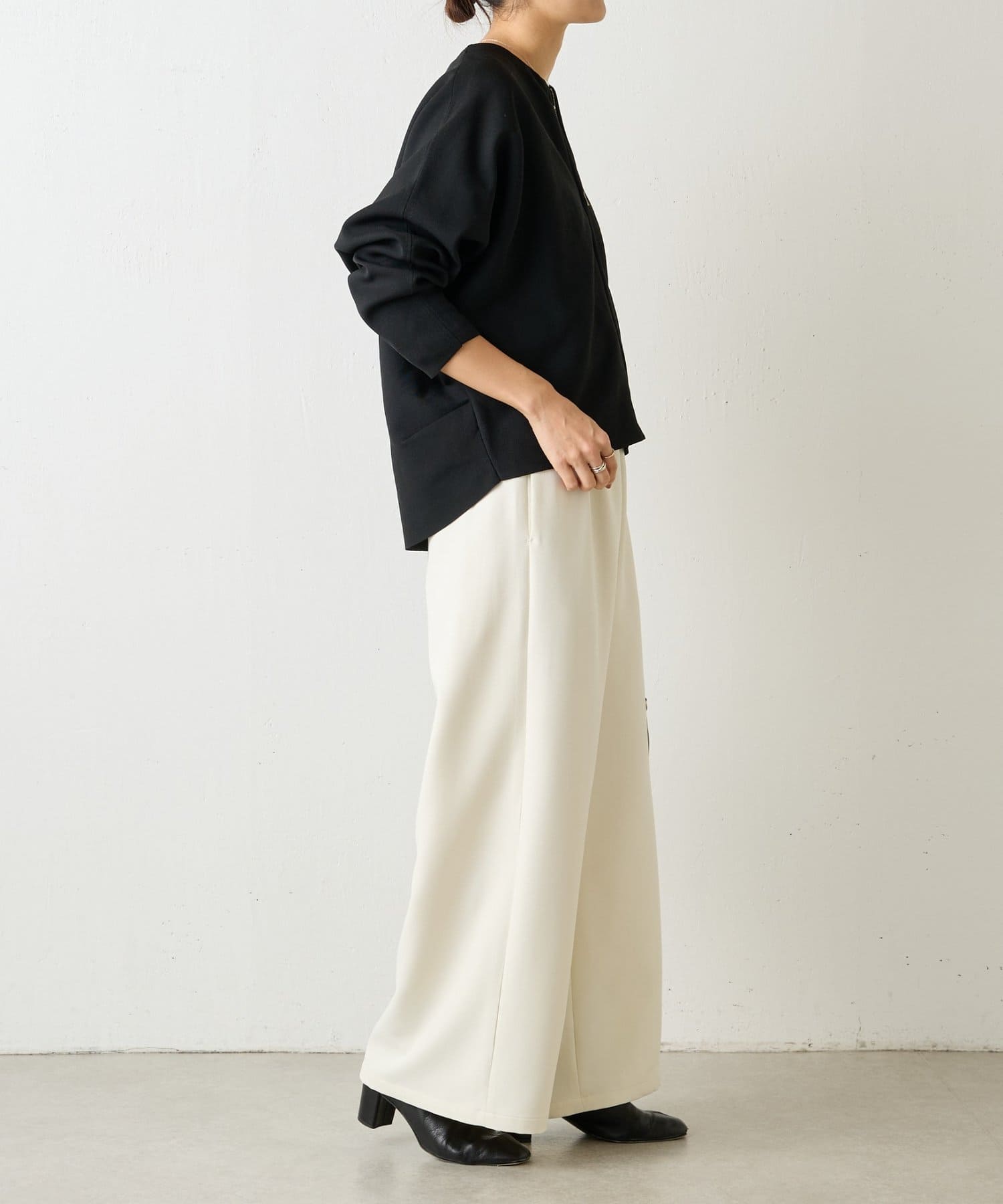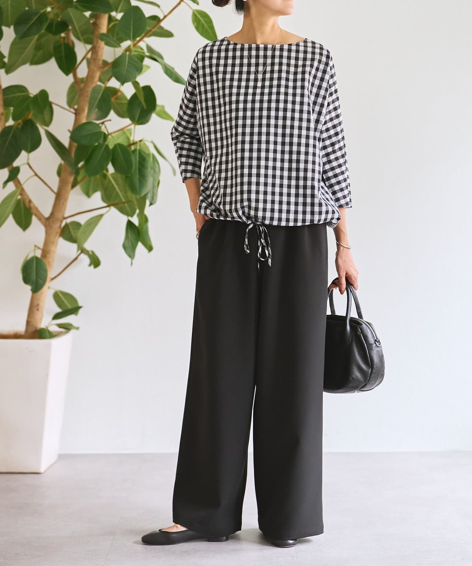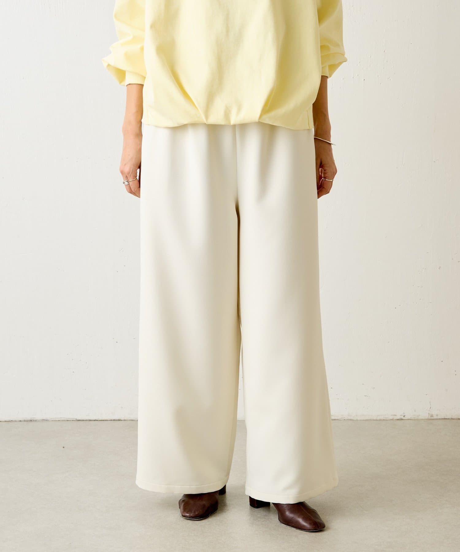 ウエスト部分は幅広のカットソー生地を使用し、締め付け感のない快適な穿き心地と、すっきりとした見た目を両立しています。
